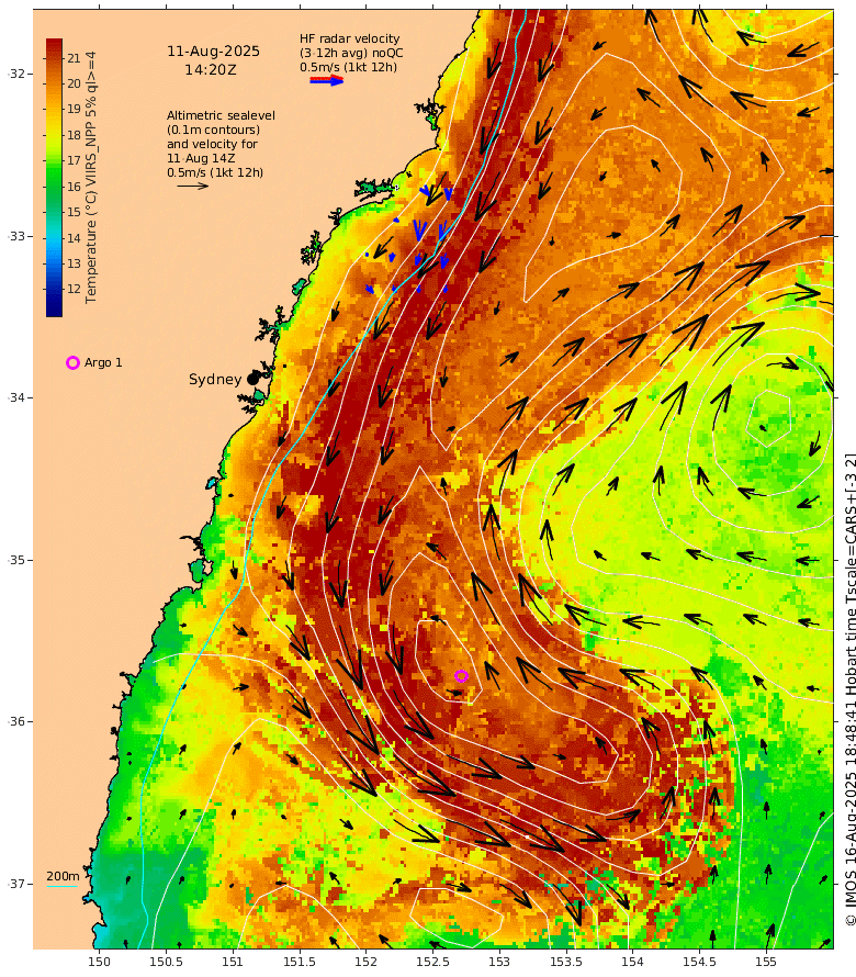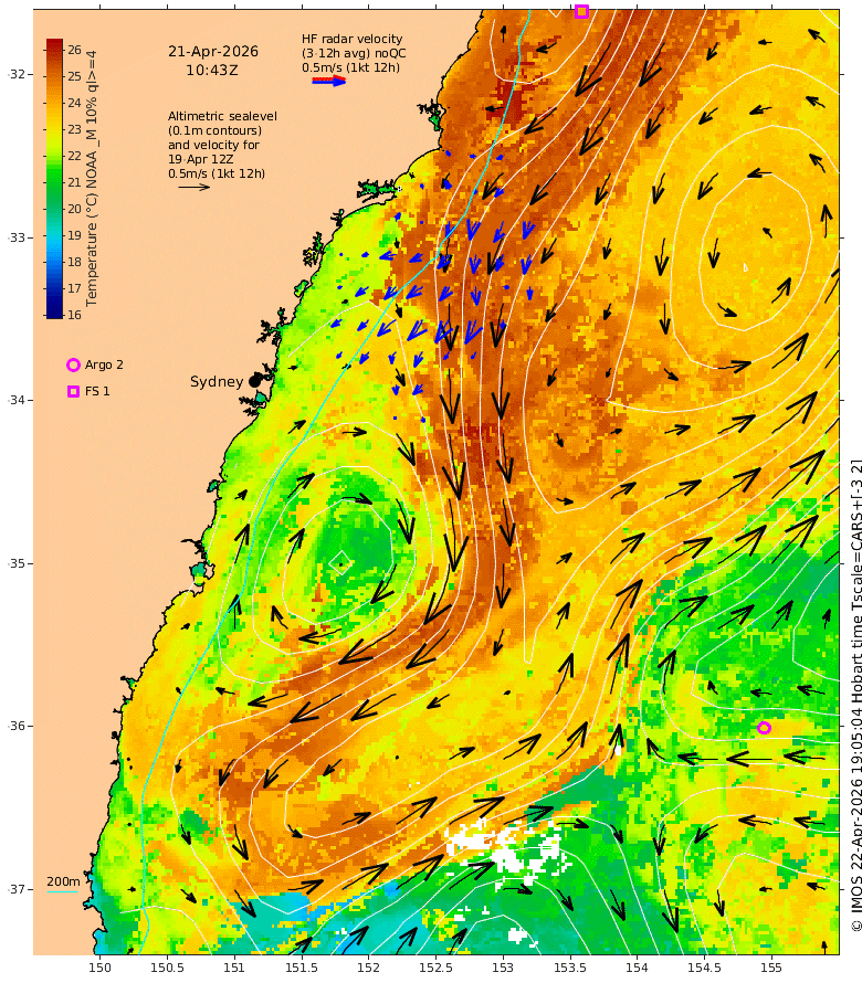 available hourly radar velocities from the IMOS radar facility within