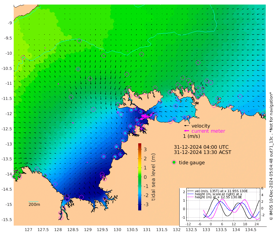 186cm/s -101T +4cm/s rms + 6cm/s 51T. Darwin_C1 52m 153cm/s -91T +4cm/s rms + 7cm/s -161T. Darwin_CW1 22m 76cm/s -105T +4cm/s rms + 8cm/s 61T. Darwin_CW2 34m 107cm/s -137T +3cm/s rms + 9cm/s 98T. Darwin_CW3 22m 133cm/s -90T +5cm/s rms + 7cm/s 88T. Darwin_C3 56m 103cm/s -116T +2cm/s rms + 9cm/s -126T. Darwin_CTbW 22m 6cm/s -143T +9cm/s rms + 2cm/s -110T. NWSLYN 196m 8cm/s 176T +1cm/s rms + 1cm/s -47T. DARBGF 30m 13cm/s 146T +7cm/s rms + 2cm/s -137T. ITFTIS 464m 20cm/s 163T +9cm/s rms + 1cm/s 74T. ITFMHB 146m 15cm/s 115T +4cm/s rms + 1cm/s -134T. ITFJBG 61m 28cm/s 130T +6cm/s rms + 4cm/s 121T. ITFFTB 108m 15cm/s 158T +4cm/s rms + 3cm/s 80T. NRSDAR 19m -10cm Carronade Island -12cm Guy Point -15cm Napier Broome Bay -128cm Lesueur Island -209cm Reveley Island -85cm Rocky Island -306cm Cape Domett -282cm Lacrosse Island -330cm Adolphus Island -295cm Pender Point -294cm Wyndham -49cm The Boxers -72cm Unnamed Shoal 22cm Loxton Shoal -321cm Pelican Island -18cm Calder Shoal 18cm Evans Shoal -401cm Quoin Island -298cm Port Keats -284cm Jones Point -357cm Catfish Island -203cm Cape Scott Offshore -174cm Cape Ford -225cm Anson Bay -4cm Goodrich Bank -188cm Peron Island North -180cm Point Jenny -181cm Native Point -192cm Fish Reef -215cm Tapa Bay -84cm Point Fawcett (Offshore) -230cm Burge Point -177cm Munkunuwa -153cm Beagle A -223cm Parsons Bank -222cm Fenton Patches -1cm Lynedoch Bank -235cm Hancox Shoal Area -243cm Nightcliff -266cm Darwin -240cm Charles Point Patches -220cm Glyde Point -207cm Chambers Bay -207cm Point Stuart -198cm Cape Hotham -190cm Christine Reef -222cm West Alligator Head -226cm East Field Island -176cm Two Hills Bay -116cm Newby Shoal -186cm Camp Point -206cm Medina Inlet South -66cm South Barlow Point -37cm St. Asaph Bay -5cm Cape Van Dieman -17cm Snake Bay -13cm Cache Point 40cm Echo Shoal -36cm Point Jahleel (Off) -96cm Cape Don -47cm Port Essington -42cm Smith Point - West -43cm NW Peacock Island -25cm North Of Jones Shoal -11cm Peacock Island -78cm Point David -48cm D'urville Point -48cm Money Shoal -79cm Copeland Island -100cm Cape Cockburn -73cm One Tree Point -105cm Hogmany Shoal -83cm New Year Island - West -85cm Grant Island -109cm Aurari Bay -130cm Cuthbert Point -106cm North Goulburn Island -152cm Paxie Shoal -159cm Entrance Island -184cm Yabooma Island
