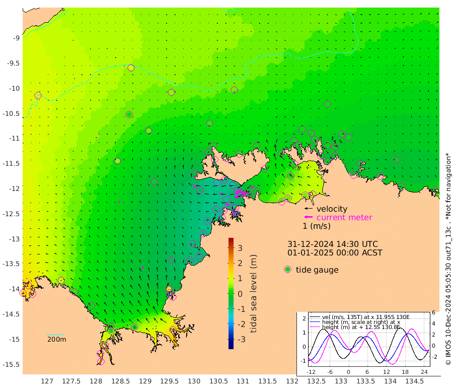 141cm/s -102T +4cm/s rms + 6cm/s 51T. Darwin_C1 52m 88cm/s -88T +4cm/s rms + 7cm/s -161T. Darwin_CW1 22m 69cm/s -110T +4cm/s rms + 8cm/s 61T. Darwin_CW2 34m 51cm/s -125T +3cm/s rms + 9cm/s 98T. Darwin_CW3 22m 66cm/s -92T +5cm/s rms + 7cm/s 88T. Darwin_C3 56m 81cm/s -115T +2cm/s rms + 9cm/s -126T. Darwin_CTbW 22m 4cm/s 125T +9cm/s rms + 2cm/s -110T. NWSLYN 196m 46cm/s -89T +1cm/s rms + 1cm/s -47T. DARBGF 30m 7cm/s 11T +7cm/s rms + 2cm/s -137T. ITFTIS 464m 14cm/s 14T +9cm/s rms + 1cm/s 74T. ITFMHB 146m 35cm/s -20T +4cm/s rms + 1cm/s -134T. ITFJBG 61m 25cm/s -25T +6cm/s rms + 4cm/s 121T. ITFFTB 108m 41cm/s -64T +4cm/s rms + 3cm/s 80T. NRSDAR 19m 157cm Carronade Island 160cm Guy Point 168cm Napier Broome Bay 96cm Lesueur Island 14cm Reveley Island 33cm Rocky Island 11cm Cape Domett 13cm Lacrosse Island 40cm Adolphus Island 129cm Pender Point 168cm Wyndham 46cm The Boxers 14cm Unnamed Shoal 80cm Loxton Shoal -27cm Pelican Island 40cm Calder Shoal 52cm Evans Shoal 53cm Quoin Island -63cm Port Keats -61cm Jones Point 126cm Catfish Island -62cm Cape Scott Offshore -71cm Cape Ford -87cm Anson Bay 30cm Goodrich Bank -69cm Peron Island North -82cm Point Jenny -81cm Native Point -82cm Fish Reef -93cm Tapa Bay -28cm Point Fawcett (Offshore) -95cm Burge Point -107cm Munkunuwa -66cm Beagle A -103cm Parsons Bank -92cm Fenton Patches 43cm Lynedoch Bank -91cm Hancox Shoal Area -107cm Nightcliff -93cm Darwin -79cm Charles Point Patches -33cm Glyde Point 25cm Chambers Bay 36cm Point Stuart -12cm Cape Hotham 19cm Christine Reef 42cm West Alligator Head 73cm East Field Island 17cm Two Hills Bay -2cm Newby Shoal 18cm Camp Point -88cm Medina Inlet South -29cm South Barlow Point -7cm St. Asaph Bay 22cm Cape Van Dieman 19cm Snake Bay 28cm Cache Point 99cm Echo Shoal 18cm Point Jahleel (Off) 3cm Cape Don 13cm Port Essington 6cm Smith Point - West 11cm NW Peacock Island 22cm North Of Jones Shoal 6cm Peacock Island -2cm Point David 3cm D'urville Point 20cm Money Shoal -5cm Copeland Island -2cm Cape Cockburn 5cm One Tree Point 13cm Hogmany Shoal 8cm New Year Island - West 3cm Grant Island -12cm Aurari Bay -6cm Cuthbert Point -4cm North Goulburn Island -3cm Paxie Shoal -9cm Entrance Island -14cm Yabooma Island