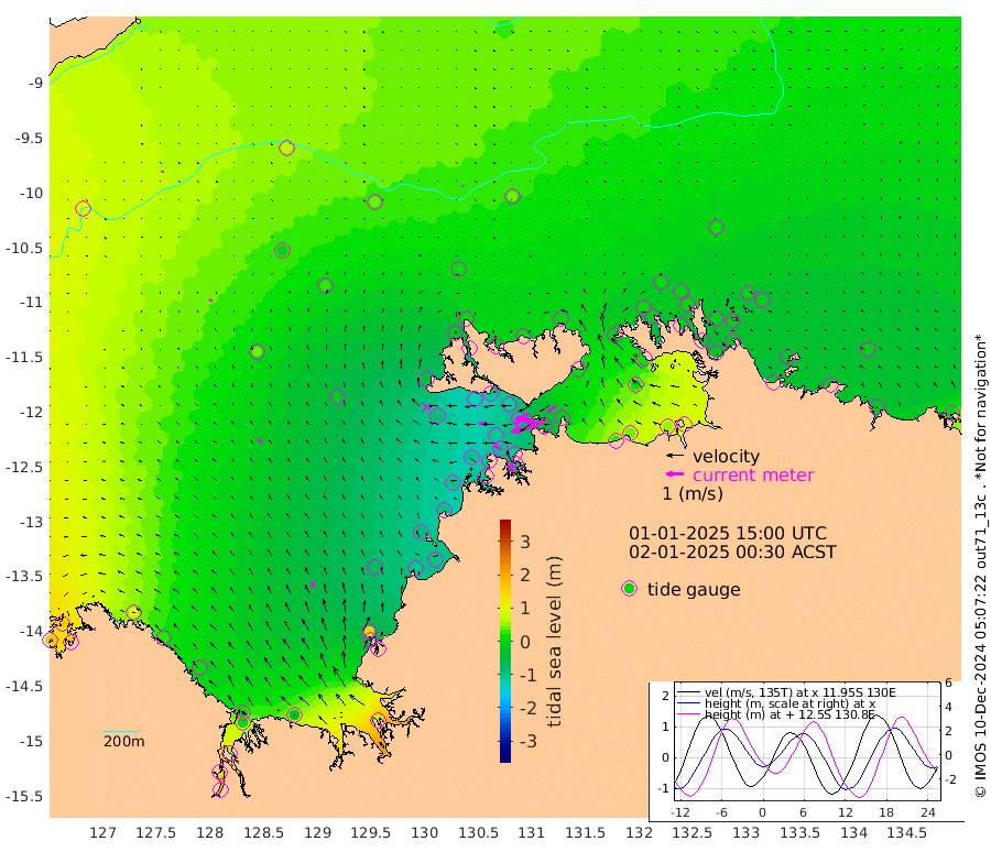 153cm/s -102T +4cm/s rms + 6cm/s 51T. Darwin_C1 52m 100cm/s -89T +4cm/s rms + 7cm/s -161T. Darwin_CW1 22m 76cm/s -110T +4cm/s rms + 8cm/s 61T. Darwin_CW2 34m 56cm/s -124T +3cm/s rms + 9cm/s 98T. Darwin_CW3 22m 76cm/s -92T +5cm/s rms + 7cm/s 88T. Darwin_C3 56m 86cm/s -115T +2cm/s rms + 9cm/s -126T. Darwin_CTbW 22m 4cm/s 130T +9cm/s rms + 2cm/s -110T. NWSLYN 196m 52cm/s -89T +1cm/s rms + 1cm/s -47T. DARBGF 30m 7cm/s 9T +7cm/s rms + 2cm/s -137T. ITFTIS 464m 15cm/s 11T +9cm/s rms + 1cm/s 74T. ITFMHB 146m 39cm/s -20T +4cm/s rms + 1cm/s -134T. ITFJBG 61m 28cm/s -28T +6cm/s rms + 4cm/s 121T. ITFFTB 108m 46cm/s -63T +4cm/s rms + 3cm/s 80T. NRSDAR 19m 162cm Carronade Island 167cm Guy Point 176cm Napier Broome Bay 93cm Lesueur Island 8cm Reveley Island 34cm Rocky Island 10cm Cape Domett 10cm Lacrosse Island 46cm Adolphus Island 146cm Pender Point 190cm Wyndham 37cm The Boxers 0cm Unnamed Shoal 73cm Loxton Shoal -30cm Pelican Island 29cm Calder Shoal 43cm Evans Shoal 67cm Quoin Island -73cm Port Keats -74cm Jones Point 153cm Catfish Island -74cm Cape Scott Offshore -107cm Cape Ford -101cm Anson Bay 18cm Goodrich Bank -87cm Peron Island North -98cm Point Jenny -98cm Native Point -100cm Fish Reef -111cm Tapa Bay -44cm Point Fawcett (Offshore) -113cm Burge Point -127cm Munkunuwa -84cm Beagle A -121cm Parsons Bank -110cm Fenton Patches 34cm Lynedoch Bank -107cm Hancox Shoal Area -122cm Nightcliff -110cm Darwin -96cm Charles Point Patches -41cm Glyde Point 29cm Chambers Bay 41cm Point Stuart -17cm Cape Hotham 22cm Christine Reef 49cm West Alligator Head 84cm East Field Island 16cm Two Hills Bay -16cm Newby Shoal 18cm Camp Point -106cm Medina Inlet South -46cm South Barlow Point -21cm St. Asaph Bay 9cm Cape Van Dieman 6cm Snake Bay 16cm Cache Point 95cm Echo Shoal 7cm Point Jahleel (Off) -4cm Cape Don 2cm Port Essington -5cm Smith Point - West 0cm NW Peacock Island 13cm North Of Jones Shoal 2cm Peacock Island -13cm Point David -9cm D'urville Point 11cm Money Shoal -16cm Copeland Island -15cm Cape Cockburn -5cm One Tree Point -1cm Hogmany Shoal -2cm New Year Island - West -7cm Grant Island -20cm Aurari Bay -12cm Cuthbert Point -13cm North Goulburn Island -6cm Paxie Shoal -13cm Entrance Island -13cm Yabooma Island