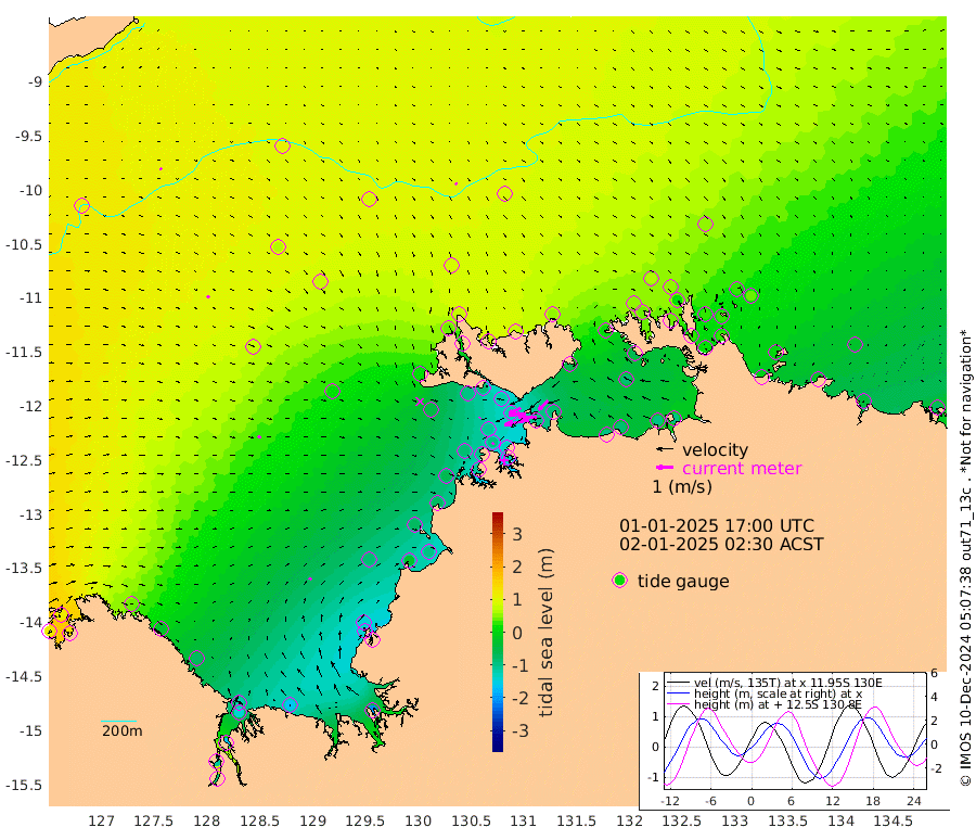 148cm/s -101T +4cm/s rms + 6cm/s 51T. Darwin_C1 52m 111cm/s -91T +4cm/s rms + 7cm/s -161T. Darwin_CW1 22m 60cm/s -107T +4cm/s rms + 8cm/s 61T. Darwin_CW2 34m 78cm/s -135T +3cm/s rms + 9cm/s 98T. Darwin_CW3 22m 92cm/s -91T +5cm/s rms + 7cm/s 88T. Darwin_C3 56m 79cm/s -115T +2cm/s rms + 9cm/s -126T. Darwin_CTbW 22m 12cm/s 145T +9cm/s rms + 2cm/s -110T. NWSLYN 196m 6cm/s -130T +1cm/s rms + 1cm/s -47T. DARBGF 30m 12cm/s 40T +7cm/s rms + 2cm/s -137T. ITFTIS 464m 13cm/s 54T +9cm/s rms + 1cm/s 74T. ITFMHB 146m 14cm/s 37T +4cm/s rms + 1cm/s -134T. ITFJBG 61m 18cm/s 78T +6cm/s rms + 4cm/s 121T. ITFFTB 108m 9cm/s -134T +4cm/s rms + 3cm/s 80T. NRSDAR 19m 116cm Carronade Island 115cm Guy Point 127cm Napier Broome Bay 39cm Lesueur Island -75cm Reveley Island -27cm Rocky Island -140cm Cape Domett -121cm Lacrosse Island -161cm Adolphus Island -106cm Pender Point -89cm Wyndham 73cm The Boxers 63cm Unnamed Shoal 110cm Loxton Shoal -165cm Pelican Island 77cm Calder Shoal 89cm Evans Shoal -209cm Quoin Island -149cm Port Keats -140cm Jones Point -138cm Catfish Island -84cm Cape Scott Offshore -24cm Cape Ford -101cm Anson Bay 79cm Goodrich Bank -74cm Peron Island North -70cm Point Jenny -67cm Native Point -79cm Fish Reef -92cm Tapa Bay 14cm Point Fawcett (Offshore) -106cm Burge Point -95cm Munkunuwa -45cm Beagle A -113cm Parsons Bank -102cm Fenton Patches 81cm Lynedoch Bank -117cm Hancox Shoal Area -130cm Nightcliff -123cm Darwin -90cm Charles Point Patches -91cm Glyde Point -90cm Chambers Bay -85cm Point Stuart -82cm Cape Hotham -80cm Christine Reef -99cm West Alligator Head -94cm East Field Island -63cm Two Hills Bay 21cm Newby Shoal -58cm Camp Point -89cm Medina Inlet South 21cm South Barlow Point 44cm St. Asaph Bay 77cm Cape Van Dieman 72cm Snake Bay 75cm Cache Point 119cm Echo Shoal 49cm Point Jahleel (Off) 5cm Cape Don 47cm Port Essington 42cm Smith Point - West 46cm NW Peacock Island 59cm North Of Jones Shoal 19cm Peacock Island 24cm Point David 40cm D'urville Point 52cm Money Shoal 18cm Copeland Island 24cm Cape Cockburn 28cm One Tree Point 34cm Hogmany Shoal 30cm New Year Island - West 24cm Grant Island -6cm Aurari Bay -14cm Cuthbert Point 3cm North Goulburn Island -24cm Paxie Shoal -44cm Entrance Island -74cm Yabooma Island