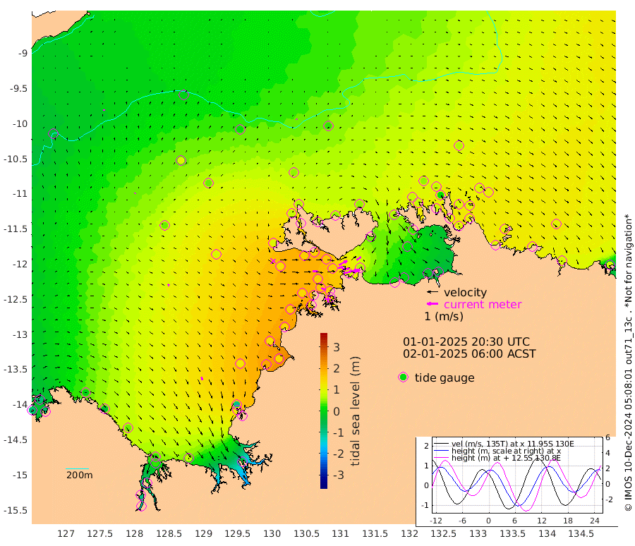 139cm/s 78T +4cm/s rms + 6cm/s 51T. Darwin_C1 52m 99cm/s 85T +4cm/s rms + 7cm/s -161T. Darwin_CW1 22m 49cm/s 76T +4cm/s rms + 8cm/s 61T. Darwin_CW2 34m 49cm/s 53T +3cm/s rms + 9cm/s 98T. Darwin_CW3 22m 59cm/s 88T +5cm/s rms + 7cm/s 88T. Darwin_C3 56m 84cm/s 62T +2cm/s rms + 9cm/s -126T. Darwin_CTbW 22m 7cm/s 128T +9cm/s rms + 2cm/s -110T. NWSLYN 196m 45cm/s 91T +1cm/s rms + 1cm/s -47T. DARBGF 30m 9cm/s 3T +7cm/s rms + 2cm/s -137T. ITFTIS 464m 6cm/s 28T +9cm/s rms + 1cm/s 74T. ITFMHB 146m 30cm/s 156T +4cm/s rms + 1cm/s -134T. ITFJBG 61m 19cm/s 126T +6cm/s rms + 4cm/s 121T. ITFFTB 108m 44cm/s 118T +4cm/s rms + 3cm/s 80T. NRSDAR 19m -85cm Carronade Island -90cm Guy Point -89cm Napier Broome Bay -8cm Lesueur Island 36cm Reveley Island -26cm Rocky Island 33cm Cape Domett 32cm Lacrosse Island -10cm Adolphus Island -91cm Pender Point -127cm Wyndham 42cm The Boxers 93cm Unnamed Shoal -6cm Loxton Shoal 68cm Pelican Island 35cm Calder Shoal 14cm Evans Shoal -37cm Quoin Island 116cm Port Keats 118cm Jones Point -100cm Catfish Island 116cm Cape Scott Offshore 197cm Cape Ford 145cm Anson Bay 48cm Goodrich Bank 132cm Peron Island North 144cm Point Jenny 147cm Native Point 143cm Fish Reef 159cm Tapa Bay 100cm Point Fawcett (Offshore) 157cm Burge Point 151cm Munkunuwa 129cm Beagle A 162cm Parsons Bank 151cm Fenton Patches 30cm Lynedoch Bank 149cm Hancox Shoal Area 151cm Nightcliff 163cm Darwin 161cm Charles Point Patches 90cm Glyde Point 7cm Chambers Bay 0cm Point Stuart 60cm Cape Hotham 14cm Christine Reef -14cm West Alligator Head -47cm East Field Island 28cm Two Hills Bay 90cm Newby Shoal 37cm Camp Point 150cm Medina Inlet South 101cm South Barlow Point 76cm St. Asaph Bay 57cm Cape Van Dieman 64cm Snake Bay 52cm Cache Point -37cm Echo Shoal 54cm Point Jahleel (Off) 66cm Cape Don 69cm Port Essington 69cm Smith Point - West 70cm NW Peacock Island 51cm North Of Jones Shoal 21cm Peacock Island 92cm Point David 78cm D'urville Point 67cm Money Shoal 91cm Copeland Island 108cm Cape Cockburn 81cm One Tree Point 109cm Hogmany Shoal 85cm New Year Island - West 90cm Grant Island 92cm Aurari Bay 94cm Cuthbert Point 92cm North Goulburn Island 91cm Paxie Shoal 88cm Entrance Island 81cm Yabooma Island