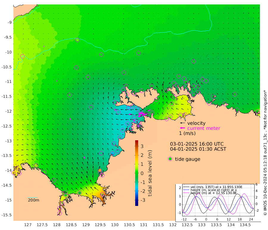 159cm/s -102T +4cm/s rms + 6cm/s 51T. Darwin_C1 52m 110cm/s -89T +4cm/s rms + 7cm/s -161T. Darwin_CW1 22m 82cm/s -110T +4cm/s rms + 8cm/s 61T. Darwin_CW2 34m 57cm/s -124T +3cm/s rms + 9cm/s 98T. Darwin_CW3 22m 87cm/s -92T +5cm/s rms + 7cm/s 88T. Darwin_C3 56m 87cm/s -116T +2cm/s rms + 9cm/s -126T. Darwin_CTbW 22m 2cm/s 138T +9cm/s rms + 2cm/s -110T. NWSLYN 196m 61cm/s -89T +1cm/s rms + 1cm/s -47T. DARBGF 30m 5cm/s 0T +7cm/s rms + 2cm/s -137T. ITFTIS 464m 16cm/s 4T +9cm/s rms + 1cm/s 74T. ITFMHB 146m 45cm/s -21T +4cm/s rms + 1cm/s -134T. ITFJBG 61m 33cm/s -33T +6cm/s rms + 4cm/s 121T. ITFFTB 108m 54cm/s -61T +4cm/s rms + 3cm/s 80T. NRSDAR 19m 151cm Carronade Island 157cm Guy Point 168cm Napier Broome Bay 74cm Lesueur Island -1cm Reveley Island 30cm Rocky Island 10cm Cape Domett 8cm Lacrosse Island 53cm Adolphus Island 168cm Pender Point 218cm Wyndham 7cm The Boxers -32cm Unnamed Shoal 43cm Loxton Shoal -34cm Pelican Island -4cm Calder Shoal 12cm Evans Shoal 90cm Quoin Island -85cm Port Keats -88cm Jones Point 178cm Catfish Island -94cm Cape Scott Offshore -171cm Cape Ford -120cm Anson Bay -15cm Goodrich Bank -116cm Peron Island North -123cm Point Jenny -124cm Native Point -129cm Fish Reef -136cm Tapa Bay -79cm Point Fawcett (Offshore) -135cm Burge Point -151cm Munkunuwa -113cm Beagle A -144cm Parsons Bank -133cm Fenton Patches 6cm Lynedoch Bank -126cm Hancox Shoal Area -137cm Nightcliff -133cm Darwin -125cm Charles Point Patches -52cm Glyde Point 34cm Chambers Bay 47cm Point Stuart -25cm Cape Hotham 28cm Christine Reef 59cm West Alligator Head 101cm East Field Island 12cm Two Hills Bay -47cm Newby Shoal 17cm Camp Point -132cm Medina Inlet South -80cm South Barlow Point -55cm St. Asaph Bay -25cm Cape Van Dieman -29cm Snake Bay -18cm Cache Point 69cm Echo Shoal -23cm Point Jahleel (Off) -25cm Cape Don -28cm Port Essington -36cm Smith Point - West -30cm NW Peacock Island -16cm North Of Jones Shoal -8cm Peacock Island -38cm Point David -39cm D'urville Point -15cm Money Shoal -39cm Copeland Island -46cm Cape Cockburn -30cm One Tree Point -34cm Hogmany Shoal -27cm New Year Island - West -33cm Grant Island -38cm Aurari Bay -28cm Cuthbert Point -35cm North Goulburn Island -12cm Paxie Shoal -20cm Entrance Island -8cm Yabooma Island