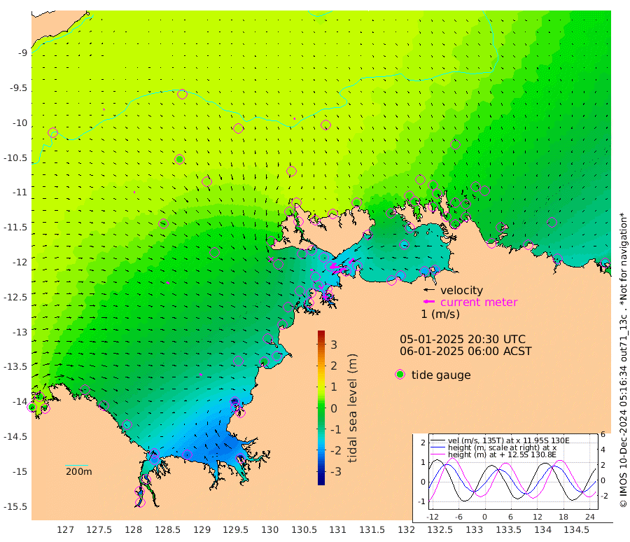 83cm/s -100T +4cm/s rms + 6cm/s 51T. Darwin_C1 52m 59cm/s -92T +4cm/s rms + 7cm/s -161T. Darwin_CW1 22m 45cm/s -106T +4cm/s rms + 8cm/s 61T. Darwin_CW2 34m 62cm/s -138T +3cm/s rms + 9cm/s 98T. Darwin_CW3 22m 88cm/s -91T +5cm/s rms + 7cm/s 88T. Darwin_C3 56m 43cm/s -116T +2cm/s rms + 9cm/s -126T. Darwin_CTbW 22m 14cm/s 155T +9cm/s rms + 2cm/s -110T. NWSLYN 196m 22cm/s 107T +1cm/s rms + 1cm/s -47T. DARBGF 30m 11cm/s 59T +7cm/s rms + 2cm/s -137T. ITFTIS 464m 11cm/s 94T +9cm/s rms + 1cm/s 74T. ITFMHB 146m 21cm/s 110T +4cm/s rms + 1cm/s -134T. ITFJBG 61m 29cm/s 109T +6cm/s rms + 4cm/s 121T. ITFFTB 108m 29cm/s 137T +4cm/s rms + 3cm/s 80T. NRSDAR 19m 15cm Carronade Island 15cm Guy Point 22cm Napier Broome Bay -53cm Lesueur Island -133cm Reveley Island -69cm Rocky Island -209cm Cape Domett -190cm Lacrosse Island -251cm Adolphus Island -227cm Pender Point -237cm Wyndham 34cm The Boxers 28cm Unnamed Shoal 76cm Loxton Shoal -217cm Pelican Island 47cm Calder Shoal 66cm Evans Shoal -300cm Quoin Island -171cm Port Keats -168cm Jones Point -271cm Catfish Island -91cm Cape Scott Offshore -35cm Cape Ford -97cm Anson Bay 59cm Goodrich Bank -81cm Peron Island North -74cm Point Jenny -71cm Native Point -82cm Fish Reef -94cm Tapa Bay 9cm Point Fawcett (Offshore) -110cm Burge Point -76cm Munkunuwa -57cm Beagle A -112cm Parsons Bank -113cm Fenton Patches 58cm Lynedoch Bank -125cm Hancox Shoal Area -131cm Nightcliff -129cm Darwin -95cm Charles Point Patches -129cm Glyde Point -163cm Chambers Bay -165cm Point Stuart -130cm Cape Hotham -147cm Christine Reef -187cm West Alligator Head -200cm East Field Island -124cm Two Hills Bay -17cm Newby Shoal -114cm Camp Point -84cm Medina Inlet South 20cm South Barlow Point 38cm St. Asaph Bay 60cm Cape Van Dieman 55cm Snake Bay 50cm Cache Point 76cm Echo Shoal 24cm Point Jahleel (Off) -25cm Cape Don 24cm Port Essington 19cm Smith Point - West 19cm NW Peacock Island 38cm North Of Jones Shoal 12cm Peacock Island -5cm Point David 15cm D'urville Point 26cm Money Shoal -11cm Copeland Island -16cm Cape Cockburn 0cm One Tree Point -16cm Hogmany Shoal -7cm New Year Island - West -12cm Grant Island -40cm Aurari Bay -60cm Cuthbert Point -34cm North Goulburn Island -65cm Paxie Shoal -104cm Entrance Island -136cm Yabooma Island