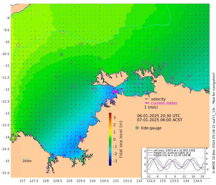 129cm/s -101T +4cm/s rms + 6cm/s 51T. Darwin_C1 52m 90cm/s -91T +4cm/s rms + 7cm/s -161T. Darwin_CW1 22m 72cm/s -106T +4cm/s rms + 8cm/s 61T. Darwin_CW2 34m 70cm/s -137T +3cm/s rms + 9cm/s 98T. Darwin_CW3 22m 119cm/s -91T +5cm/s rms + 7cm/s 88T. Darwin_C3 56m 76cm/s -116T +2cm/s rms + 9cm/s -126T. Darwin_CTbW 22m 10cm/s 162T +9cm/s rms + 2cm/s -110T. NWSLYN 196m 10cm/s -125T +1cm/s rms + 1cm/s -47T. DARBGF 30m 8cm/s 66T +7cm/s rms + 2cm/s -137T. ITFTIS 464m 9cm/s 68T +9cm/s rms + 1cm/s 74T. ITFMHB 146m 13cm/s 57T +4cm/s rms + 1cm/s -134T. ITFJBG 61m 16cm/s 90T +6cm/s rms + 4cm/s 121T. ITFFTB 108m 8cm/s -139T +4cm/s rms + 3cm/s 80T. NRSDAR 19m 25cm Carronade Island 26cm Guy Point 33cm Napier Broome Bay -62cm Lesueur Island -147cm Reveley Island -73cm Rocky Island -215cm Cape Domett -197cm Lacrosse Island -236cm Adolphus Island -177cm Pender Point -172cm Wyndham -6cm The Boxers -18cm Unnamed Shoal 50cm Loxton Shoal -234cm Pelican Island 6cm Calder Shoal 32cm Evans Shoal -264cm Quoin Island -211cm Port Keats -207cm Jones Point -229cm Catfish Island -144cm Cape Scott Offshore -138cm Cape Ford -157cm Anson Bay 17cm Goodrich Bank -145cm Peron Island North -141cm Point Jenny -138cm Native Point -150cm Fish Reef -161cm Tapa Bay -54cm Point Fawcett (Offshore) -176cm Burge Point -143cm Munkunuwa -122cm Beagle A -177cm Parsons Bank -176cm Fenton Patches 25cm Lynedoch Bank -181cm Hancox Shoal Area -188cm Nightcliff -192cm Darwin -164cm Charles Point Patches -160cm Glyde Point -158cm Chambers Bay -154cm Point Stuart -149cm Cape Hotham -145cm Christine Reef -168cm West Alligator Head -165cm East Field Island -132cm Two Hills Bay -74cm Newby Shoal -120cm Camp Point -151cm Medina Inlet South -40cm South Barlow Point -15cm St. Asaph Bay 15cm Cape Van Dieman 10cm Snake Bay 6cm Cache Point 60cm Echo Shoal -16cm Point Jahleel (Off) -62cm Cape Don -19cm Port Essington -26cm Smith Point - West -23cm NW Peacock Island -1cm North Of Jones Shoal -2cm Peacock Island -44cm Point David -30cm D'urville Point -12cm Money Shoal -48cm Copeland Island -65cm Cape Cockburn -39cm One Tree Point -62cm Hogmany Shoal -44cm New Year Island - West -51cm Grant Island -71cm Aurari Bay -91cm Cuthbert Point -70cm North Goulburn Island -88cm Paxie Shoal -124cm Entrance Island -144cm Yabooma Island
