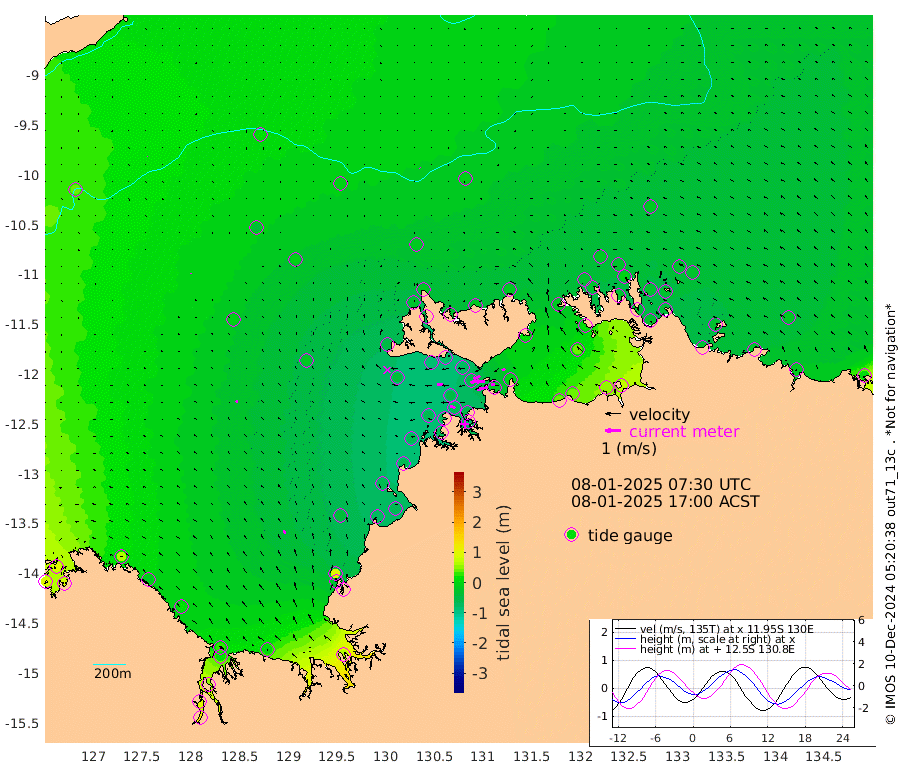 75cm/s -103T +4cm/s rms + 6cm/s 51T. Darwin_C1 52m 27cm/s -88T +4cm/s rms + 7cm/s -161T. Darwin_CW1 22m 53cm/s -108T +4cm/s rms + 8cm/s 61T. Darwin_CW2 34m 21cm/s -114T +3cm/s rms + 9cm/s 98T. Darwin_CW3 22m 60cm/s -93T +5cm/s rms + 7cm/s 88T. Darwin_C3 56m 46cm/s -116T +2cm/s rms + 9cm/s -126T. Darwin_CTbW 22m 5cm/s -15T +9cm/s rms + 2cm/s -110T. NWSLYN 196m 37cm/s -89T +1cm/s rms + 1cm/s -47T. DARBGF 30m 1cm/s -122T +7cm/s rms + 2cm/s -137T. ITFTIS 464m 5cm/s 6T +9cm/s rms + 1cm/s 74T. ITFMHB 146m 24cm/s -21T +4cm/s rms + 1cm/s -134T. ITFJBG 61m 17cm/s -33T +6cm/s rms + 4cm/s 121T. ITFFTB 108m 36cm/s -64T +4cm/s rms + 3cm/s 80T. NRSDAR 19m 95cm Carronade Island 101cm Guy Point 90cm Napier Broome Bay 60cm Lesueur Island 14cm Reveley Island -13cm Rocky Island 18cm Cape Domett 27cm Lacrosse Island 55cm Adolphus Island 96cm Pender Point 132cm Wyndham -6cm The Boxers -36cm Unnamed Shoal 11cm Loxton Shoal 2cm Pelican Island -7cm Calder Shoal -2cm Evans Shoal 67cm Quoin Island -34cm Port Keats -37cm Jones Point 101cm Catfish Island -44cm Cape Scott Offshore -69cm Cape Ford -60cm Anson Bay -16cm Goodrich Bank -60cm Peron Island North -56cm Point Jenny -59cm Native Point -64cm Fish Reef -64cm Tapa Bay -45cm Point Fawcett (Offshore) -64cm Burge Point -84cm Munkunuwa -44cm Beagle A -78cm Parsons Bank -51cm Fenton Patches -9cm Lynedoch Bank -55cm Hancox Shoal Area -55cm Nightcliff -69cm Darwin -64cm Charles Point Patches -18cm Glyde Point 35cm Chambers Bay 39cm Point Stuart 0cm Cape Hotham 37cm Christine Reef 48cm West Alligator Head 79cm East Field Island 13cm Two Hills Bay -21cm Newby Shoal 22cm Camp Point -73cm Medina Inlet South -51cm South Barlow Point -33cm St. Asaph Bay -22cm Cape Van Dieman -30cm Snake Bay -15cm Cache Point 38cm Echo Shoal -16cm Point Jahleel (Off) -21cm Cape Don -27cm Port Essington -25cm Smith Point - West -23cm NW Peacock Island -17cm North Of Jones Shoal -7cm Peacock Island -31cm Point David -29cm D'urville Point -17cm Money Shoal -28cm Copeland Island -35cm Cape Cockburn -29cm One Tree Point -27cm Hogmany Shoal -23cm New Year Island - West -28cm Grant Island -23cm Aurari Bay -22cm Cuthbert Point -30cm North Goulburn Island -16cm Paxie Shoal -15cm Entrance Island 0cm Yabooma Island