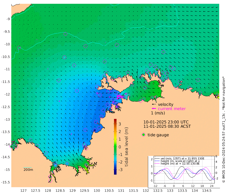 161cm/s -102T +4cm/s rms + 6cm/s 51T. Darwin_C1 52m 100cm/s -89T +4cm/s rms + 7cm/s -161T. Darwin_CW1 22m 91cm/s -107T +4cm/s rms + 8cm/s 61T. Darwin_CW2 34m 61cm/s -129T +3cm/s rms + 9cm/s 98T. Darwin_CW3 22m 124cm/s -91T +5cm/s rms + 7cm/s 88T. Darwin_C3 56m 103cm/s -115T +2cm/s rms + 9cm/s -126T. Darwin_CTbW 22m 6cm/s -72T +9cm/s rms + 2cm/s -110T. NWSLYN 196m 59cm/s -93T +1cm/s rms + 1cm/s -47T. DARBGF 30m 5cm/s -161T +7cm/s rms + 2cm/s -137T. ITFTIS 464m 11cm/s -21T +9cm/s rms + 1cm/s 74T. ITFMHB 146m 27cm/s -20T +4cm/s rms + 1cm/s -134T. ITFJBG 61m 24cm/s -48T +6cm/s rms + 4cm/s 121T. ITFFTB 108m 48cm/s -62T +4cm/s rms + 3cm/s 80T. NRSDAR 19m -44cm Carronade Island -42cm Guy Point -48cm Napier Broome Bay -111cm Lesueur Island -141cm Reveley Island -79cm Rocky Island -166cm Cape Domett -165cm Lacrosse Island -135cm Adolphus Island -59cm Pender Point -42cm Wyndham -119cm The Boxers -126cm Unnamed Shoal -64cm Loxton Shoal -179cm Pelican Island -114cm Calder Shoal -75cm Evans Shoal -128cm Quoin Island -208cm Port Keats -198cm Jones Point -144cm Catfish Island -203cm Cape Scott Offshore -263cm Cape Ford -221cm Anson Bay -88cm Goodrich Bank -217cm Peron Island North -221cm Point Jenny -219cm Native Point -228cm Fish Reef -227cm Tapa Bay -177cm Point Fawcett (Offshore) -234cm Burge Point -209cm Munkunuwa -211cm Beagle A -219cm Parsons Bank -229cm Fenton Patches -70cm Lynedoch Bank -210cm Hancox Shoal Area -228cm Nightcliff -233cm Darwin -233cm Charles Point Patches -162cm Glyde Point -103cm Chambers Bay -89cm Point Stuart -134cm Cape Hotham -101cm Christine Reef -87cm West Alligator Head -59cm East Field Island -109cm Two Hills Bay -189cm Newby Shoal -100cm Camp Point -224cm Medina Inlet South -152cm South Barlow Point -133cm St. Asaph Bay -95cm Cape Van Dieman -98cm Snake Bay -102cm Cache Point -46cm Echo Shoal -101cm Point Jahleel (Off) -119cm Cape Don -103cm Port Essington -108cm Smith Point - West -100cm NW Peacock Island -95cm North Of Jones Shoal -34cm Peacock Island -92cm Point David -105cm D'urville Point -88cm Money Shoal -90cm Copeland Island -128cm Cape Cockburn -98cm One Tree Point -114cm Hogmany Shoal -98cm New Year Island - West -99cm Grant Island -92cm Aurari Bay -98cm Cuthbert Point -100cm North Goulburn Island -87cm Paxie Shoal -89cm Entrance Island -74cm Yabooma Island