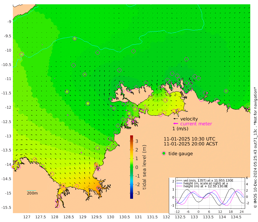7cm/s -109T +4cm/s rms + 6cm/s 51T. Darwin_C1 52m 38cm/s 87T +4cm/s rms + 7cm/s -161T. Darwin_CW1 22m 6cm/s -119T +4cm/s rms + 8cm/s 61T. Darwin_CW2 34m 24cm/s 26T +3cm/s rms + 9cm/s 98T. Darwin_CW3 22m 19cm/s 98T +5cm/s rms + 7cm/s 88T. Darwin_C3 56m 14cm/s -121T +2cm/s rms + 9cm/s -126T. Darwin_CTbW 22m 5cm/s 26T +9cm/s rms + 2cm/s -110T. NWSLYN 196m 31cm/s -82T +1cm/s rms + 1cm/s -47T. DARBGF 30m 5cm/s -20T +7cm/s rms + 2cm/s -137T. ITFTIS 464m 10cm/s -6T +9cm/s rms + 1cm/s 74T. ITFMHB 146m 28cm/s -29T +4cm/s rms + 1cm/s -134T. ITFJBG 61m 26cm/s -39T +6cm/s rms + 4cm/s 121T. ITFFTB 108m 36cm/s -55T +4cm/s rms + 3cm/s 80T. NRSDAR 19m 116cm Carronade Island 126cm Guy Point 118cm Napier Broome Bay 118cm Lesueur Island 110cm Reveley Island 50cm Rocky Island 153cm Cape Domett 145cm Lacrosse Island 190cm Adolphus Island 226cm Pender Point 248cm Wyndham 38cm The Boxers 5cm Unnamed Shoal 38cm Loxton Shoal 129cm Pelican Island 32cm Calder Shoal 20cm Evans Shoal 219cm Quoin Island 102cm Port Keats 82cm Jones Point 182cm Catfish Island 48cm Cape Scott Offshore 49cm Cape Ford 38cm Anson Bay 9cm Goodrich Bank 31cm Peron Island North 31cm Point Jenny 29cm Native Point 28cm Fish Reef 35cm Tapa Bay 11cm Point Fawcett (Offshore) 49cm Burge Point 13cm Munkunuwa 31cm Beagle A 29cm Parsons Bank 47cm Fenton Patches 14cm Lynedoch Bank 46cm Hancox Shoal Area 50cm Nightcliff 51cm Darwin 48cm Charles Point Patches 67cm Glyde Point 102cm Chambers Bay 101cm Point Stuart 71cm Cape Hotham 100cm Christine Reef 113cm West Alligator Head 138cm East Field Island 73cm Two Hills Bay 51cm Newby Shoal 86cm Camp Point 31cm Medina Inlet South 2cm South Barlow Point 7cm St. Asaph Bay 3cm Cape Van Dieman 1cm Snake Bay 10cm Cache Point 48cm Echo Shoal 14cm Point Jahleel (Off) 26cm Cape Don 4cm Port Essington 1cm Smith Point - West 2cm NW Peacock Island 8cm North Of Jones Shoal 1cm Peacock Island -3cm Point David -3cm D'urville Point 9cm Money Shoal -3cm Copeland Island 1cm Cape Cockburn 2cm One Tree Point 8cm Hogmany Shoal 6cm New Year Island - West 4cm Grant Island 1cm Aurari Bay 10cm Cuthbert Point 5cm North Goulburn Island 24cm Paxie Shoal 23cm Entrance Island 32cm Yabooma Island