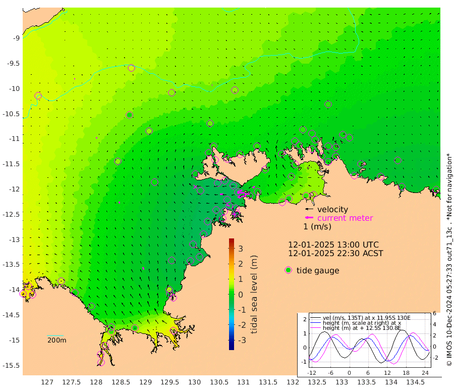 111cm/s -103T +4cm/s rms + 6cm/s 51T. Darwin_C1 52m 66cm/s -88T +4cm/s rms + 7cm/s -161T. Darwin_CW1 22m 52cm/s -109T +4cm/s rms + 8cm/s 61T. Darwin_CW2 34m 34cm/s -123T +3cm/s rms + 9cm/s 98T. Darwin_CW3 22m 47cm/s -92T +5cm/s rms + 7cm/s 88T. Darwin_C3 56m 68cm/s -115T +2cm/s rms + 9cm/s -126T. Darwin_CTbW 22m 4cm/s 106T +9cm/s rms + 2cm/s -110T. NWSLYN 196m 41cm/s -87T +1cm/s rms + 1cm/s -47T. DARBGF 30m 7cm/s 12T +7cm/s rms + 2cm/s -137T. ITFTIS 464m 14cm/s 14T +9cm/s rms + 1cm/s 74T. ITFMHB 146m 32cm/s -21T +4cm/s rms + 1cm/s -134T. ITFJBG 61m 24cm/s -25T +6cm/s rms + 4cm/s 121T. ITFFTB 108m 39cm/s -62T +4cm/s rms + 3cm/s 80T. NRSDAR 19m 145cm Carronade Island 153cm Guy Point 152cm Napier Broome Bay 97cm Lesueur Island 28cm Reveley Island 19cm Rocky Island 30cm Cape Domett 30cm Lacrosse Island 63cm Adolphus Island 128cm Pender Point 160cm Wyndham 49cm The Boxers 16cm Unnamed Shoal 84cm Loxton Shoal -7cm Pelican Island 50cm Calder Shoal 54cm Evans Shoal 68cm Quoin Island -28cm Port Keats -46cm Jones Point 64cm Catfish Island -37cm Cape Scott Offshore -57cm Cape Ford -56cm Anson Bay 36cm Goodrich Bank -48cm Peron Island North -54cm Point Jenny -53cm Native Point -63cm Fish Reef -62cm Tapa Bay -15cm Point Fawcett (Offshore) -60cm Burge Point -77cm Munkunuwa -41cm Beagle A -71cm Parsons Bank -60cm Fenton Patches 48cm Lynedoch Bank -57cm Hancox Shoal Area -61cm Nightcliff -60cm Darwin -49cm Charles Point Patches -21cm Glyde Point 25cm Chambers Bay 22cm Point Stuart -7cm Cape Hotham 26cm Christine Reef 26cm West Alligator Head 51cm East Field Island 12cm Two Hills Bay 19cm Newby Shoal 23cm Camp Point -59cm Medina Inlet South -10cm South Barlow Point 7cm St. Asaph Bay 28cm Cape Van Dieman 29cm Snake Bay 32cm Cache Point 98cm Echo Shoal 24cm Point Jahleel (Off) 8cm Cape Don 16cm Port Essington 11cm Smith Point - West 16cm NW Peacock Island 30cm North Of Jones Shoal 8cm Peacock Island 3cm Point David 8cm D'urville Point 27cm Money Shoal 0cm Copeland Island 5cm Cape Cockburn 10cm One Tree Point 12cm Hogmany Shoal 14cm New Year Island - West 9cm Grant Island -8cm Aurari Bay -6cm Cuthbert Point 1cm North Goulburn Island 2cm Paxie Shoal -6cm Entrance Island -11cm Yabooma Island