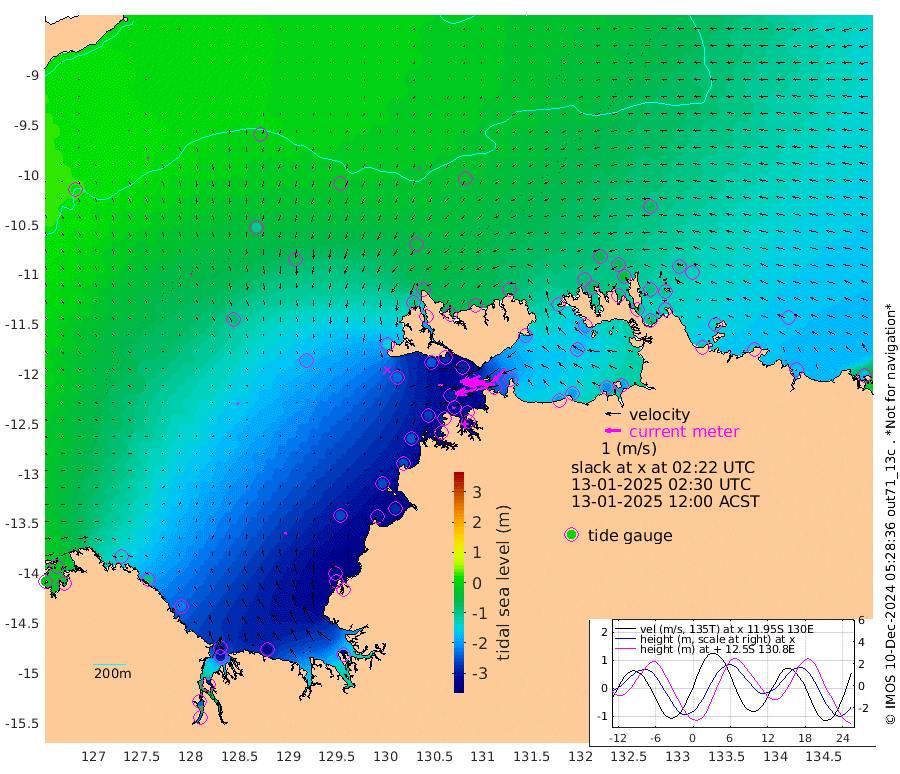 216cm/s -101T +4cm/s rms + 6cm/s 51T. Darwin_C1 52m 175cm/s -91T +4cm/s rms + 7cm/s -161T. Darwin_CW1 22m 100cm/s -106T +4cm/s rms + 8cm/s 61T. Darwin_CW2 34m 109cm/s -136T +3cm/s rms + 9cm/s 98T. Darwin_CW3 22m 158cm/s -90T +5cm/s rms + 7cm/s 88T. Darwin_C3 56m 122cm/s -115T +2cm/s rms + 9cm/s -126T. Darwin_CTbW 22m 6cm/s -114T +9cm/s rms + 2cm/s -110T. NWSLYN 196m 33cm/s -103T +1cm/s rms + 1cm/s -47T. DARBGF 30m 12cm/s 160T +7cm/s rms + 2cm/s -137T. ITFTIS 464m 9cm/s 167T +9cm/s rms + 1cm/s 74T. ITFMHB 146m 11cm/s 16T +4cm/s rms + 1cm/s -134T. ITFJBG 61m 7cm/s 129T +6cm/s rms + 4cm/s 121T. ITFFTB 108m 21cm/s -79T +4cm/s rms + 3cm/s 80T. NRSDAR 19m -21cm Carronade Island -18cm Guy Point -26cm Napier Broome Bay -135cm Lesueur Island -219cm Reveley Island -97cm Rocky Island -303cm Cape Domett -284cm Lacrosse Island -293cm Adolphus Island -233cm Pender Point -218cm Wyndham -88cm The Boxers -109cm Unnamed Shoal -4cm Loxton Shoal -317cm Pelican Island -64cm Calder Shoal -18cm Evans Shoal -337cm Quoin Island -325cm Port Keats -315cm Jones Point -306cm Catfish Island -248cm Cape Scott Offshore -302cm Cape Ford -274cm Anson Bay -41cm Goodrich Bank -251cm Peron Island North -250cm Point Jenny -247cm Native Point -267cm Fish Reef -275cm Tapa Bay -152cm Point Fawcett (Offshore) -301cm Burge Point -246cm Munkunuwa -225cm Beagle A -283cm Parsons Bank -286cm Fenton Patches -27cm Lynedoch Bank -279cm Hancox Shoal Area -293cm Nightcliff -318cm Darwin -296cm Charles Point Patches -245cm Glyde Point -198cm Chambers Bay -198cm Point Stuart -215cm Cape Hotham -187cm Christine Reef -207cm West Alligator Head -195cm East Field Island -183cm Two Hills Bay -181cm Newby Shoal -185cm Camp Point -271cm Medina Inlet South -124cm South Barlow Point -91cm St. Asaph Bay -46cm Cape Van Dieman -54cm Snake Bay -56cm Cache Point 21cm Echo Shoal -71cm Point Jahleel (Off) -129cm Cape Don -83cm Port Essington -78cm Smith Point - West -75cm NW Peacock Island -59cm North Of Jones Shoal -23cm Peacock Island -97cm Point David -81cm D'urville Point -74cm Money Shoal -97cm Copeland Island -135cm Cape Cockburn -98cm One Tree Point -128cm Hogmany Shoal -102cm New Year Island - West -106cm Grant Island -119cm Aurari Bay -141cm Cuthbert Point -124cm North Goulburn Island -153cm Paxie Shoal -158cm Entrance Island -171cm Yabooma Island