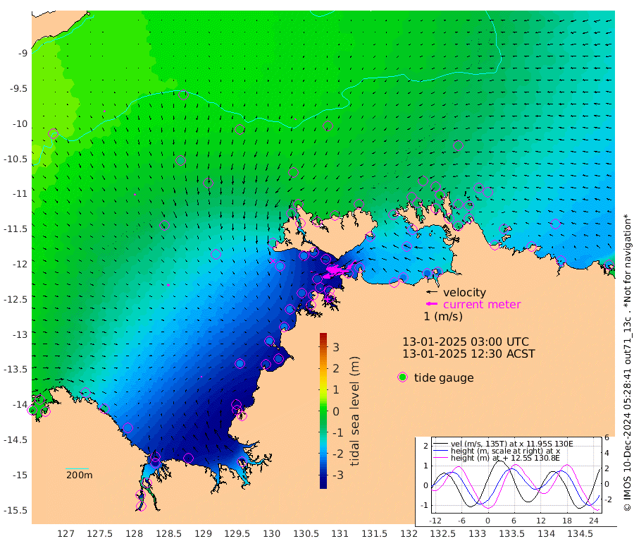 194cm/s -101T +4cm/s rms + 6cm/s 51T. Darwin_C1 52m 165cm/s -91T +4cm/s rms + 7cm/s -161T. Darwin_CW1 22m 84cm/s -106T +4cm/s rms + 8cm/s 61T. Darwin_CW2 34m 109cm/s -137T +3cm/s rms + 9cm/s 98T. Darwin_CW3 22m 143cm/s -90T +5cm/s rms + 7cm/s 88T. Darwin_C3 56m 106cm/s -116T +2cm/s rms + 9cm/s -126T. Darwin_CTbW 22m 6cm/s -133T +9cm/s rms + 2cm/s -110T. NWSLYN 196m 14cm/s -125T +1cm/s rms + 1cm/s -47T. DARBGF 30m 13cm/s 151T +7cm/s rms + 2cm/s -137T. ITFTIS 464m 15cm/s 163T +9cm/s rms + 1cm/s 74T. ITFMHB 146m 10cm/s 79T +4cm/s rms + 1cm/s -134T. ITFJBG 61m 19cm/s 130T +6cm/s rms + 4cm/s 121T. ITFFTB 108m 8cm/s -149T +4cm/s rms + 3cm/s 80T. NRSDAR 19m -22cm Carronade Island -21cm Guy Point -26cm Napier Broome Bay -133cm Lesueur Island -220cm Reveley Island -93cm Rocky Island -315cm Cape Domett -291cm Lacrosse Island -320cm Adolphus Island -277cm Pender Point -269cm Wyndham -66cm The Boxers -85cm Unnamed Shoal 14cm Loxton Shoal -324cm Pelican Island -39cm Calder Shoal 3cm Evans Shoal -374cm Quoin Island -318cm Port Keats -309cm Jones Point -337cm Catfish Island -225cm Cape Scott Offshore -268cm Cape Ford -248cm Anson Bay -19cm Goodrich Bank -224cm Peron Island North -221cm Point Jenny -218cm Native Point -238cm Fish Reef -247cm Tapa Bay -119cm Point Fawcett (Offshore) -277cm Burge Point -216cm Munkunuwa -195cm Beagle A -260cm Parsons Bank -262cm Fenton Patches -10cm Lynedoch Bank -261cm Hancox Shoal Area -270cm Nightcliff -298cm Darwin -272cm Charles Point Patches -241cm Glyde Point -213cm Chambers Bay -218cm Point Stuart -217cm Cape Hotham -200cm Christine Reef -231cm West Alligator Head -229cm East Field Island -190cm Two Hills Bay -153cm Newby Shoal -194cm Camp Point -243cm Medina Inlet South -93cm South Barlow Point -61cm St. Asaph Bay -22cm Cape Van Dieman -30cm Snake Bay -34cm Cache Point 36cm Echo Shoal -53cm Point Jahleel (Off) -117cm Cape Don -66cm Port Essington -60cm Smith Point - West -59cm NW Peacock Island -41cm North Of Jones Shoal -17cm Peacock Island -88cm Point David -65cm D'urville Point -62cm Money Shoal -90cm Copeland Island -124cm Cape Cockburn -88cm One Tree Point -121cm Hogmany Shoal -93cm New Year Island - West -98cm Grant Island -115cm Aurari Bay -143cm Cuthbert Point -120cm North Goulburn Island -160cm Paxie Shoal -169cm Entrance Island -192cm Yabooma Island