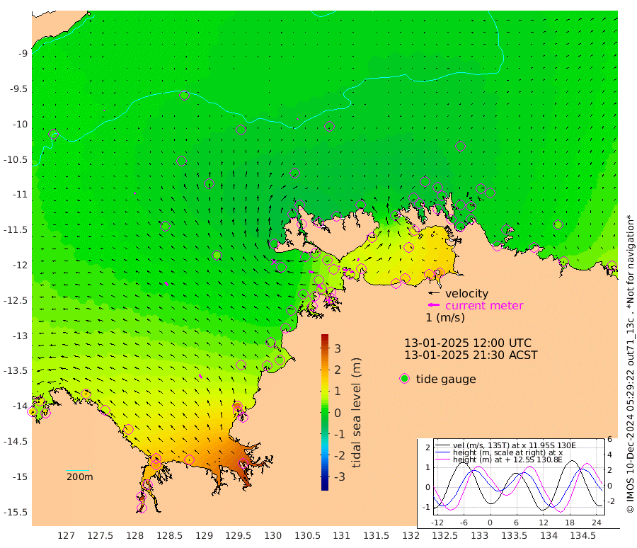 8cm/s -109T +4cm/s rms + 6cm/s 51T. Darwin_C1 52m 29cm/s 86T +4cm/s rms + 7cm/s -161T. Darwin_CW1 22m 2cm/s 152T +4cm/s rms + 8cm/s 61T. Darwin_CW2 34m 29cm/s 26T +3cm/s rms + 9cm/s 98T. Darwin_CW3 22m 37cm/s 94T +5cm/s rms + 7cm/s 88T. Darwin_C3 56m 13cm/s -123T +2cm/s rms + 9cm/s -126T. Darwin_CTbW 22m 5cm/s 18T +9cm/s rms + 2cm/s -110T. NWSLYN 196m 43cm/s -82T +1cm/s rms + 1cm/s -47T. DARBGF 30m 7cm/s -40T +7cm/s rms + 2cm/s -137T. ITFTIS 464m 14cm/s -18T +9cm/s rms + 1cm/s 74T. ITFMHB 146m 38cm/s -34T +4cm/s rms + 1cm/s -134T. ITFJBG 61m 37cm/s -46T +6cm/s rms + 4cm/s 121T. ITFFTB 108m 47cm/s -53T +4cm/s rms + 3cm/s 80T. NRSDAR 19m 121cm Carronade Island 132cm Guy Point 128cm Napier Broome Bay 129cm Lesueur Island 142cm Reveley Island 78cm Rocky Island 206cm Cape Domett 188cm Lacrosse Island 250cm Adolphus Island 307cm Pender Point 331cm Wyndham 28cm The Boxers -3cm Unnamed Shoal 23cm Loxton Shoal 175cm Pelican Island 17cm Calder Shoal 3cm Evans Shoal 298cm Quoin Island 131cm Port Keats 114cm Jones Point 253cm Catfish Island 55cm Cape Scott Offshore 43cm Cape Ford 44cm Anson Bay -9cm Goodrich Bank 36cm Peron Island North 30cm Point Jenny 29cm Native Point 29cm Fish Reef 39cm Tapa Bay -4cm Point Fawcett (Offshore) 58cm Burge Point 18cm Munkunuwa 22cm Beagle A 41cm Parsons Bank 50cm Fenton Patches -1cm Lynedoch Bank 58cm Hancox Shoal Area 58cm Nightcliff 67cm Darwin 53cm Charles Point Patches 89cm Glyde Point 140cm Chambers Bay 144cm Point Stuart 96cm Cape Hotham 132cm Christine Reef 163cm West Alligator Head 192cm East Field Island 103cm Two Hills Bay 40cm Newby Shoal 112cm Camp Point 36cm Medina Inlet South -14cm South Barlow Point -12cm St. Asaph Bay -16cm Cape Van Dieman -16cm Snake Bay -7cm Cache Point 30cm Echo Shoal 2cm Point Jahleel (Off) 28cm Cape Don -6cm Port Essington -11cm Smith Point - West -9cm NW Peacock Island -8cm North Of Jones Shoal -4cm Peacock Island -5cm Point David -15cm D'urville Point -2cm Money Shoal -5cm Copeland Island -1cm Cape Cockburn -2cm One Tree Point 11cm Hogmany Shoal 3cm New Year Island - West 4cm Grant Island 2cm Aurari Bay 20cm Cuthbert Point 11cm North Goulburn Island 42cm Paxie Shoal 48cm Entrance Island 63cm Yabooma Island