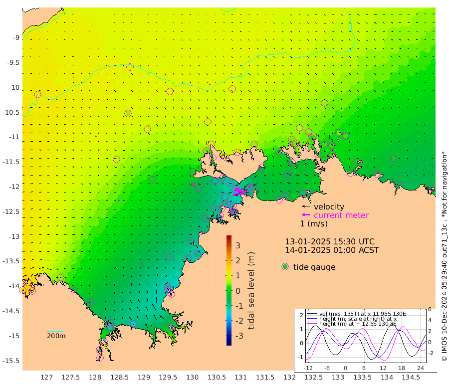 138cm/s -101T +4cm/s rms + 6cm/s 51T. Darwin_C1 52m 113cm/s -91T +4cm/s rms + 7cm/s -161T. Darwin_CW1 22m 55cm/s -107T +4cm/s rms + 8cm/s 61T. Darwin_CW2 34m 71cm/s -134T +3cm/s rms + 9cm/s 98T. Darwin_CW3 22m 80cm/s -91T +5cm/s rms + 7cm/s 88T. Darwin_C3 56m 72cm/s -116T +2cm/s rms + 9cm/s -126T. Darwin_CTbW 22m 10cm/s 140T +9cm/s rms + 2cm/s -110T. NWSLYN 196m 10cm/s -109T +1cm/s rms + 1cm/s -47T. DARBGF 30m 10cm/s 38T +7cm/s rms + 2cm/s -137T. ITFTIS 464m 13cm/s 46T +9cm/s rms + 1cm/s 74T. ITFMHB 146m 17cm/s 15T +4cm/s rms + 1cm/s -134T. ITFJBG 61m 14cm/s 58T +6cm/s rms + 4cm/s 121T. ITFFTB 108m 11cm/s -95T +4cm/s rms + 3cm/s 80T. NRSDAR 19m 124cm Carronade Island 127cm Guy Point 135cm Napier Broome Bay 50cm Lesueur Island -60cm Reveley Island -30cm Rocky Island -113cm Cape Domett -95cm Lacrosse Island -116cm Adolphus Island -66cm Pender Point -41cm Wyndham 69cm The Boxers 54cm Unnamed Shoal 113cm Loxton Shoal -142cm Pelican Island 77cm Calder Shoal 87cm Evans Shoal -147cm Quoin Island -129cm Port Keats -139cm Jones Point -98cm Catfish Island -72cm Cape Scott Offshore -89cm Cape Ford -88cm Anson Bay 73cm Goodrich Bank -72cm Peron Island North -73cm Point Jenny -71cm Native Point -87cm Fish Reef -92cm Tapa Bay 7cm Point Fawcett (Offshore) -106cm Burge Point -99cm Munkunuwa -52cm Beagle A -109cm Parsons Bank -103cm Fenton Patches 81cm Lynedoch Bank -106cm Hancox Shoal Area -110cm Nightcliff -116cm Darwin -88cm Charles Point Patches -84cm Glyde Point -69cm Chambers Bay -74cm Point Stuart -72cm Cape Hotham -60cm Christine Reef -85cm West Alligator Head -78cm East Field Island -52cm Two Hills Bay 21cm Newby Shoal -45cm Camp Point -87cm Medina Inlet South 18cm South Barlow Point 39cm St. Asaph Bay 70cm Cape Van Dieman 70cm Snake Bay 68cm Cache Point 124cm Echo Shoal 47cm Point Jahleel (Off) 8cm Cape Don 43cm Port Essington 41cm Smith Point - West 46cm NW Peacock Island 64cm North Of Jones Shoal 20cm Peacock Island 27cm Point David 40cm D'urville Point 55cm Money Shoal 21cm Copeland Island 30cm Cape Cockburn 33cm One Tree Point 31cm Hogmany Shoal 35cm New Year Island - West 28cm Grant Island 2cm Aurari Bay -8cm Cuthbert Point 10cm North Goulburn Island -11cm Paxie Shoal -32cm Entrance Island -53cm Yabooma Island