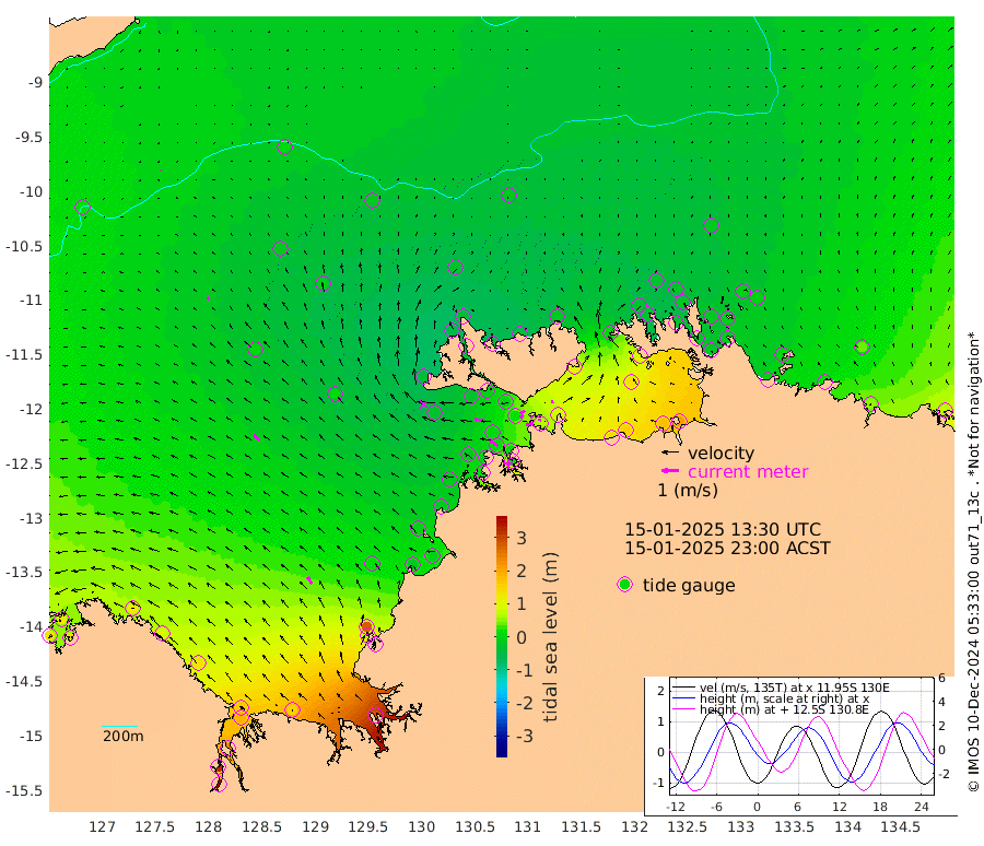 46cm/s -103T +4cm/s rms + 6cm/s 51T. Darwin_C1 52m 17cm/s -84T +4cm/s rms + 7cm/s -161T. Darwin_CW1 22m 19cm/s -117T +4cm/s rms + 8cm/s 61T. Darwin_CW2 34m 14cm/s -6T +3cm/s rms + 9cm/s 98T. Darwin_CW3 22m 12cm/s 106T +5cm/s rms + 7cm/s 88T. Darwin_C3 56m 31cm/s -118T +2cm/s rms + 9cm/s -126T. Darwin_CTbW 22m 5cm/s 0T +9cm/s rms + 2cm/s -110T. NWSLYN 196m 57cm/s -84T +1cm/s rms + 1cm/s -47T. DARBGF 30m 7cm/s -55T +7cm/s rms + 2cm/s -137T. ITFTIS 464m 17cm/s -21T +9cm/s rms + 1cm/s 74T. ITFMHB 146m 46cm/s -33T +4cm/s rms + 1cm/s -134T. ITFJBG 61m 44cm/s -48T +6cm/s rms + 4cm/s 121T. ITFFTB 108m 58cm/s -54T +4cm/s rms + 3cm/s 80T. NRSDAR 19m 121cm Carronade Island 130cm Guy Point 132cm Napier Broome Bay 114cm Lesueur Island 124cm Reveley Island 84cm Rocky Island 187cm Cape Domett 166cm Lacrosse Island 234cm Adolphus Island 320cm Pender Point 351cm Wyndham 5cm The Boxers -21cm Unnamed Shoal 6cm Loxton Shoal 150cm Pelican Island -10cm Calder Shoal -16cm Evans Shoal 290cm Quoin Island 89cm Port Keats 84cm Jones Point 273cm Catfish Island 15cm Cape Scott Offshore -15cm Cape Ford -2cm Anson Bay -31cm Goodrich Bank -6cm Peron Island North -15cm Point Jenny -16cm Native Point -15cm Fish Reef -7cm Tapa Bay -42cm Point Fawcett (Offshore) 10cm Burge Point -25cm Munkunuwa -24cm Beagle A 0cm Parsons Bank 3cm Fenton Patches -18cm Lynedoch Bank 17cm Hancox Shoal Area 8cm Nightcliff 21cm Darwin 4cm Charles Point Patches 67cm Glyde Point 137cm Chambers Bay 151cm Point Stuart 82cm Cape Hotham 126cm Christine Reef 174cm West Alligator Head 209cm East Field Island 99cm Two Hills Bay 1cm Newby Shoal 102cm Camp Point -9cm Medina Inlet South -50cm South Barlow Point -46cm St. Asaph Bay -39cm Cape Van Dieman -39cm Snake Bay -30cm Cache Point 15cm Echo Shoal -18cm Point Jahleel (Off) 10cm Cape Don -25cm Port Essington -31cm Smith Point - West -27cm NW Peacock Island -30cm North Of Jones Shoal -11cm Peacock Island -17cm Point David -33cm D'urville Point -20cm Money Shoal -17cm Copeland Island -19cm Cape Cockburn -16cm One Tree Point 0cm Hogmany Shoal -10cm New Year Island - West -8cm Grant Island -8cm Aurari Bay 16cm Cuthbert Point 0cm North Goulburn Island 38cm Paxie Shoal 50cm Entrance Island 69cm Yabooma Island