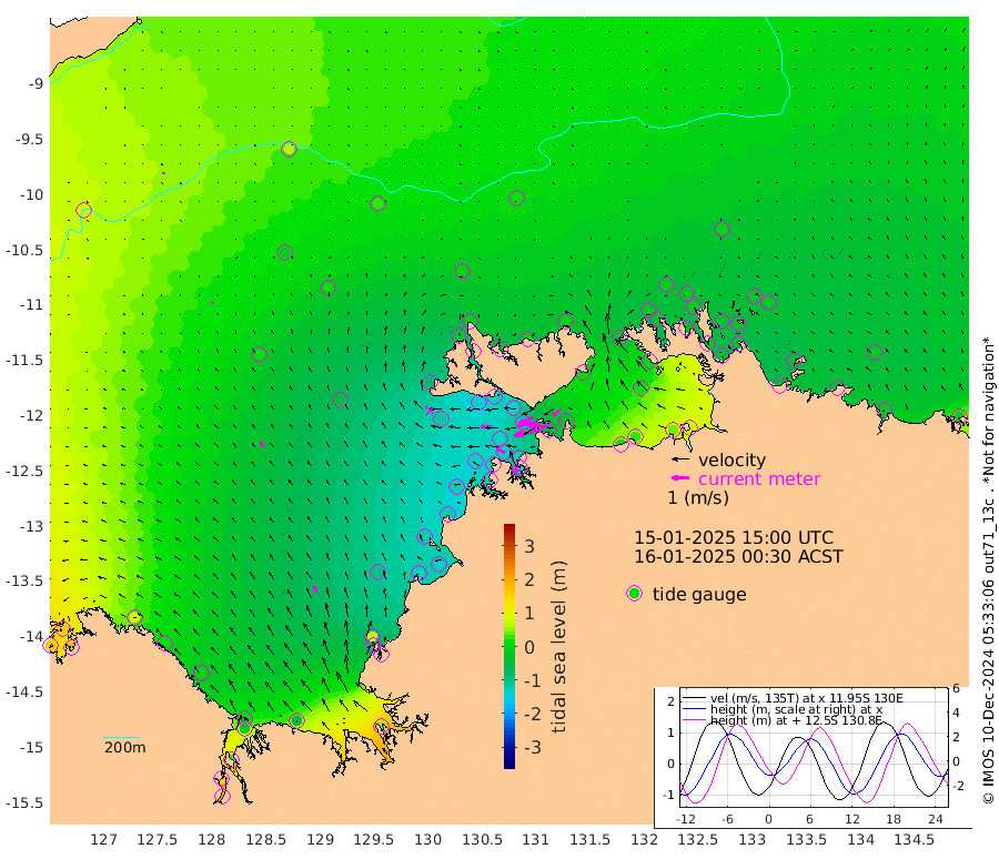162cm/s -102T +4cm/s rms + 6cm/s 51T. Darwin_C1 52m 116cm/s -89T +4cm/s rms + 7cm/s -161T. Darwin_CW1 22m 81cm/s -108T +4cm/s rms + 8cm/s 61T. Darwin_CW2 34m 57cm/s -128T +3cm/s rms + 9cm/s 98T. Darwin_CW3 22m 89cm/s -92T +5cm/s rms + 7cm/s 88T. Darwin_C3 56m 91cm/s -115T +2cm/s rms + 9cm/s -126T. Darwin_CTbW 22m 3cm/s 120T +9cm/s rms + 2cm/s -110T. NWSLYN 196m 63cm/s -89T +1cm/s rms + 1cm/s -47T. DARBGF 30m 6cm/s 3T +7cm/s rms + 2cm/s -137T. ITFTIS 464m 16cm/s 6T +9cm/s rms + 1cm/s 74T. ITFMHB 146m 44cm/s -22T +4cm/s rms + 1cm/s -134T. ITFJBG 61m 32cm/s -32T +6cm/s rms + 4cm/s 121T. ITFFTB 108m 59cm/s -62T +4cm/s rms + 3cm/s 80T. NRSDAR 19m 159cm Carronade Island 168cm Guy Point 173cm Napier Broome Bay 81cm Lesueur Island 5cm Reveley Island 13cm Rocky Island 0cm Cape Domett 0cm Lacrosse Island 32cm Adolphus Island 149cm Pender Point 191cm Wyndham 15cm The Boxers -15cm Unnamed Shoal 57cm Loxton Shoal -48cm Pelican Island 12cm Calder Shoal 23cm Evans Shoal 46cm Quoin Island -90cm Port Keats -94cm Jones Point 71cm Catfish Island -96cm Cape Scott Offshore -134cm Cape Ford -124cm Anson Bay 0cm Goodrich Bank -115cm Peron Island North -117cm Point Jenny -115cm Native Point -132cm Fish Reef -128cm Tapa Bay -73cm Point Fawcett (Offshore) -128cm Burge Point -141cm Munkunuwa -107cm Beagle A -136cm Parsons Bank -129cm Fenton Patches 17cm Lynedoch Bank -120cm Hancox Shoal Area -132cm Nightcliff -133cm Darwin -126cm Charles Point Patches -58cm Glyde Point 18cm Chambers Bay 29cm Point Stuart -31cm Cape Hotham 19cm Christine Reef 38cm West Alligator Head 75cm East Field Island 1cm Two Hills Bay -37cm Newby Shoal 9cm Camp Point -130cm Medina Inlet South -68cm South Barlow Point -43cm St. Asaph Bay -9cm Cape Van Dieman -12cm Snake Bay -5cm Cache Point 77cm Echo Shoal -11cm Point Jahleel (Off) -24cm Cape Don -22cm Port Essington -27cm Smith Point - West -20cm NW Peacock Island -10cm North Of Jones Shoal -6cm Peacock Island -25cm Point David -30cm D'urville Point -7cm Money Shoal -28cm Copeland Island -35cm Cape Cockburn -23cm One Tree Point -16cm Hogmany Shoal -17cm New Year Island - West -20cm Grant Island -35cm Aurari Bay -27cm Cuthbert Point -28cm North Goulburn Island -12cm Paxie Shoal -16cm Entrance Island -13cm Yabooma Island