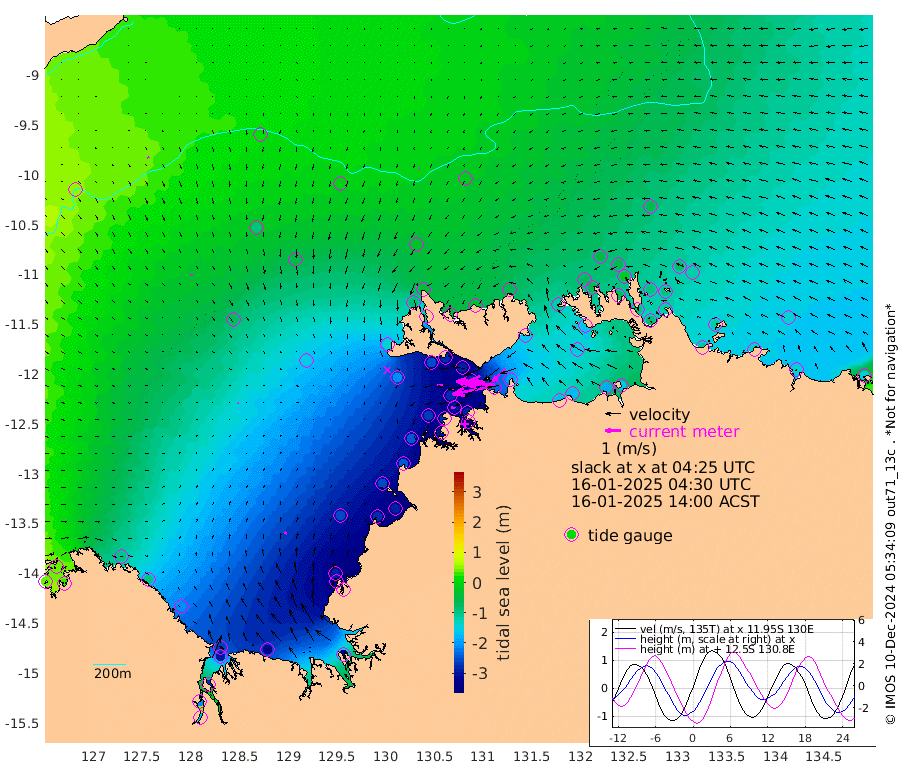 231cm/s -101T +4cm/s rms + 6cm/s 51T. Darwin_C1 52m 184cm/s -90T +4cm/s rms + 7cm/s -161T. Darwin_CW1 22m 117cm/s -106T +4cm/s rms + 8cm/s 61T. Darwin_CW2 34m 114cm/s -134T +3cm/s rms + 9cm/s 98T. Darwin_CW3 22m 188cm/s -90T +5cm/s rms + 7cm/s 88T. Darwin_C3 56m 125cm/s -115T +2cm/s rms + 9cm/s -126T. Darwin_CTbW 22m 6cm/s -90T +9cm/s rms + 2cm/s -110T. NWSLYN 196m 39cm/s -101T +1cm/s rms + 1cm/s -47T. DARBGF 30m 11cm/s 154T +7cm/s rms + 2cm/s -137T. ITFTIS 464m 9cm/s 151T +9cm/s rms + 1cm/s 74T. ITFMHB 146m 15cm/s 15T +4cm/s rms + 1cm/s -134T. ITFJBG 61m 8cm/s 104T +6cm/s rms + 4cm/s 121T. ITFFTB 108m 27cm/s -80T +4cm/s rms + 3cm/s 80T. NRSDAR 19m 39cm Carronade Island 41cm Guy Point 33cm Napier Broome Bay -94cm Lesueur Island -205cm Reveley Island -92cm Rocky Island -293cm Cape Domett -268cm Lacrosse Island -276cm Adolphus Island -211cm Pender Point -180cm Wyndham -69cm The Boxers -99cm Unnamed Shoal 12cm Loxton Shoal -317cm Pelican Island -46cm Calder Shoal -4cm Evans Shoal -335cm Quoin Island -324cm Port Keats -317cm Jones Point -287cm Catfish Island -251cm Cape Scott Offshore -278cm Cape Ford -282cm Anson Bay -29cm Goodrich Bank -253cm Peron Island North -241cm Point Jenny -240cm Native Point -262cm Fish Reef -275cm Tapa Bay -146cm Point Fawcett (Offshore) -293cm Burge Point -258cm Munkunuwa -206cm Beagle A -288cm Parsons Bank -272cm Fenton Patches -17cm Lynedoch Bank -280cm Hancox Shoal Area -290cm Nightcliff -324cm Darwin -299cm Charles Point Patches -233cm Glyde Point -177cm Chambers Bay -173cm Point Stuart -200cm Cape Hotham -156cm Christine Reef -181cm West Alligator Head -159cm East Field Island -165cm Two Hills Bay -147cm Newby Shoal -164cm Camp Point -276cm Medina Inlet South -121cm South Barlow Point -83cm St. Asaph Bay -35cm Cape Van Dieman -48cm Snake Bay -40cm Cache Point 45cm Echo Shoal -59cm Point Jahleel (Off) -116cm Cape Don -73cm Port Essington -66cm Smith Point - West -63cm NW Peacock Island -48cm North Of Jones Shoal -19cm Peacock Island -90cm Point David -70cm D'urville Point -60cm Money Shoal -89cm Copeland Island -119cm Cape Cockburn -90cm One Tree Point -115cm Hogmany Shoal -90cm New Year Island - West -95cm Grant Island -109cm Aurari Bay -126cm Cuthbert Point -115cm North Goulburn Island -145cm Paxie Shoal -143cm Entrance Island -154cm Yabooma Island