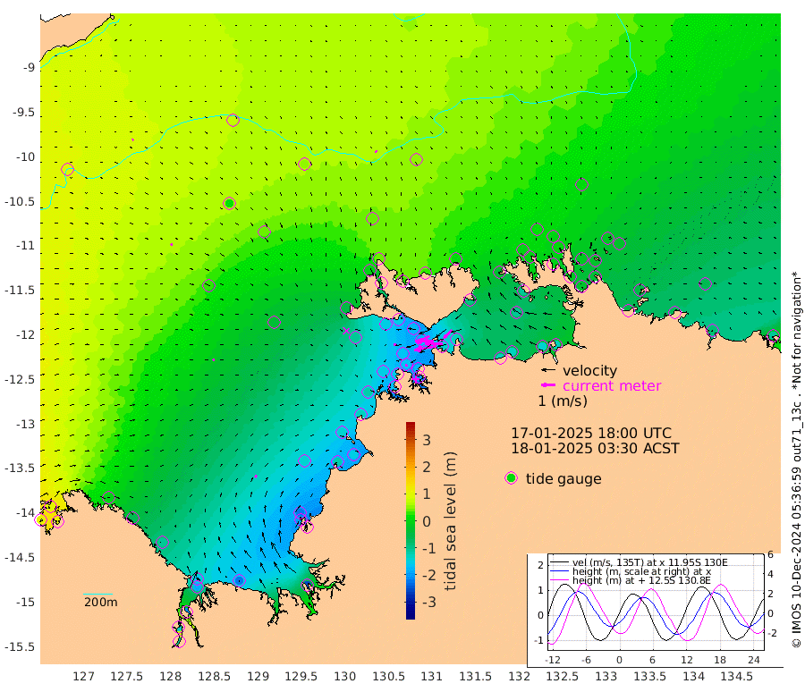160cm/s -100T +4cm/s rms + 6cm/s 51T. Darwin_C1 52m 126cm/s -91T +4cm/s rms + 7cm/s -161T. Darwin_CW1 22m 80cm/s -106T +4cm/s rms + 8cm/s 61T. Darwin_CW2 34m 83cm/s -136T +3cm/s rms + 9cm/s 98T. Darwin_CW3 22m 132cm/s -91T +5cm/s rms + 7cm/s 88T. Darwin_C3 56m 83cm/s -116T +2cm/s rms + 9cm/s -126T. Darwin_CTbW 22m 10cm/s 154T +9cm/s rms + 2cm/s -110T. NWSLYN 196m 18cm/s -107T +1cm/s rms + 1cm/s -47T. DARBGF 30m 10cm/s 51T +7cm/s rms + 2cm/s -137T. ITFTIS 464m 12cm/s 54T +9cm/s rms + 1cm/s 74T. ITFMHB 146m 17cm/s 29T +4cm/s rms + 1cm/s -134T. ITFJBG 61m 16cm/s 74T +6cm/s rms + 4cm/s 121T. ITFFTB 108m 14cm/s -98T +4cm/s rms + 3cm/s 80T. NRSDAR 19m 99cm Carronade Island 102cm Guy Point 109cm Napier Broome Bay 0cm Lesueur Island -111cm Reveley Island -62cm Rocky Island -190cm Cape Domett -166cm Lacrosse Island -209cm Adolphus Island -130cm Pender Point -112cm Wyndham 26cm The Boxers 19cm Unnamed Shoal 78cm Loxton Shoal -219cm Pelican Island 35cm Calder Shoal 52cm Evans Shoal -256cm Quoin Island -205cm Port Keats -202cm Jones Point -221cm Catfish Island -138cm Cape Scott Offshore -123cm Cape Ford -157cm Anson Bay 39cm Goodrich Bank -143cm Peron Island North -127cm Point Jenny -122cm Native Point -151cm Fish Reef -150cm Tapa Bay -45cm Point Fawcett (Offshore) -169cm Burge Point -148cm Munkunuwa -106cm Beagle A -175cm Parsons Bank -163cm Fenton Patches 46cm Lynedoch Bank -171cm Hancox Shoal Area -179cm Nightcliff -193cm Darwin -163cm Charles Point Patches -143cm Glyde Point -126cm Chambers Bay -124cm Point Stuart -128cm Cape Hotham -108cm Christine Reef -136cm West Alligator Head -126cm East Field Island -107cm Two Hills Bay -39cm Newby Shoal -92cm Camp Point -154cm Medina Inlet South -31cm South Barlow Point -3cm St. Asaph Bay 36cm Cape Van Dieman 30cm Snake Bay 29cm Cache Point 92cm Echo Shoal 6cm Point Jahleel (Off) -44cm Cape Don -4cm Port Essington -7cm Smith Point - West -2cm NW Peacock Island 13cm North Of Jones Shoal 2cm Peacock Island -19cm Point David -9cm D'urville Point 7cm Money Shoal -25cm Copeland Island -40cm Cape Cockburn -21cm One Tree Point -24cm Hogmany Shoal -17cm New Year Island - West -23cm Grant Island -50cm Aurari Bay -65cm Cuthbert Point -47cm North Goulburn Island -62cm Paxie Shoal -87cm Entrance Island -112cm Yabooma Island