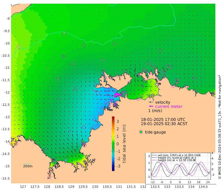 172cm/s -102T +4cm/s rms + 6cm/s 51T. Darwin_C1 52m 134cm/s -90T +4cm/s rms + 7cm/s -161T. Darwin_CW1 22m 99cm/s -107T +4cm/s rms + 8cm/s 61T. Darwin_CW2 34m 69cm/s -131T +3cm/s rms + 9cm/s 98T. Darwin_CW3 22m 129cm/s -91T +5cm/s rms + 7cm/s 88T. Darwin_C3 56m 97cm/s -115T +2cm/s rms + 9cm/s -126T. Darwin_CTbW 22m 2cm/s -173T +9cm/s rms + 2cm/s -110T. NWSLYN 196m 61cm/s -91T +1cm/s rms + 1cm/s -47T. DARBGF 30m 4cm/s 17T +7cm/s rms + 2cm/s -137T. ITFTIS 464m 14cm/s 8T +9cm/s rms + 1cm/s 74T. ITFMHB 146m 36cm/s -18T +4cm/s rms + 1cm/s -134T. ITFJBG 61m 24cm/s -28T +6cm/s rms + 4cm/s 121T. ITFFTB 108m 52cm/s -65T +4cm/s rms + 3cm/s 80T. NRSDAR 19m 118cm Carronade Island 121cm Guy Point 130cm Napier Broome Bay 26cm Lesueur Island -51cm Reveley Island -5cm Rocky Island -77cm Cape Domett -72cm Lacrosse Island -58cm Adolphus Island 60cm Pender Point 99cm Wyndham -16cm The Boxers -36cm Unnamed Shoal 24cm Loxton Shoal -117cm Pelican Island -22cm Calder Shoal -2cm Evans Shoal -59cm Quoin Island -154cm Port Keats -141cm Jones Point -1cm Catfish Island -145cm Cape Scott Offshore -155cm Cape Ford -172cm Anson Bay -21cm Goodrich Bank -157cm Peron Island North -151cm Point Jenny -150cm Native Point -165cm Fish Reef -169cm Tapa Bay -103cm Point Fawcett (Offshore) -171cm Burge Point -174cm Munkunuwa -137cm Beagle A -177cm Parsons Bank -167cm Fenton Patches -7cm Lynedoch Bank -165cm Hancox Shoal Area -184cm Nightcliff -184cm Darwin -174cm Charles Point Patches -98cm Glyde Point -29cm Chambers Bay -8cm Point Stuart -70cm Cape Hotham -23cm Christine Reef -2cm West Alligator Head 33cm East Field Island -35cm Two Hills Bay -76cm Newby Shoal -29cm Camp Point -172cm Medina Inlet South -96cm South Barlow Point -69cm St. Asaph Bay -28cm Cape Van Dieman -36cm Snake Bay -27cm Cache Point 45cm Echo Shoal -35cm Point Jahleel (Off) -52cm Cape Don -43cm Port Essington -49cm Smith Point - West -41cm NW Peacock Island -37cm North Of Jones Shoal -15cm Peacock Island -45cm Point David -50cm D'urville Point -30cm Money Shoal -47cm Copeland Island -64cm Cape Cockburn -47cm One Tree Point -41cm Hogmany Shoal -41cm New Year Island - West -44cm Grant Island -55cm Aurari Bay -47cm Cuthbert Point -53cm North Goulburn Island -39cm Paxie Shoal -42cm Entrance Island -41cm Yabooma Island