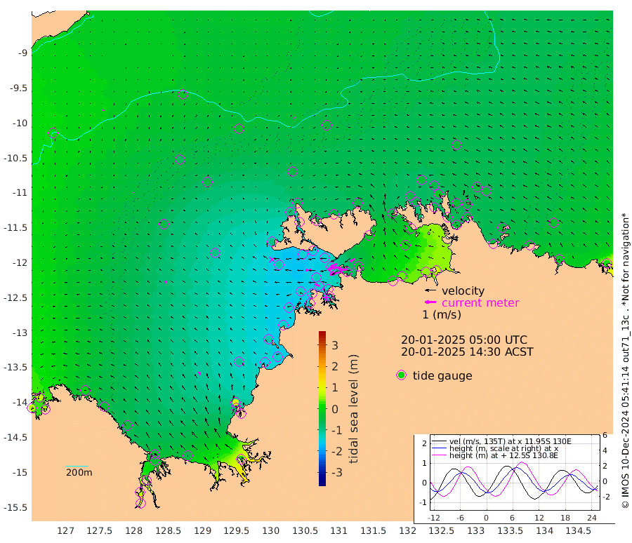 118cm/s -103T +4cm/s rms + 6cm/s 51T. Darwin_C1 52m 80cm/s -89T +4cm/s rms + 7cm/s -161T. Darwin_CW1 22m 80cm/s -109T +4cm/s rms + 8cm/s 61T. Darwin_CW2 34m 47cm/s -122T +3cm/s rms + 9cm/s 98T. Darwin_CW3 22m 93cm/s -92T +5cm/s rms + 7cm/s 88T. Darwin_C3 56m 69cm/s -116T +2cm/s rms + 9cm/s -126T. Darwin_CTbW 22m 5cm/s -39T +9cm/s rms + 2cm/s -110T. NWSLYN 196m 48cm/s -92T +1cm/s rms + 1cm/s -47T. DARBGF 30m 6cm/s -155T +7cm/s rms + 2cm/s -137T. ITFTIS 464m 3cm/s -61T +9cm/s rms + 1cm/s 74T. ITFMHB 146m 27cm/s -23T +4cm/s rms + 1cm/s -134T. ITFJBG 61m 19cm/s -48T +6cm/s rms + 4cm/s 121T. ITFFTB 108m 40cm/s -64T +4cm/s rms + 3cm/s 80T. NRSDAR 19m 70cm Carronade Island 72cm Guy Point 66cm Napier Broome Bay 8cm Lesueur Island -38cm Reveley Island -39cm Rocky Island -44cm Cape Domett -33cm Lacrosse Island -14cm Adolphus Island 57cm Pender Point 98cm Wyndham -55cm The Boxers -76cm Unnamed Shoal -26cm Loxton Shoal -65cm Pelican Island -52cm Calder Shoal -31cm Evans Shoal 8cm Quoin Island -115cm Port Keats -99cm Jones Point 95cm Catfish Island -110cm Cape Scott Offshore -148cm Cape Ford -133cm Anson Bay -53cm Goodrich Bank -115cm Peron Island North -127cm Point Jenny -132cm Native Point -126cm Fish Reef -141cm Tapa Bay -95cm Point Fawcett (Offshore) -138cm Burge Point -144cm Munkunuwa -118cm Beagle A -139cm Parsons Bank -133cm Fenton Patches -41cm Lynedoch Bank -125cm Hancox Shoal Area -136cm Nightcliff -145cm Darwin -146cm Charles Point Patches -64cm Glyde Point 13cm Chambers Bay 36cm Point Stuart -27cm Cape Hotham 8cm Christine Reef 48cm West Alligator Head 81cm East Field Island 1cm Two Hills Bay -92cm Newby Shoal -13cm Camp Point -142cm Medina Inlet South -103cm South Barlow Point -81cm St. Asaph Bay -59cm Cape Van Dieman -66cm Snake Bay -49cm Cache Point 4cm Echo Shoal -47cm Point Jahleel (Off) -48cm Cape Don -53cm Port Essington -53cm Smith Point - West -49cm NW Peacock Island -42cm North Of Jones Shoal -15cm Peacock Island -46cm Point David -54cm D'urville Point -43cm Money Shoal -42cm Copeland Island -49cm Cape Cockburn -44cm One Tree Point -42cm Hogmany Shoal -44cm New Year Island - West -45cm Grant Island -36cm Aurari Bay -30cm Cuthbert Point -39cm North Goulburn Island -23cm Paxie Shoal -14cm Entrance Island 13cm Yabooma Island