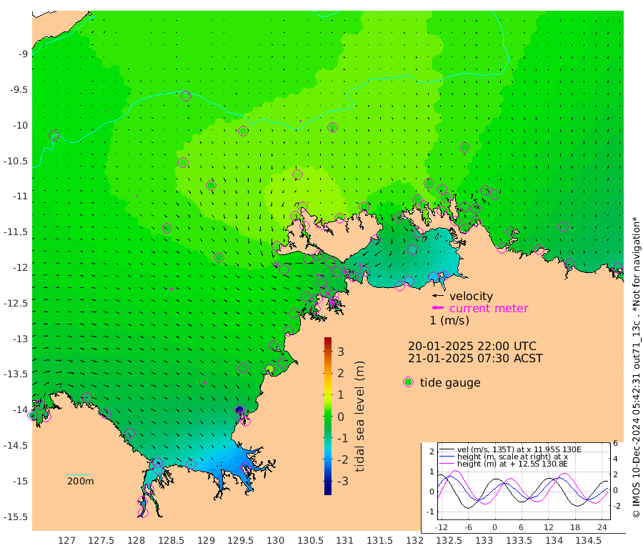 7cm/s 80T +4cm/s rms + 6cm/s 51T. Darwin_C1 52m 7cm/s -77T +4cm/s rms + 7cm/s -161T. Darwin_CW1 22m 1cm/s -37T +4cm/s rms + 8cm/s 61T. Darwin_CW2 34m 25cm/s -150T +3cm/s rms + 9cm/s 98T. Darwin_CW3 22m 33cm/s -87T +5cm/s rms + 7cm/s 88T. Darwin_C3 56m 14cm/s 58T +2cm/s rms + 9cm/s -126T. Darwin_CTbW 22m 10cm/s 157T +9cm/s rms + 2cm/s -110T. NWSLYN 196m 35cm/s 98T +1cm/s rms + 1cm/s -47T. DARBGF 30m 6cm/s 66T +7cm/s rms + 2cm/s -137T. ITFTIS 464m 8cm/s 131T +9cm/s rms + 1cm/s 74T. ITFMHB 146m 29cm/s 141T +4cm/s rms + 1cm/s -134T. ITFJBG 61m 28cm/s 125T +6cm/s rms + 4cm/s 121T. ITFFTB 108m 41cm/s 126T +4cm/s rms + 3cm/s 80T. NRSDAR 19m -67cm Carronade Island -65cm Guy Point -72cm Napier Broome Bay -73cm Lesueur Island -82cm Reveley Island -63cm Rocky Island -135cm Cape Domett -127cm Lacrosse Island -176cm Adolphus Island -208cm Pender Point -242cm Wyndham 10cm The Boxers 25cm Unnamed Shoal 23cm Loxton Shoal -117cm Pelican Island 21cm Calder Shoal 26cm Evans Shoal -233cm Quoin Island -67cm Port Keats -70cm Jones Point -305cm Catfish Island -23cm Cape Scott Offshore 47cm Cape Ford -14cm Anson Bay 38cm Goodrich Bank -16cm Peron Island North 3cm Point Jenny 8cm Native Point -12cm Fish Reef 2cm Tapa Bay 24cm Point Fawcett (Offshore) -17cm Burge Point 16cm Munkunuwa 4cm Beagle A -11cm Parsons Bank -17cm Fenton Patches 28cm Lynedoch Bank -21cm Hancox Shoal Area -22cm Nightcliff -28cm Darwin -9cm Charles Point Patches -67cm Glyde Point -124cm Chambers Bay -142cm Point Stuart -85cm Cape Hotham -109cm Christine Reef -161cm West Alligator Head -188cm East Field Island -100cm Two Hills Bay -4cm Newby Shoal -84cm Camp Point -4cm Medina Inlet South 39cm South Barlow Point 40cm St. Asaph Bay 43cm Cape Van Dieman 40cm Snake Bay 28cm Cache Point 8cm Echo Shoal 15cm Point Jahleel (Off) -18cm Cape Don 16cm Port Essington 16cm Smith Point - West 15cm NW Peacock Island 16cm North Of Jones Shoal 5cm Peacock Island 7cm Point David 17cm D'urville Point 13cm Money Shoal 3cm Copeland Island -9cm Cape Cockburn 0cm One Tree Point -2cm Hogmany Shoal -2cm New Year Island - West -1cm Grant Island -19cm Aurari Bay -35cm Cuthbert Point -16cm North Goulburn Island -41cm Paxie Shoal -59cm Entrance Island -88cm Yabooma Island