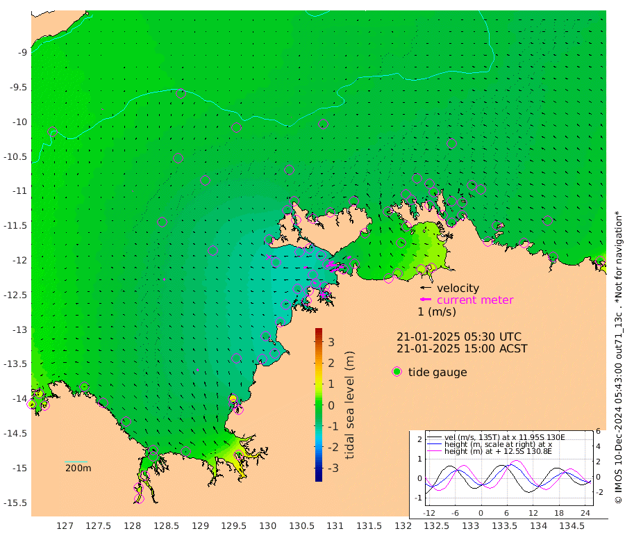 84cm/s -103T +4cm/s rms + 6cm/s 51T. Darwin_C1 52m 44cm/s -89T +4cm/s rms + 7cm/s -161T. Darwin_CW1 22m 60cm/s -110T +4cm/s rms + 8cm/s 61T. Darwin_CW2 34m 33cm/s -119T +3cm/s rms + 9cm/s 98T. Darwin_CW3 22m 62cm/s -92T +5cm/s rms + 7cm/s 88T. Darwin_C3 56m 50cm/s -116T +2cm/s rms + 9cm/s -126T. Darwin_CTbW 22m 4cm/s -31T +9cm/s rms + 2cm/s -110T. NWSLYN 196m 36cm/s -92T +1cm/s rms + 1cm/s -47T. DARBGF 30m 5cm/s -158T +7cm/s rms + 2cm/s -137T. ITFTIS 464m 2cm/s -102T +9cm/s rms + 1cm/s 74T. ITFMHB 146m 21cm/s -23T +4cm/s rms + 1cm/s -134T. ITFJBG 61m 14cm/s -47T +6cm/s rms + 4cm/s 121T. ITFFTB 108m 30cm/s -65T +4cm/s rms + 3cm/s 80T. NRSDAR 19m 72cm Carronade Island 74cm Guy Point 69cm Napier Broome Bay 27cm Lesueur Island -13cm Reveley Island -26cm Rocky Island -16cm Cape Domett -3cm Lacrosse Island 6cm Adolphus Island 65cm Pender Point 100cm Wyndham -34cm The Boxers -51cm Unnamed Shoal -14cm Loxton Shoal -32cm Pelican Island -32cm Calder Shoal -18cm Evans Shoal 32cm Quoin Island -77cm Port Keats -62cm Jones Point 124cm Catfish Island -71cm Cape Scott Offshore -105cm Cape Ford -90cm Anson Bay -38cm Goodrich Bank -77cm Peron Island North -89cm Point Jenny -94cm Native Point -86cm Fish Reef -99cm Tapa Bay -63cm Point Fawcett (Offshore) -99cm Burge Point -105cm Munkunuwa -82cm Beagle A -103cm Parsons Bank -94cm Fenton Patches -29cm Lynedoch Bank -89cm Hancox Shoal Area -96cm Nightcliff -104cm Darwin -104cm Charles Point Patches -38cm Glyde Point 25cm Chambers Bay 45cm Point Stuart -8cm Cape Hotham 18cm Christine Reef 57cm West Alligator Head 84cm East Field Island 15cm Two Hills Bay -63cm Newby Shoal 2cm Camp Point -101cm Medina Inlet South -76cm South Barlow Point -56cm St. Asaph Bay -43cm Cape Van Dieman -49cm Snake Bay -33cm Cache Point 13cm Echo Shoal -32cm Point Jahleel (Off) -32cm Cape Don -39cm Port Essington -39cm Smith Point - West -37cm NW Peacock Island -29cm North Of Jones Shoal -11cm Peacock Island -36cm Point David -41cm D'urville Point -33cm Money Shoal -33cm Copeland Island -38cm Cape Cockburn -34cm One Tree Point -31cm Hogmany Shoal -33cm New Year Island - West -36cm Grant Island -27cm Aurari Bay -24cm Cuthbert Point -31cm North Goulburn Island -17cm Paxie Shoal -13cm Entrance Island 9cm Yabooma Island