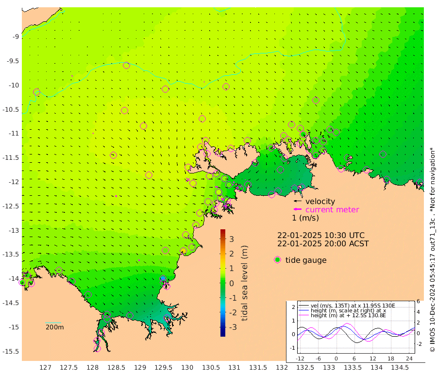 21cm/s 81T +4cm/s rms + 6cm/s 51T. Darwin_C1 52m 9cm/s 85T +4cm/s rms + 7cm/s -161T. Darwin_CW1 22m 11cm/s 75T +4cm/s rms + 8cm/s 61T. Darwin_CW2 34m 4cm/s -156T +3cm/s rms + 9cm/s 98T. Darwin_CW3 22m 1cm/s -77T +5cm/s rms + 7cm/s 88T. Darwin_C3 56m 14cm/s 63T +2cm/s rms + 9cm/s -126T. Darwin_CTbW 22m 3cm/s 111T +9cm/s rms + 2cm/s -110T. NWSLYN 196m 33cm/s 93T +1cm/s rms + 1cm/s -47T. DARBGF 30m 8cm/s 52T +7cm/s rms + 2cm/s -137T. ITFTIS 464m 9cm/s 115T +9cm/s rms + 1cm/s 74T. ITFMHB 146m 20cm/s 140T +4cm/s rms + 1cm/s -134T. ITFJBG 61m 22cm/s 117T +6cm/s rms + 4cm/s 121T. ITFFTB 108m 35cm/s 125T +4cm/s rms + 3cm/s 80T. NRSDAR 19m 29cm Carronade Island 28cm Guy Point 26cm Napier Broome Bay 35cm Lesueur Island 12cm Reveley Island 8cm Rocky Island -16cm Cape Domett -7cm Lacrosse Island -42cm Adolphus Island -80cm Pender Point -100cm Wyndham 72cm The Boxers 73cm Unnamed Shoal 77cm Loxton Shoal -24cm Pelican Island 87cm Calder Shoal 70cm Evans Shoal -96cm Quoin Island 28cm Port Keats 12cm Jones Point -183cm Catfish Island 44cm Cape Scott Offshore 136cm Cape Ford 47cm Anson Bay 75cm Goodrich Bank 59cm Peron Island North 67cm Point Jenny 70cm Native Point 64cm Fish Reef 63cm Tapa Bay 80cm Point Fawcett (Offshore) 70cm Burge Point 70cm Munkunuwa 83cm Beagle A 54cm Parsons Bank 68cm Fenton Patches 65cm Lynedoch Bank 42cm Hancox Shoal Area 55cm Nightcliff 50cm Darwin 62cm Charles Point Patches 8cm Glyde Point -46cm Chambers Bay -60cm Point Stuart -8cm Cape Hotham -32cm Christine Reef -73cm West Alligator Head -91cm East Field Island -26cm Two Hills Bay 95cm Newby Shoal -16cm Camp Point 66cm Medina Inlet South 88cm South Barlow Point 85cm St. Asaph Bay 77cm Cape Van Dieman 79cm Snake Bay 71cm Cache Point 67cm Echo Shoal 59cm Point Jahleel (Off) 31cm Cape Don 50cm Port Essington 52cm Smith Point - West 49cm NW Peacock Island 56cm North Of Jones Shoal 18cm Peacock Island 28cm Point David 48cm D'urville Point 43cm Money Shoal 22cm Copeland Island 34cm Cape Cockburn 30cm One Tree Point 23cm Hogmany Shoal 31cm New Year Island - West 28cm Grant Island 4cm Aurari Bay -12cm Cuthbert Point 12cm North Goulburn Island -24cm Paxie Shoal -34cm Entrance Island -67cm Yabooma Island