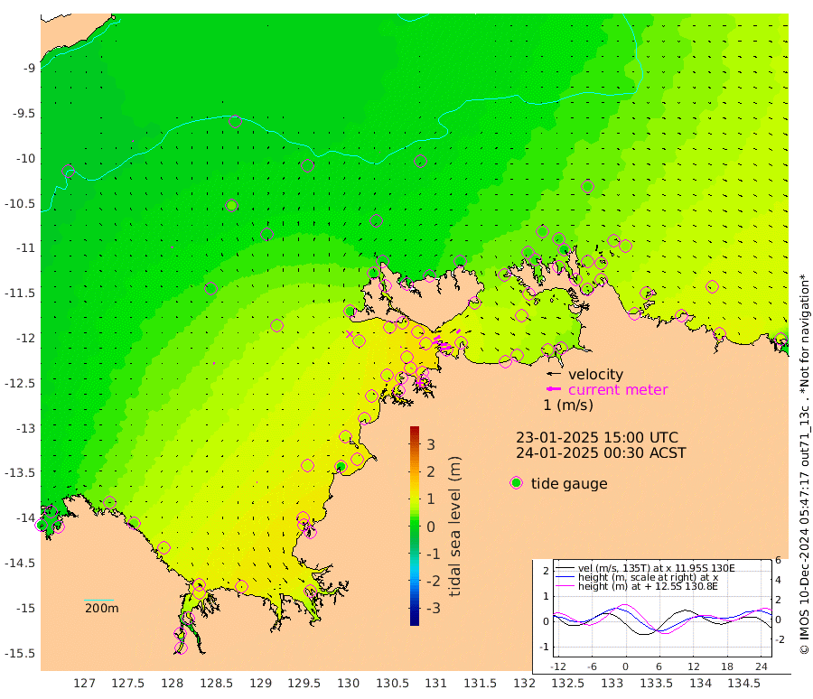 65cm/s 78T +4cm/s rms + 6cm/s 51T. Darwin_C1 52m 22cm/s 87T +4cm/s rms + 7cm/s -161T. Darwin_CW1 22m 40cm/s 73T +4cm/s rms + 8cm/s 61T. Darwin_CW2 34m 33cm/s 46T +3cm/s rms + 9cm/s 98T. Darwin_CW3 22m 59cm/s 90T +5cm/s rms + 7cm/s 88T. Darwin_C3 56m 45cm/s 64T +2cm/s rms + 9cm/s -126T. Darwin_CTbW 22m 3cm/s 3T +9cm/s rms + 2cm/s -110T. NWSLYN 196m 6cm/s 56T +1cm/s rms + 1cm/s -47T. DARBGF 30m 5cm/s -42T +7cm/s rms + 2cm/s -137T. ITFTIS 464m 8cm/s -19T +9cm/s rms + 1cm/s 74T. ITFMHB 146m 5cm/s -81T +4cm/s rms + 1cm/s -134T. ITFJBG 61m 9cm/s -58T +6cm/s rms + 4cm/s 121T. ITFFTB 108m 4cm/s 24T +4cm/s rms + 3cm/s 80T. NRSDAR 19m -5cm Carronade Island -9cm Guy Point 2cm Napier Broome Bay 37cm Lesueur Island 68cm Reveley Island 41cm Rocky Island 103cm Cape Domett 93cm Lacrosse Island 112cm Adolphus Island 88cm Pender Point 90cm Wyndham 20cm The Boxers 40cm Unnamed Shoal -8cm Loxton Shoal 104cm Pelican Island 11cm Calder Shoal -6cm Evans Shoal 136cm Quoin Island 103cm Port Keats 92cm Jones Point 126cm Catfish Island 76cm Cape Scott Offshore 12cm Cape Ford 88cm Anson Bay 5cm Goodrich Bank 74cm Peron Island North 68cm Point Jenny 68cm Native Point 72cm Fish Reef 78cm Tapa Bay 33cm Point Fawcett (Offshore) 87cm Burge Point 68cm Munkunuwa 58cm Beagle A 92cm Parsons Bank 83cm Fenton Patches 7cm Lynedoch Bank 91cm Hancox Shoal Area 100cm Nightcliff 103cm Darwin 87cm Charles Point Patches 83cm Glyde Point 78cm Chambers Bay 74cm Point Stuart 76cm Cape Hotham 72cm Christine Reef 78cm West Alligator Head 75cm East Field Island 71cm Two Hills Bay 53cm Newby Shoal 67cm Camp Point 80cm Medina Inlet South 34cm South Barlow Point 16cm St. Asaph Bay 6cm Cape Van Dieman 17cm Snake Bay 9cm Cache Point -19cm Echo Shoal 20cm Point Jahleel (Off) 47cm Cape Don 28cm Port Essington 29cm Smith Point - West 31cm NW Peacock Island 23cm North Of Jones Shoal 10cm Peacock Island 49cm Point David 35cm D'urville Point 32cm Money Shoal 49cm Copeland Island 66cm Cape Cockburn 48cm One Tree Point 55cm Hogmany Shoal 52cm New Year Island - West 53cm Grant Island 64cm Aurari Bay 73cm Cuthbert Point 64cm North Goulburn Island 77cm Paxie Shoal 88cm Entrance Island 99cm Yabooma Island