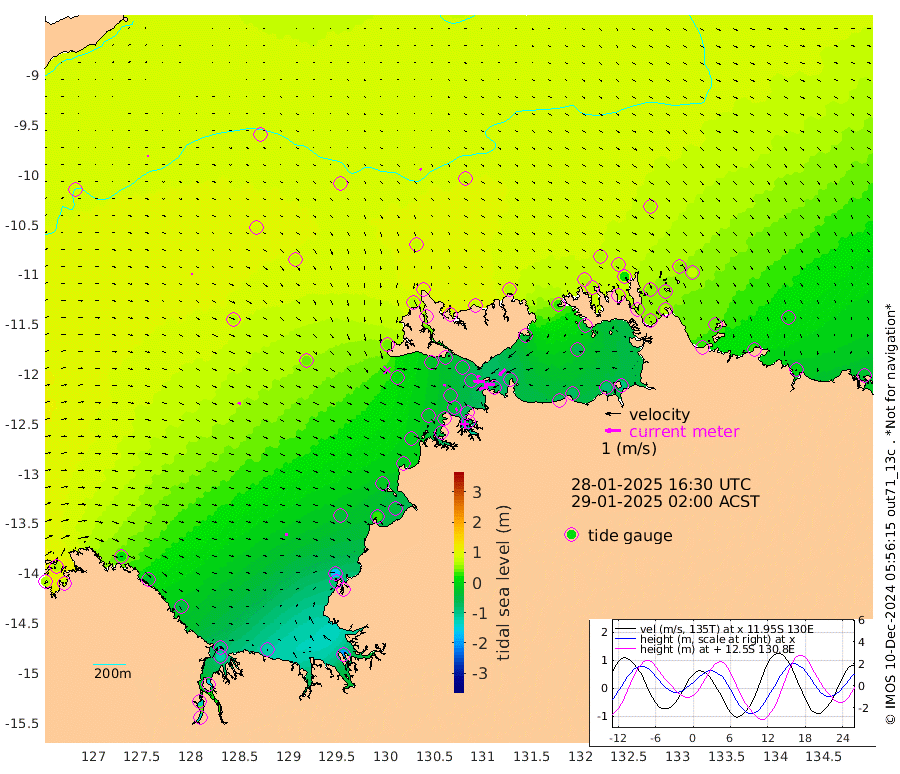 67cm/s -101T +4cm/s rms + 6cm/s 51T. Darwin_C1 52m 68cm/s -92T +4cm/s rms + 7cm/s -161T. Darwin_CW1 22m 31cm/s -108T +4cm/s rms + 8cm/s 61T. Darwin_CW2 34m 56cm/s -137T +3cm/s rms + 9cm/s 98T. Darwin_CW3 22m 56cm/s -92T +5cm/s rms + 7cm/s 88T. Darwin_C3 56m 25cm/s -114T +2cm/s rms + 9cm/s -126T. Darwin_CTbW 22m 11cm/s 145T +9cm/s rms + 2cm/s -110T. NWSLYN 196m 17cm/s 106T +1cm/s rms + 1cm/s -47T. DARBGF 30m 10cm/s 38T +7cm/s rms + 2cm/s -137T. ITFTIS 464m 10cm/s 63T +9cm/s rms + 1cm/s 74T. ITFMHB 146m 14cm/s 95T +4cm/s rms + 1cm/s -134T. ITFJBG 61m 20cm/s 101T +6cm/s rms + 4cm/s 121T. ITFFTB 108m 20cm/s 141T +4cm/s rms + 3cm/s 80T. NRSDAR 19m 65cm Carronade Island 62cm Guy Point 71cm Napier Broome Bay 22cm Lesueur Island -52cm Reveley Island -31cm Rocky Island -115cm Cape Domett -98cm Lacrosse Island -147cm Adolphus Island -133cm Pender Point -130cm Wyndham 67cm The Boxers 80cm Unnamed Shoal 83cm Loxton Shoal -122cm Pelican Island 71cm Calder Shoal 75cm Evans Shoal -202cm Quoin Island -95cm Port Keats -87cm Jones Point -162cm Catfish Island -36cm Cape Scott Offshore 27cm Cape Ford -41cm Anson Bay 78cm Goodrich Bank -21cm Peron Island North -13cm Point Jenny -10cm Native Point -24cm Fish Reef -27cm Tapa Bay 40cm Point Fawcett (Offshore) -41cm Burge Point -31cm Munkunuwa 2cm Beagle A -41cm Parsons Bank -39cm Fenton Patches 73cm Lynedoch Bank -49cm Hancox Shoal Area -58cm Nightcliff -56cm Darwin -32cm Charles Point Patches -50cm Glyde Point -73cm Chambers Bay -72cm Point Stuart -49cm Cape Hotham -60cm Christine Reef -87cm West Alligator Head -97cm East Field Island -42cm Two Hills Bay 43cm Newby Shoal -41cm Camp Point -31cm Medina Inlet South 47cm South Barlow Point 57cm St. Asaph Bay 80cm Cape Van Dieman 79cm Snake Bay 76cm Cache Point 81cm Echo Shoal 58cm Point Jahleel (Off) 25cm Cape Don 60cm Port Essington 60cm Smith Point - West 63cm NW Peacock Island 64cm North Of Jones Shoal 22cm Peacock Island 55cm Point David 62cm D'urville Point 64cm Money Shoal 49cm Copeland Island 61cm Cape Cockburn 52cm One Tree Point 69cm Hogmany Shoal 55cm New Year Island - West 54cm Grant Island 30cm Aurari Bay 26cm Cuthbert Point 37cm North Goulburn Island 12cm Paxie Shoal 1cm Entrance Island -26cm Yabooma Island