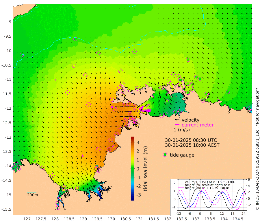 224cm/s 78T +4cm/s rms + 6cm/s 51T. Darwin_C1 52m 168cm/s 89T +4cm/s rms + 7cm/s -161T. Darwin_CW1 22m 113cm/s 74T +4cm/s rms + 8cm/s 61T. Darwin_CW2 34m 95cm/s 51T +3cm/s rms + 9cm/s 98T. Darwin_CW3 22m 149cm/s 89T +5cm/s rms + 7cm/s 88T. Darwin_C3 56m 124cm/s 65T +2cm/s rms + 9cm/s -126T. Darwin_CTbW 22m 2cm/s 69T +9cm/s rms + 2cm/s -110T. NWSLYN 196m 85cm/s 89T +1cm/s rms + 1cm/s -47T. DARBGF 30m 4cm/s 90T +7cm/s rms + 2cm/s -137T. ITFTIS 464m 23cm/s 170T +9cm/s rms + 1cm/s 74T. ITFMHB 146m 50cm/s 161T +4cm/s rms + 1cm/s -134T. ITFJBG 61m 42cm/s 140T +6cm/s rms + 4cm/s 121T. ITFFTB 108m 86cm/s 117T +4cm/s rms + 3cm/s 80T. NRSDAR 19m -61cm Carronade Island -64cm Guy Point -62cm Napier Broome Bay 24cm Lesueur Island 104cm Reveley Island 80cm Rocky Island 121cm Cape Domett 117cm Lacrosse Island 67cm Adolphus Island -53cm Pender Point -108cm Wyndham 82cm The Boxers 93cm Unnamed Shoal 22cm Loxton Shoal 145cm Pelican Island 87cm Calder Shoal 40cm Evans Shoal 29cm Quoin Island 217cm Port Keats 195cm Jones Point -71cm Catfish Island 206cm Cape Scott Offshore 296cm Cape Ford 235cm Anson Bay 62cm Goodrich Bank 218cm Peron Island North 244cm Point Jenny 244cm Native Point 245cm Fish Reef 253cm Tapa Bay 170cm Point Fawcett (Offshore) 265cm Burge Point 260cm Munkunuwa 233cm Beagle A 244cm Parsons Bank 260cm Fenton Patches 36cm Lynedoch Bank 224cm Hancox Shoal Area 259cm Nightcliff 248cm Darwin 241cm Charles Point Patches 133cm Glyde Point 27cm Chambers Bay -2cm Point Stuart 84cm Cape Hotham 40cm Christine Reef -11cm West Alligator Head -57cm East Field Island 36cm Two Hills Bay 175cm Newby Shoal 42cm Camp Point 249cm Medina Inlet South 157cm South Barlow Point 128cm St. Asaph Bay 72cm Cape Van Dieman 73cm Snake Bay 66cm Cache Point -9cm Echo Shoal 67cm Point Jahleel (Off) 75cm Cape Don 59cm Port Essington 67cm Smith Point - West 53cm NW Peacock Island 48cm North Of Jones Shoal 17cm Peacock Island 33cm Point David 60cm D'urville Point 32cm Money Shoal 30cm Copeland Island 46cm Cape Cockburn 36cm One Tree Point 22cm Hogmany Shoal 33cm New Year Island - West 35cm Grant Island 25cm Aurari Bay 15cm Cuthbert Point 29cm North Goulburn Island 1cm Paxie Shoal -4cm Entrance Island -38cm Yabooma Island