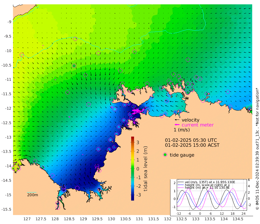 195cm/s -101T +4cm/s rms + 6cm/s 51T. Darwin_C1 52m 155cm/s -91T +4cm/s rms + 7cm/s -161T. Darwin_CW1 22m 108cm/s -106T +4cm/s rms + 8cm/s 61T. Darwin_CW2 34m 110cm/s -136T +3cm/s rms + 9cm/s 98T. Darwin_CW3 22m 183cm/s -90T +5cm/s rms + 7cm/s 88T. Darwin_C3 56m 103cm/s -115T +2cm/s rms + 9cm/s -126T. Darwin_CTbW 22m 4cm/s -141T +9cm/s rms + 2cm/s -110T. NWSLYN 196m 12cm/s -140T +1cm/s rms + 1cm/s -47T. DARBGF 30m 12cm/s 126T +7cm/s rms + 2cm/s -137T. ITFTIS 464m 16cm/s 140T +9cm/s rms + 1cm/s 74T. ITFMHB 146m 16cm/s 85T +4cm/s rms + 1cm/s -134T. ITFJBG 61m 28cm/s 116T +6cm/s rms + 4cm/s 121T. ITFFTB 108m 13cm/s -167T +4cm/s rms + 3cm/s 80T. NRSDAR 19m 56cm Carronade Island 51cm Guy Point 53cm Napier Broome Bay -70cm Lesueur Island -211cm Reveley Island -92cm Rocky Island -325cm Cape Domett -283cm Lacrosse Island -341cm Adolphus Island -289cm Pender Point -266cm Wyndham -17cm The Boxers -34cm Unnamed Shoal 62cm Loxton Shoal -348cm Pelican Island 11cm Calder Shoal 46cm Evans Shoal -407cm Quoin Island -331cm Port Keats -315cm Jones Point -306cm Catfish Island -219cm Cape Scott Offshore -221cm Cape Ford -250cm Anson Bay 20cm Goodrich Bank -209cm Peron Island North -209cm Point Jenny -208cm Native Point -218cm Fish Reef -246cm Tapa Bay -82cm Point Fawcett (Offshore) -270cm Burge Point -222cm Munkunuwa -164cm Beagle A -270cm Parsons Bank -250cm Fenton Patches 27cm Lynedoch Bank -272cm Hancox Shoal Area -277cm Nightcliff -304cm Darwin -269cm Charles Point Patches -233cm Glyde Point -211cm Chambers Bay -202cm Point Stuart -203cm Cape Hotham -194cm Christine Reef -216cm West Alligator Head -207cm East Field Island -173cm Two Hills Bay -100cm Newby Shoal -180cm Camp Point -239cm Medina Inlet South -66cm South Barlow Point -26cm St. Asaph Bay 17cm Cape Van Dieman 7cm Snake Bay 10cm Cache Point 94cm Echo Shoal -17cm Point Jahleel (Off) -93cm Cape Don -35cm Port Essington -31cm Smith Point - West -30cm NW Peacock Island -5cm North Of Jones Shoal -5cm Peacock Island -69cm Point David -38cm D'urville Point -32cm Money Shoal -73cm Copeland Island -92cm Cape Cockburn -64cm One Tree Point -96cm Hogmany Shoal -67cm New Year Island - West -77cm Grant Island -98cm Aurari Bay -134cm Cuthbert Point -106cm North Goulburn Island -156cm Paxie Shoal -177cm Entrance Island -208cm Yabooma Island