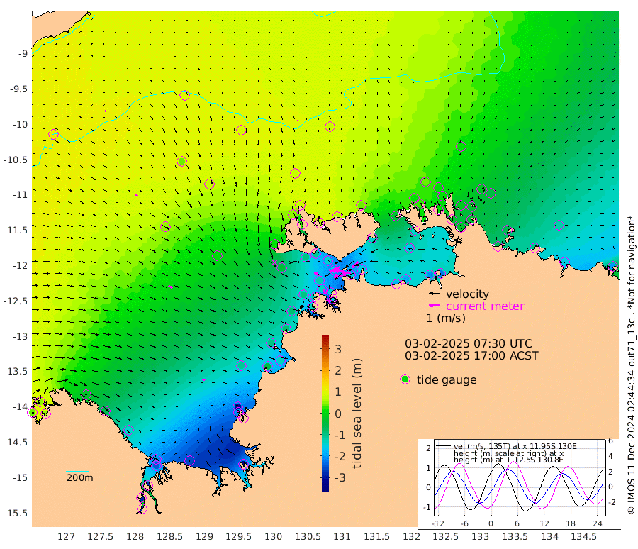 109cm/s -101T +4cm/s rms + 6cm/s 51T. Darwin_C1 52m 84cm/s -92T +4cm/s rms + 7cm/s -161T. Darwin_CW1 22m 62cm/s -106T +4cm/s rms + 8cm/s 61T. Darwin_CW2 34m 75cm/s -136T +3cm/s rms + 9cm/s 98T. Darwin_CW3 22m 123cm/s -91T +5cm/s rms + 7cm/s 88T. Darwin_C3 56m 54cm/s -116T +2cm/s rms + 9cm/s -126T. Darwin_CTbW 22m 5cm/s 166T +9cm/s rms + 2cm/s -110T. NWSLYN 196m 30cm/s 107T +1cm/s rms + 1cm/s -47T. DARBGF 30m 12cm/s 90T +7cm/s rms + 2cm/s -137T. ITFTIS 464m 18cm/s 127T +9cm/s rms + 1cm/s 74T. ITFMHB 146m 28cm/s 118T +4cm/s rms + 1cm/s -134T. ITFJBG 61m 41cm/s 116T +6cm/s rms + 4cm/s 121T. ITFFTB 108m 40cm/s 137T +4cm/s rms + 3cm/s 80T. NRSDAR 19m 51cm Carronade Island 45cm Guy Point 46cm Napier Broome Bay -24cm Lesueur Island -146cm Reveley Island -63cm Rocky Island -246cm Cape Domett -207cm Lacrosse Island -280cm Adolphus Island -282cm Pender Point -280cm Wyndham 48cm The Boxers 40cm Unnamed Shoal 98cm Loxton Shoal -257cm Pelican Island 73cm Calder Shoal 85cm Evans Shoal -361cm Quoin Island -208cm Port Keats -203cm Jones Point -310cm Catfish Island -109cm Cape Scott Offshore -51cm Cape Ford -124cm Anson Bay 74cm Goodrich Bank -93cm Peron Island North -86cm Point Jenny -83cm Native Point -92cm Fish Reef -114cm Tapa Bay 14cm Point Fawcett (Offshore) -134cm Burge Point -99cm Munkunuwa -43cm Beagle A -145cm Parsons Bank -115cm Fenton Patches 70cm Lynedoch Bank -153cm Hancox Shoal Area -146cm Nightcliff -166cm Darwin -128cm Charles Point Patches -151cm Glyde Point -181cm Chambers Bay -187cm Point Stuart -146cm Cape Hotham -164cm Christine Reef -209cm West Alligator Head -216cm East Field Island -141cm Two Hills Bay 3cm Newby Shoal -136cm Camp Point -109cm Medina Inlet South 26cm South Barlow Point 53cm St. Asaph Bay 74cm Cape Van Dieman 67cm Snake Bay 66cm Cache Point 116cm Echo Shoal 36cm Point Jahleel (Off) -37cm Cape Don 19cm Port Essington 23cm Smith Point - West 20cm NW Peacock Island 43cm North Of Jones Shoal 12cm Peacock Island -23cm Point David 15cm D'urville Point 16cm Money Shoal -29cm Copeland Island -35cm Cape Cockburn -17cm One Tree Point -45cm Hogmany Shoal -18cm New Year Island - West -30cm Grant Island -56cm Aurari Bay -96cm Cuthbert Point -61cm North Goulburn Island -122cm Paxie Shoal -149cm Entrance Island -196cm Yabooma Island
