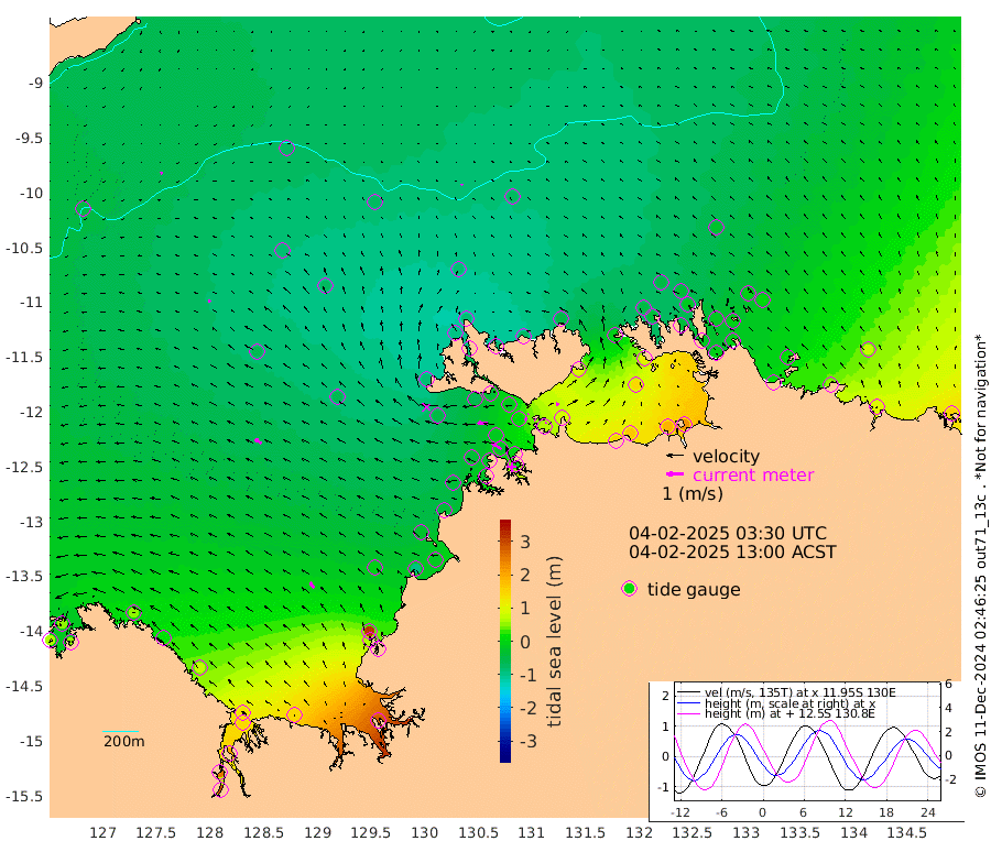 7cm/s -114T +4cm/s rms + 6cm/s 51T. Darwin_C1 52m 6cm/s 71T +4cm/s rms + 7cm/s -161T. Darwin_CW1 22m 16cm/s -109T +4cm/s rms + 8cm/s 61T. Darwin_CW2 34m 20cm/s 29T +3cm/s rms + 9cm/s 98T. Darwin_CW3 22m 5cm/s 116T +5cm/s rms + 7cm/s 88T. Darwin_C3 56m 5cm/s -126T +2cm/s rms + 9cm/s -126T. Darwin_CTbW 22m 8cm/s -22T +9cm/s rms + 2cm/s -110T. NWSLYN 196m 60cm/s -86T +1cm/s rms + 1cm/s -47T. DARBGF 30m 12cm/s -118T +7cm/s rms + 2cm/s -137T. ITFTIS 464m 14cm/s -56T +9cm/s rms + 1cm/s 74T. ITFMHB 146m 39cm/s -37T +4cm/s rms + 1cm/s -134T. ITFJBG 61m 43cm/s -56T +6cm/s rms + 4cm/s 121T. ITFFTB 108m 69cm/s -55T +4cm/s rms + 3cm/s 80T. NRSDAR 19m 52cm Carronade Island 62cm Guy Point 48cm Napier Broome Bay 53cm Lesueur Island 78cm Reveley Island 12cm Rocky Island 142cm Cape Domett 127cm Lacrosse Island 206cm Adolphus Island 253cm Pender Point 296cm Wyndham -62cm The Boxers -82cm Unnamed Shoal -71cm Loxton Shoal 136cm Pelican Island -79cm Calder Shoal -70cm Evans Shoal 271cm Quoin Island 57cm Port Keats 57cm Jones Point 313cm Catfish Island -8cm Cape Scott Offshore -97cm Cape Ford -18cm Anson Bay -80cm Goodrich Bank -30cm Peron Island North -38cm Point Jenny -43cm Native Point -41cm Fish Reef -30cm Tapa Bay -82cm Point Fawcett (Offshore) -24cm Burge Point -59cm Munkunuwa -55cm Beagle A -18cm Parsons Bank -21cm Fenton Patches -68cm Lynedoch Bank 11cm Hancox Shoal Area -1cm Nightcliff -5cm Darwin -26cm Charles Point Patches 57cm Glyde Point 147cm Chambers Bay 162cm Point Stuart 82cm Cape Hotham 136cm Christine Reef 187cm West Alligator Head 224cm East Field Island 102cm Two Hills Bay -59cm Newby Shoal 95cm Camp Point -44cm Medina Inlet South -95cm South Barlow Point -91cm St. Asaph Bay -86cm Cape Van Dieman -90cm Snake Bay -71cm Cache Point -54cm Echo Shoal -50cm Point Jahleel (Off) -6cm Cape Don -47cm Port Essington -45cm Smith Point - West -40cm NW Peacock Island -52cm North Of Jones Shoal -17cm Peacock Island -12cm Point David -41cm D'urville Point -32cm Money Shoal -4cm Copeland Island -7cm Cape Cockburn -17cm One Tree Point 10cm Hogmany Shoal -11cm New Year Island - West -6cm Grant Island 21cm Aurari Bay 53cm Cuthbert Point 17cm North Goulburn Island 69cm Paxie Shoal 97cm Entrance Island 149cm Yabooma Island