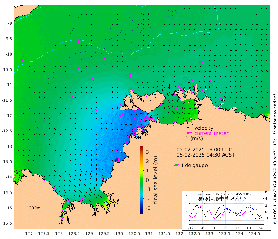 182cm/s -102T +4cm/s rms + 6cm/s 51T. Darwin_C1 52m 117cm/s -90T +4cm/s rms + 7cm/s -161T. Darwin_CW1 22m 107cm/s -106T +4cm/s rms + 8cm/s 61T. Darwin_CW2 34m 72cm/s -130T +3cm/s rms + 9cm/s 98T. Darwin_CW3 22m 149cm/s -91T +5cm/s rms + 7cm/s 88T. Darwin_C3 56m 108cm/s -115T +2cm/s rms + 9cm/s -126T. Darwin_CTbW 22m 5cm/s -83T +9cm/s rms + 2cm/s -110T. NWSLYN 196m 60cm/s -93T +1cm/s rms + 1cm/s -47T. DARBGF 30m 1cm/s 128T +7cm/s rms + 2cm/s -137T. ITFTIS 464m 13cm/s 2T +9cm/s rms + 1cm/s 74T. ITFMHB 146m 29cm/s -13T +4cm/s rms + 1cm/s -134T. ITFJBG 61m 21cm/s -32T +6cm/s rms + 4cm/s 121T. ITFFTB 108m 50cm/s -66T +4cm/s rms + 3cm/s 80T. NRSDAR 19m 32cm Carronade Island 31cm Guy Point 36cm Napier Broome Bay -59cm Lesueur Island -124cm Reveley Island -64cm Rocky Island -161cm Cape Domett -148cm Lacrosse Island -140cm Adolphus Island -39cm Pender Point -6cm Wyndham -83cm The Boxers -90cm Unnamed Shoal -36cm Loxton Shoal -188cm Pelican Island -83cm Calder Shoal -56cm Evans Shoal -136cm Quoin Island -214cm Port Keats -202cm Jones Point -81cm Catfish Island -196cm Cape Scott Offshore -264cm Cape Ford -217cm Anson Bay -71cm Goodrich Bank -215cm Peron Island North -209cm Point Jenny -207cm Native Point -220cm Fish Reef -224cm Tapa Bay -158cm Point Fawcett (Offshore) -230cm Burge Point -218cm Munkunuwa -192cm Beagle A -230cm Parsons Bank -220cm Fenton Patches -52cm Lynedoch Bank -217cm Hancox Shoal Area -227cm Nightcliff -241cm Darwin -236cm Charles Point Patches -153cm Glyde Point -83cm Chambers Bay -66cm Point Stuart -122cm Cape Hotham -79cm Christine Reef -62cm West Alligator Head -27cm East Field Island -91cm Two Hills Bay -151cm Newby Shoal -80cm Camp Point -225cm Medina Inlet South -143cm South Barlow Point -117cm St. Asaph Bay -77cm Cape Van Dieman -84cm Snake Bay -81cm Cache Point -8cm Echo Shoal -85cm Point Jahleel (Off) -105cm Cape Don -93cm Port Essington -98cm Smith Point - West -90cm NW Peacock Island -82cm North Of Jones Shoal -30cm Peacock Island -88cm Point David -97cm D'urville Point -75cm Money Shoal -87cm Copeland Island -120cm Cape Cockburn -91cm One Tree Point -107cm Hogmany Shoal -87cm New Year Island - West -93cm Grant Island -87cm Aurari Bay -94cm Cuthbert Point -98cm North Goulburn Island -80cm Paxie Shoal -87cm Entrance Island -76cm Yabooma Island