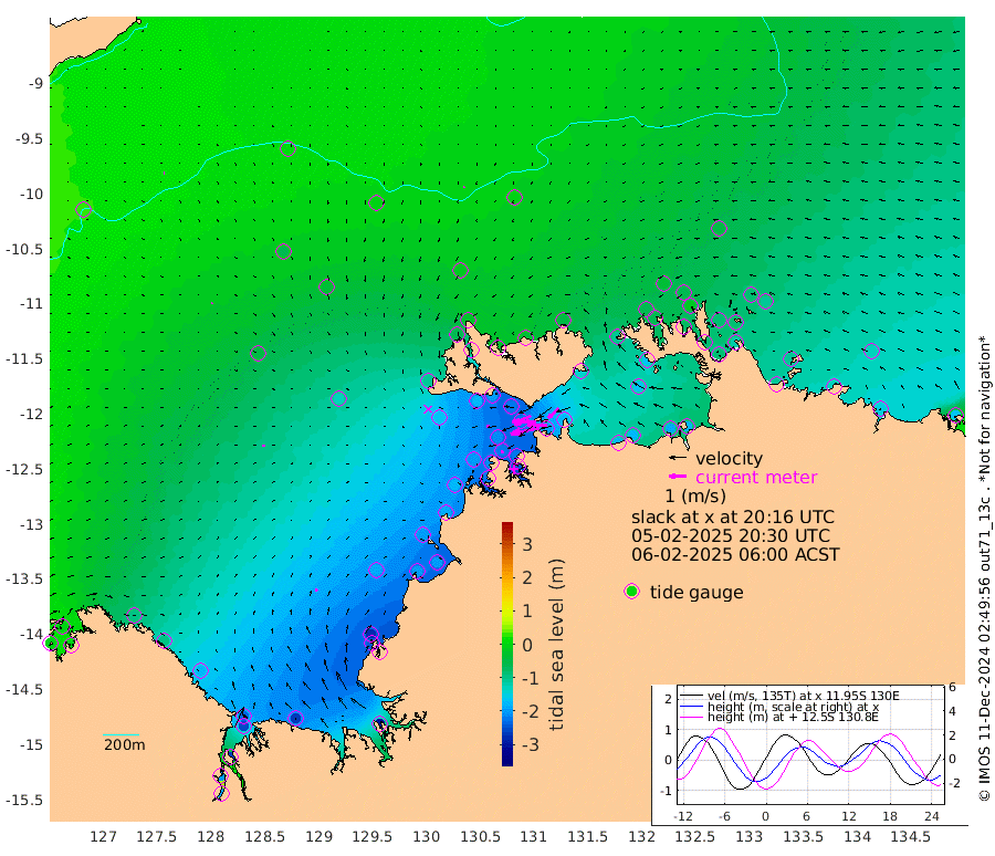 171cm/s -101T +4cm/s rms + 6cm/s 51T. Darwin_C1 52m 116cm/s -91T +4cm/s rms + 7cm/s -161T. Darwin_CW1 22m 87cm/s -105T +4cm/s rms + 8cm/s 61T. Darwin_CW2 34m 83cm/s -135T +3cm/s rms + 9cm/s 98T. Darwin_CW3 22m 141cm/s -91T +5cm/s rms + 7cm/s 88T. Darwin_C3 56m 103cm/s -115T +2cm/s rms + 9cm/s -126T. Darwin_CTbW 22m 6cm/s -165T +9cm/s rms + 2cm/s -110T. NWSLYN 196m 20cm/s -108T +1cm/s rms + 1cm/s -47T. DARBGF 30m 7cm/s 95T +7cm/s rms + 2cm/s -137T. ITFTIS 464m 7cm/s 69T +9cm/s rms + 1cm/s 74T. ITFMHB 146m 12cm/s 51T +4cm/s rms + 1cm/s -134T. ITFJBG 61m 11cm/s 91T +6cm/s rms + 4cm/s 121T. ITFFTB 108m 12cm/s -101T +4cm/s rms + 3cm/s 80T. NRSDAR 19m -9cm Carronade Island -9cm Guy Point -8cm Napier Broome Bay -99cm Lesueur Island -175cm Reveley Island -92cm Rocky Island -249cm Cape Domett -228cm Lacrosse Island -262cm Adolphus Island -201cm Pender Point -196cm Wyndham -51cm The Boxers -59cm Unnamed Shoal 10cm Loxton Shoal -264cm Pelican Island -36cm Calder Shoal -7cm Evans Shoal -295cm Quoin Island -248cm Port Keats -240cm Jones Point -274cm Catfish Island -185cm Cape Scott Offshore -200cm Cape Ford -201cm Anson Bay -21cm Goodrich Bank -192cm Peron Island North -184cm Point Jenny -180cm Native Point -195cm Fish Reef -203cm Tapa Bay -103cm Point Fawcett (Offshore) -219cm Burge Point -180cm Munkunuwa -161cm Beagle A -218cm Parsons Bank -212cm Fenton Patches -11cm Lynedoch Bank -218cm Hancox Shoal Area -223cm Nightcliff -238cm Darwin -216cm Charles Point Patches -193cm Glyde Point -175cm Chambers Bay -173cm Point Stuart -176cm Cape Hotham -165cm Christine Reef -185cm West Alligator Head -176cm East Field Island -159cm Two Hills Bay -125cm Newby Shoal -145cm Camp Point -197cm Medina Inlet South -83cm South Barlow Point -57cm St. Asaph Bay -23cm Cape Van Dieman -30cm Snake Bay -35cm Cache Point 27cm Echo Shoal -53cm Point Jahleel (Off) -101cm Cape Don -62cm Port Essington -66cm Smith Point - West -63cm NW Peacock Island -43cm North Of Jones Shoal -17cm Peacock Island -80cm Point David -69cm D'urville Point -53cm Money Shoal -83cm Copeland Island -115cm Cape Cockburn -80cm One Tree Point -110cm Hogmany Shoal -82cm New Year Island - West -90cm Grant Island -102cm Aurari Bay -128cm Cuthbert Point -107cm North Goulburn Island -124cm Paxie Shoal -148cm Entrance Island -164cm Yabooma Island