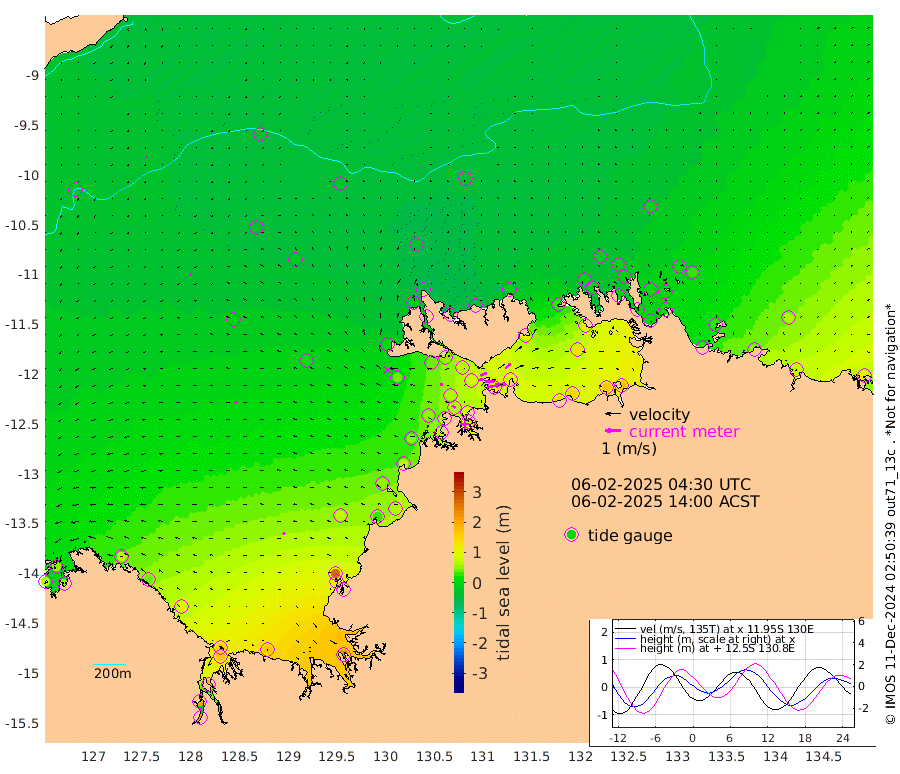 76cm/s 79T +4cm/s rms + 6cm/s 51T. Darwin_C1 52m 65cm/s 90T +4cm/s rms + 7cm/s -161T. Darwin_CW1 22m 28cm/s 73T +4cm/s rms + 8cm/s 61T. Darwin_CW2 34m 46cm/s 45T +3cm/s rms + 9cm/s 98T. Darwin_CW3 22m 56cm/s 91T +5cm/s rms + 7cm/s 88T. Darwin_C3 56m 45cm/s 66T +2cm/s rms + 9cm/s -126T. Darwin_CTbW 22m 4cm/s -5T +9cm/s rms + 2cm/s -110T. NWSLYN 196m 18cm/s -75T +1cm/s rms + 1cm/s -47T. DARBGF 30m 8cm/s -124T +7cm/s rms + 2cm/s -137T. ITFTIS 464m 8cm/s -123T +9cm/s rms + 1cm/s 74T. ITFMHB 146m 15cm/s -52T +4cm/s rms + 1cm/s -134T. ITFJBG 61m 18cm/s -69T +6cm/s rms + 4cm/s 121T. ITFFTB 108m 27cm/s -49T +4cm/s rms + 3cm/s 80T. NRSDAR 19m 52cm Carronade Island 60cm Guy Point 52cm Napier Broome Bay 68cm Lesueur Island 106cm Reveley Island 40cm Rocky Island 158cm Cape Domett 148cm Lacrosse Island 183cm Adolphus Island 196cm Pender Point 216cm Wyndham -9cm The Boxers -27cm Unnamed Shoal -37cm Loxton Shoal 158cm Pelican Island -21cm Calder Shoal -30cm Evans Shoal 228cm Quoin Island 115cm Port Keats 110cm Jones Point 263cm Catfish Island 68cm Cape Scott Offshore 32cm Cape Ford 66cm Anson Bay -36cm Goodrich Bank 54cm Peron Island North 57cm Point Jenny 51cm Native Point 54cm Fish Reef 62cm Tapa Bay 4cm Point Fawcett (Offshore) 70cm Burge Point 40cm Munkunuwa 37cm Beagle A 64cm Parsons Bank 67cm Fenton Patches -36cm Lynedoch Bank 81cm Hancox Shoal Area 82cm Nightcliff 75cm Darwin 59cm Charles Point Patches 93cm Glyde Point 135cm Chambers Bay 141cm Point Stuart 100cm Cape Hotham 130cm Christine Reef 160cm West Alligator Head 174cm East Field Island 105cm Two Hills Bay 20cm Newby Shoal 95cm Camp Point 49cm Medina Inlet South -20cm South Barlow Point -22cm St. Asaph Bay -37cm Cape Van Dieman -42cm Snake Bay -24cm Cache Point -31cm Echo Shoal -10cm Point Jahleel (Off) 29cm Cape Don -11cm Port Essington -7cm Smith Point - West -9cm NW Peacock Island -17cm North Of Jones Shoal -5cm Peacock Island 4cm Point David -8cm D'urville Point -10cm Money Shoal 9cm Copeland Island 15cm Cape Cockburn 4cm One Tree Point 23cm Hogmany Shoal 5cm New Year Island - West 10cm Grant Island 25cm Aurari Bay 50cm Cuthbert Point 26cm North Goulburn Island 61cm Paxie Shoal 76cm Entrance Island 106cm Yabooma Island