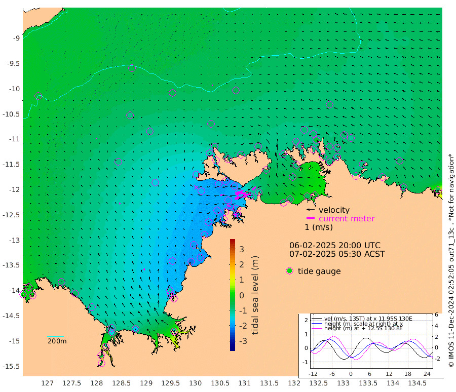 163cm/s -102T +4cm/s rms + 6cm/s 51T. Darwin_C1 52m 97cm/s -90T +4cm/s rms + 7cm/s -161T. Darwin_CW1 22m 91cm/s -106T +4cm/s rms + 8cm/s 61T. Darwin_CW2 34m 63cm/s -130T +3cm/s rms + 9cm/s 98T. Darwin_CW3 22m 131cm/s -91T +5cm/s rms + 7cm/s 88T. Darwin_C3 56m 100cm/s -115T +2cm/s rms + 9cm/s -126T. Darwin_CTbW 22m 6cm/s -73T +9cm/s rms + 2cm/s -110T. NWSLYN 196m 52cm/s -94T +1cm/s rms + 1cm/s -47T. DARBGF 30m 1cm/s 177T +7cm/s rms + 2cm/s -137T. ITFTIS 464m 13cm/s -3T +9cm/s rms + 1cm/s 74T. ITFMHB 146m 22cm/s -12T +4cm/s rms + 1cm/s -134T. ITFJBG 61m 18cm/s -36T +6cm/s rms + 4cm/s 121T. ITFFTB 108m 44cm/s -66T +4cm/s rms + 3cm/s 80T. NRSDAR 19m -7cm Carronade Island -9cm Guy Point -9cm Napier Broome Bay -77cm Lesueur Island -122cm Reveley Island -70cm Rocky Island -154cm Cape Domett -144cm Lacrosse Island -136cm Adolphus Island -58cm Pender Point -36cm Wyndham -91cm The Boxers -93cm Unnamed Shoal -51cm Loxton Shoal -171cm Pelican Island -90cm Calder Shoal -65cm Evans Shoal -137cm Quoin Island -190cm Port Keats -177cm Jones Point -117cm Catfish Island -180cm Cape Scott Offshore -224cm Cape Ford -196cm Anson Bay -74cm Goodrich Bank -195cm Peron Island North -188cm Point Jenny -185cm Native Point -197cm Fish Reef -199cm Tapa Bay -150cm Point Fawcett (Offshore) -202cm Burge Point -190cm Munkunuwa -173cm Beagle A -201cm Parsons Bank -193cm Fenton Patches -59cm Lynedoch Bank -191cm Hancox Shoal Area -200cm Nightcliff -212cm Darwin -209cm Charles Point Patches -141cm Glyde Point -86cm Chambers Bay -72cm Point Stuart -115cm Cape Hotham -83cm Christine Reef -70cm West Alligator Head -41cm East Field Island -94cm Two Hills Bay -148cm Newby Shoal -80cm Camp Point -200cm Medina Inlet South -133cm South Barlow Point -113cm St. Asaph Bay -79cm Cape Van Dieman -85cm Snake Bay -85cm Cache Point -29cm Echo Shoal -86cm Point Jahleel (Off) -104cm Cape Don -92cm Port Essington -96cm Smith Point - West -90cm NW Peacock Island -85cm North Of Jones Shoal -30cm Peacock Island -84cm Point David -95cm D'urville Point -76cm Money Shoal -83cm Copeland Island -117cm Cape Cockburn -90cm One Tree Point -104cm Hogmany Shoal -86cm New Year Island - West -90cm Grant Island -82cm Aurari Bay -90cm Cuthbert Point -93cm North Goulburn Island -79cm Paxie Shoal -81cm Entrance Island -69cm Yabooma Island