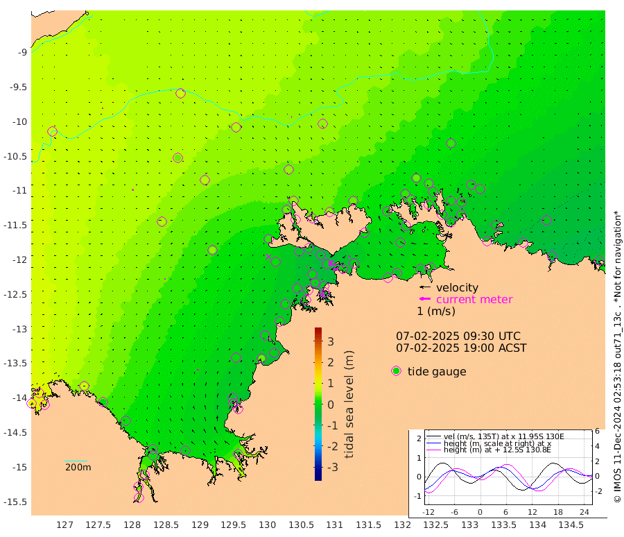 59cm/s -102T +4cm/s rms + 6cm/s 51T. Darwin_C1 52m 12cm/s -83T +4cm/s rms + 7cm/s -161T. Darwin_CW1 22m 28cm/s -109T +4cm/s rms + 8cm/s 61T. Darwin_CW2 34m 17cm/s -118T +3cm/s rms + 9cm/s 98T. Darwin_CW3 22m 30cm/s -93T +5cm/s rms + 7cm/s 88T. Darwin_C3 56m 41cm/s -116T +2cm/s rms + 9cm/s -126T. Darwin_CTbW 22m 4cm/s 94T +9cm/s rms + 2cm/s -110T. NWSLYN 196m 8cm/s -91T +1cm/s rms + 1cm/s -47T. DARBGF 30m 8cm/s 33T +7cm/s rms + 2cm/s -137T. ITFTIS 464m 10cm/s 43T +9cm/s rms + 1cm/s 74T. ITFMHB 146m 12cm/s 4T +4cm/s rms + 1cm/s -134T. ITFJBG 61m 10cm/s 29T +6cm/s rms + 4cm/s 121T. ITFFTB 108m 8cm/s -80T +4cm/s rms + 3cm/s 80T. NRSDAR 19m 102cm Carronade Island 108cm Guy Point 103cm Napier Broome Bay 80cm Lesueur Island 20cm Reveley Island 2cm Rocky Island 14cm Cape Domett 21cm Lacrosse Island 25cm Adolphus Island 43cm Pender Point 56cm Wyndham 61cm The Boxers 34cm Unnamed Shoal 80cm Loxton Shoal -7cm Pelican Island 66cm Calder Shoal 59cm Evans Shoal 8cm Quoin Island 2cm Port Keats -15cm Jones Point -18cm Catfish Island 3cm Cape Scott Offshore 37cm Cape Ford -6cm Anson Bay 51cm Goodrich Bank -3cm Peron Island North 2cm Point Jenny 3cm Native Point -5cm Fish Reef -4cm Tapa Bay 28cm Point Fawcett (Offshore) -3cm Burge Point -17cm Munkunuwa 19cm Beagle A -23cm Parsons Bank 2cm Fenton Patches 53cm Lynedoch Bank -15cm Hancox Shoal Area -8cm Nightcliff -12cm Darwin 4cm Charles Point Patches -6cm Glyde Point -1cm Chambers Bay -13cm Point Stuart -8cm Cape Hotham 3cm Christine Reef -16cm West Alligator Head -4cm East Field Island -8cm Two Hills Bay 53cm Newby Shoal 12cm Camp Point -5cm Medina Inlet South 29cm South Barlow Point 42cm St. Asaph Bay 47cm Cape Van Dieman 44cm Snake Bay 47cm Cache Point 90cm Echo Shoal 36cm Point Jahleel (Off) 13cm Cape Don 25cm Port Essington 23cm Smith Point - West 23cm NW Peacock Island 37cm North Of Jones Shoal 11cm Peacock Island 2cm Point David 17cm D'urville Point 29cm Money Shoal -1cm Copeland Island 2cm Cape Cockburn 8cm One Tree Point 1cm Hogmany Shoal 11cm New Year Island - West 4cm Grant Island -12cm Aurari Bay -21cm Cuthbert Point -8cm North Goulburn Island -19cm Paxie Shoal -34cm Entrance Island -48cm Yabooma Island