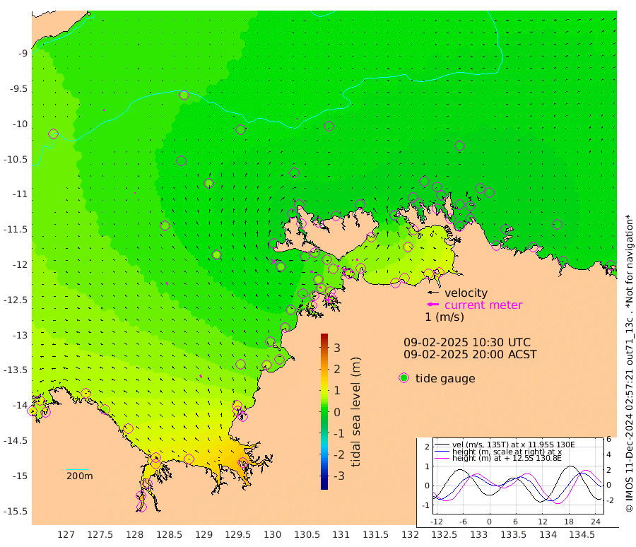 21cm/s -103T +4cm/s rms + 6cm/s 51T. Darwin_C1 52m 25cm/s 86T +4cm/s rms + 7cm/s -161T. Darwin_CW1 22m 2cm/s 175T +4cm/s rms + 8cm/s 61T. Darwin_CW2 34m 15cm/s 18T +3cm/s rms + 9cm/s 98T. Darwin_CW3 22m 27cm/s 94T +5cm/s rms + 7cm/s 88T. Darwin_C3 56m 21cm/s -118T +2cm/s rms + 9cm/s -126T. Darwin_CTbW 22m 5cm/s 46T +9cm/s rms + 2cm/s -110T. NWSLYN 196m 24cm/s -80T +1cm/s rms + 1cm/s -47T. DARBGF 30m 7cm/s -5T +7cm/s rms + 2cm/s -137T. ITFTIS 464m 11cm/s 1T +9cm/s rms + 1cm/s 74T. ITFMHB 146m 24cm/s -29T +4cm/s rms + 1cm/s -134T. ITFJBG 61m 23cm/s -36T +6cm/s rms + 4cm/s 121T. ITFFTB 108m 27cm/s -54T +4cm/s rms + 3cm/s 80T. NRSDAR 19m 99cm Carronade Island 109cm Guy Point 104cm Napier Broome Bay 106cm Lesueur Island 100cm Reveley Island 46cm Rocky Island 141cm Cape Domett 130cm Lacrosse Island 166cm Adolphus Island 201cm Pender Point 213cm Wyndham 43cm The Boxers 17cm Unnamed Shoal 44cm Loxton Shoal 116cm Pelican Island 40cm Calder Shoal 25cm Evans Shoal 188cm Quoin Island 98cm Port Keats 81cm Jones Point 122cm Catfish Island 51cm Cape Scott Offshore 70cm Cape Ford 44cm Anson Bay 18cm Goodrich Bank 37cm Peron Island North 37cm Point Jenny 37cm Native Point 33cm Fish Reef 43cm Tapa Bay 20cm Point Fawcett (Offshore) 56cm Burge Point 26cm Munkunuwa 36cm Beagle A 37cm Parsons Bank 51cm Fenton Patches 22cm Lynedoch Bank 48cm Hancox Shoal Area 53cm Nightcliff 58cm Darwin 56cm Charles Point Patches 62cm Glyde Point 84cm Chambers Bay 78cm Point Stuart 60cm Cape Hotham 80cm Christine Reef 86cm West Alligator Head 105cm East Field Island 58cm Two Hills Bay 54cm Newby Shoal 75cm Camp Point 41cm Medina Inlet South 14cm South Barlow Point 17cm St. Asaph Bay 12cm Cape Van Dieman 12cm Snake Bay 16cm Cache Point 48cm Echo Shoal 18cm Point Jahleel (Off) 25cm Cape Don 9cm Port Essington 4cm Smith Point - West 5cm NW Peacock Island 11cm North Of Jones Shoal 2cm Peacock Island 0cm Point David 0cm D'urville Point 12cm Money Shoal -1cm Copeland Island 2cm Cape Cockburn 5cm One Tree Point 8cm Hogmany Shoal 8cm New Year Island - West 6cm Grant Island -2cm Aurari Bay 4cm Cuthbert Point 5cm North Goulburn Island 21cm Paxie Shoal 16cm Entrance Island 20cm Yabooma Island