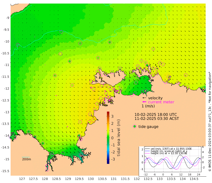 85cm/s 78T +4cm/s rms + 6cm/s 51T. Darwin_C1 52m 46cm/s 82T +4cm/s rms + 7cm/s -161T. Darwin_CW1 22m 23cm/s 79T +4cm/s rms + 8cm/s 61T. Darwin_CW2 34m 26cm/s 54T +3cm/s rms + 9cm/s 98T. Darwin_CW3 22m 20cm/s 88T +5cm/s rms + 7cm/s 88T. Darwin_C3 56m 54cm/s 63T +2cm/s rms + 9cm/s -126T. Darwin_CTbW 22m 7cm/s 141T +9cm/s rms + 2cm/s -110T. NWSLYN 196m 38cm/s 93T +1cm/s rms + 1cm/s -47T. DARBGF 30m 6cm/s 12T +7cm/s rms + 2cm/s -137T. ITFTIS 464m 5cm/s 60T +9cm/s rms + 1cm/s 74T. ITFMHB 146m 25cm/s 147T +4cm/s rms + 1cm/s -134T. ITFJBG 61m 20cm/s 123T +6cm/s rms + 4cm/s 121T. ITFFTB 108m 37cm/s 121T +4cm/s rms + 3cm/s 80T. NRSDAR 19m -35cm Carronade Island -44cm Guy Point -35cm Napier Broome Bay -1cm Lesueur Island 3cm Reveley Island -26cm Rocky Island -9cm Cape Domett -1cm Lacrosse Island -43cm Adolphus Island -96cm Pender Point -107cm Wyndham 41cm The Boxers 74cm Unnamed Shoal 5cm Loxton Shoal 14cm Pelican Island 33cm Calder Shoal 23cm Evans Shoal -54cm Quoin Island 47cm Port Keats 54cm Jones Point 12cm Catfish Island 72cm Cape Scott Offshore 89cm Cape Ford 91cm Anson Bay 41cm Goodrich Bank 88cm Peron Island North 88cm Point Jenny 87cm Native Point 95cm Fish Reef 89cm Tapa Bay 80cm Point Fawcett (Offshore) 87cm Burge Point 81cm Munkunuwa 83cm Beagle A 90cm Parsons Bank 84cm Fenton Patches 32cm Lynedoch Bank 79cm Hancox Shoal Area 83cm Nightcliff 90cm Darwin 94cm Charles Point Patches 53cm Glyde Point 9cm Chambers Bay 8cm Point Stuart 41cm Cape Hotham 7cm Christine Reef -2cm West Alligator Head -23cm East Field Island 29cm Two Hills Bay 66cm Newby Shoal 22cm Camp Point 89cm Medina Inlet South 72cm South Barlow Point 58cm St. Asaph Bay 48cm Cape Van Dieman 53cm Snake Bay 50cm Cache Point -6cm Echo Shoal 48cm Point Jahleel (Off) 59cm Cape Don 64cm Port Essington 63cm Smith Point - West 64cm NW Peacock Island 57cm North Of Jones Shoal 22cm Peacock Island 77cm Point David 70cm D'urville Point 64cm Money Shoal 77cm Copeland Island 101cm Cape Cockburn 76cm One Tree Point 90cm Hogmany Shoal 75cm New Year Island - West 76cm Grant Island 83cm Aurari Bay 85cm Cuthbert Point 83cm North Goulburn Island 79cm Paxie Shoal 74cm Entrance Island 75cm Yabooma Island