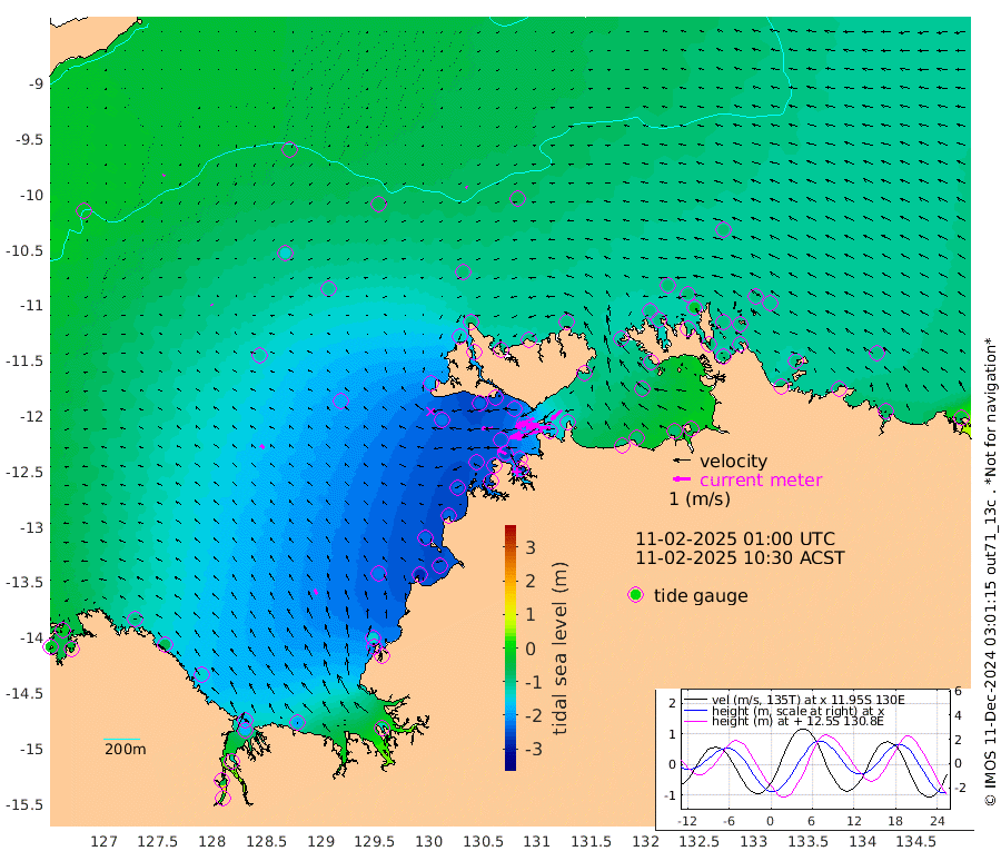 194cm/s -102T +4cm/s rms + 6cm/s 51T. Darwin_C1 52m 142cm/s -89T +4cm/s rms + 7cm/s -161T. Darwin_CW1 22m 98cm/s -107T +4cm/s rms + 8cm/s 61T. Darwin_CW2 34m 81cm/s -131T +3cm/s rms + 9cm/s 98T. Darwin_CW3 22m 133cm/s -90T +5cm/s rms + 7cm/s 88T. Darwin_C3 56m 114cm/s -115T +2cm/s rms + 9cm/s -126T. Darwin_CTbW 22m 9cm/s -61T +9cm/s rms + 2cm/s -110T. NWSLYN 196m 66cm/s -92T +1cm/s rms + 1cm/s -47T. DARBGF 30m 10cm/s -161T +7cm/s rms + 2cm/s -137T. ITFTIS 464m 7cm/s -48T +9cm/s rms + 1cm/s 74T. ITFMHB 146m 30cm/s -26T +4cm/s rms + 1cm/s -134T. ITFJBG 61m 25cm/s -53T +6cm/s rms + 4cm/s 121T. ITFFTB 108m 55cm/s -62T +4cm/s rms + 3cm/s 80T. NRSDAR 19m -20cm Carronade Island -16cm Guy Point -28cm Napier Broome Bay -100cm Lesueur Island -141cm Reveley Island -67cm Rocky Island -170cm Cape Domett -170cm Lacrosse Island -123cm Adolphus Island -54cm Pender Point -27cm Wyndham -116cm The Boxers -138cm Unnamed Shoal -50cm Loxton Shoal -187cm Pelican Island -105cm Calder Shoal -62cm Evans Shoal -127cm Quoin Island -225cm Port Keats -219cm Jones Point -143cm Catfish Island -217cm Cape Scott Offshore -274cm Cape Ford -242cm Anson Bay -80cm Goodrich Bank -226cm Peron Island North -232cm Point Jenny -230cm Native Point -242cm Fish Reef -244cm Tapa Bay -181cm Point Fawcett (Offshore) -250cm Burge Point -228cm Munkunuwa -216cm Beagle A -232cm Parsons Bank -240cm Fenton Patches -62cm Lynedoch Bank -220cm Hancox Shoal Area -242cm Nightcliff -252cm Darwin -250cm Charles Point Patches -169cm Glyde Point -97cm Chambers Bay -85cm Point Stuart -135cm Cape Hotham -91cm Christine Reef -81cm West Alligator Head -50cm East Field Island -104cm Two Hills Bay -182cm Newby Shoal -102cm Camp Point -241cm Medina Inlet South -153cm South Barlow Point -131cm St. Asaph Bay -88cm Cape Van Dieman -94cm Snake Bay -92cm Cache Point -28cm Echo Shoal -92cm Point Jahleel (Off) -115cm Cape Don -96cm Port Essington -94cm Smith Point - West -87cm NW Peacock Island -85cm North Of Jones Shoal -31cm Peacock Island -87cm Point David -92cm D'urville Point -80cm Money Shoal -83cm Copeland Island -116cm Cape Cockburn -92cm One Tree Point -103cm Hogmany Shoal -91cm New Year Island - West -91cm Grant Island -88cm Aurari Bay -89cm Cuthbert Point -94cm North Goulburn Island -92cm Paxie Shoal -78cm Entrance Island -62cm Yabooma Island