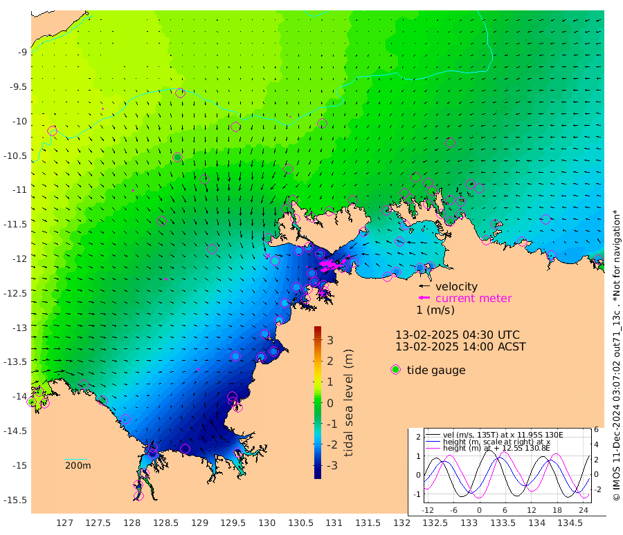 159cm/s -101T +4cm/s rms + 6cm/s 51T. Darwin_C1 52m 135cm/s -92T +4cm/s rms + 7cm/s -161T. Darwin_CW1 22m 86cm/s -106T +4cm/s rms + 8cm/s 61T. Darwin_CW2 34m 100cm/s -136T +3cm/s rms + 9cm/s 98T. Darwin_CW3 22m 154cm/s -91T +5cm/s rms + 7cm/s 88T. Darwin_C3 56m 76cm/s -116T +2cm/s rms + 9cm/s -126T. Darwin_CTbW 22m 5cm/s -139T +9cm/s rms + 2cm/s -110T. NWSLYN 196m 9cm/s 178T +1cm/s rms + 1cm/s -47T. DARBGF 30m 11cm/s 132T +7cm/s rms + 2cm/s -137T. ITFTIS 464m 17cm/s 149T +9cm/s rms + 1cm/s 74T. ITFMHB 146m 16cm/s 93T +4cm/s rms + 1cm/s -134T. ITFJBG 61m 28cm/s 121T +6cm/s rms + 4cm/s 121T. ITFFTB 108m 15cm/s 162T +4cm/s rms + 3cm/s 80T. NRSDAR 19m 43cm Carronade Island 42cm Guy Point 40cm Napier Broome Bay -78cm Lesueur Island -197cm Reveley Island -72cm Rocky Island -301cm Cape Domett -269cm Lacrosse Island -308cm Adolphus Island -278cm Pender Point -260cm Wyndham -16cm The Boxers -40cm Unnamed Shoal 56cm Loxton Shoal -319cm Pelican Island 8cm Calder Shoal 40cm Evans Shoal -386cm Quoin Island -293cm Port Keats -296cm Jones Point -329cm Catfish Island -197cm Cape Scott Offshore -213cm Cape Ford -221cm Anson Bay 20cm Goodrich Bank -193cm Peron Island North -177cm Point Jenny -175cm Native Point -199cm Fish Reef -213cm Tapa Bay -76cm Point Fawcett (Offshore) -237cm Burge Point -195cm Munkunuwa -139cm Beagle A -235cm Parsons Bank -214cm Fenton Patches 25cm Lynedoch Bank -234cm Hancox Shoal Area -234cm Nightcliff -271cm Darwin -239cm Charles Point Patches -215cm Glyde Point -199cm Chambers Bay -204cm Point Stuart -196cm Cape Hotham -172cm Christine Reef -219cm West Alligator Head -216cm East Field Island -170cm Two Hills Bay -80cm Newby Shoal -170cm Camp Point -212cm Medina Inlet South -53cm South Barlow Point -20cm St. Asaph Bay 17cm Cape Van Dieman 7cm Snake Bay 9cm Cache Point 79cm Echo Shoal -16cm Point Jahleel (Off) -84cm Cape Don -32cm Port Essington -23cm Smith Point - West -23cm NW Peacock Island -5cm North Of Jones Shoal -5cm Peacock Island -63cm Point David -29cm D'urville Point -27cm Money Shoal -66cm Copeland Island -86cm Cape Cockburn -60cm One Tree Point -90cm Hogmany Shoal -61cm New Year Island - West -68cm Grant Island -91cm Aurari Bay -118cm Cuthbert Point -97cm North Goulburn Island -145cm Paxie Shoal -159cm Entrance Island -192cm Yabooma Island