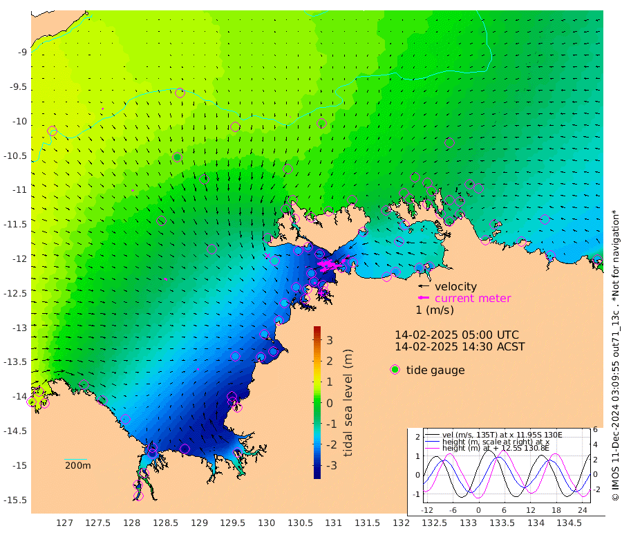 161cm/s -101T +4cm/s rms + 6cm/s 51T. Darwin_C1 52m 136cm/s -92T +4cm/s rms + 7cm/s -161T. Darwin_CW1 22m 91cm/s -106T +4cm/s rms + 8cm/s 61T. Darwin_CW2 34m 97cm/s -136T +3cm/s rms + 9cm/s 98T. Darwin_CW3 22m 165cm/s -91T +5cm/s rms + 7cm/s 88T. Darwin_C3 56m 77cm/s -116T +2cm/s rms + 9cm/s -126T. Darwin_CTbW 22m 4cm/s -147T +9cm/s rms + 2cm/s -110T. NWSLYN 196m 9cm/s -171T +1cm/s rms + 1cm/s -47T. DARBGF 30m 11cm/s 124T +7cm/s rms + 2cm/s -137T. ITFTIS 464m 16cm/s 142T +9cm/s rms + 1cm/s 74T. ITFMHB 146m 17cm/s 89T +4cm/s rms + 1cm/s -134T. ITFJBG 61m 28cm/s 117T +6cm/s rms + 4cm/s 121T. ITFFTB 108m 15cm/s 169T +4cm/s rms + 3cm/s 80T. NRSDAR 19m 63cm Carronade Island 61cm Guy Point 60cm Napier Broome Bay -62cm Lesueur Island -189cm Reveley Island -74cm Rocky Island -292cm Cape Domett -259cm Lacrosse Island -300cm Adolphus Island -267cm Pender Point -246cm Wyndham -6cm The Boxers -32cm Unnamed Shoal 63cm Loxton Shoal -315cm Pelican Island 18cm Calder Shoal 46cm Evans Shoal -383cm Quoin Island -285cm Port Keats -290cm Jones Point -329cm Catfish Island -193cm Cape Scott Offshore -193cm Cape Ford -218cm Anson Bay 27cm Goodrich Bank -188cm Peron Island North -169cm Point Jenny -168cm Native Point -192cm Fish Reef -207cm Tapa Bay -70cm Point Fawcett (Offshore) -227cm Burge Point -192cm Munkunuwa -129cm Beagle A -230cm Parsons Bank -205cm Fenton Patches 31cm Lynedoch Bank -229cm Hancox Shoal Area -228cm Nightcliff -266cm Darwin -233cm Charles Point Patches -207cm Glyde Point -191cm Chambers Bay -195cm Point Stuart -188cm Cape Hotham -162cm Christine Reef -210cm West Alligator Head -204cm East Field Island -163cm Two Hills Bay -65cm Newby Shoal -160cm Camp Point -207cm Medina Inlet South -48cm South Barlow Point -14cm St. Asaph Bay 23cm Cape Van Dieman 12cm Snake Bay 17cm Cache Point 88cm Echo Shoal -10cm Point Jahleel (Off) -78cm Cape Don -26cm Port Essington -18cm Smith Point - West -18cm NW Peacock Island 1cm North Of Jones Shoal -3cm Peacock Island -58cm Point David -24cm D'urville Point -20cm Money Shoal -61cm Copeland Island -78cm Cape Cockburn -55cm One Tree Point -83cm Hogmany Shoal -54cm New Year Island - West -62cm Grant Island -86cm Aurari Bay -112cm Cuthbert Point -90cm North Goulburn Island -138cm Paxie Shoal -152cm Entrance Island -185cm Yabooma Island