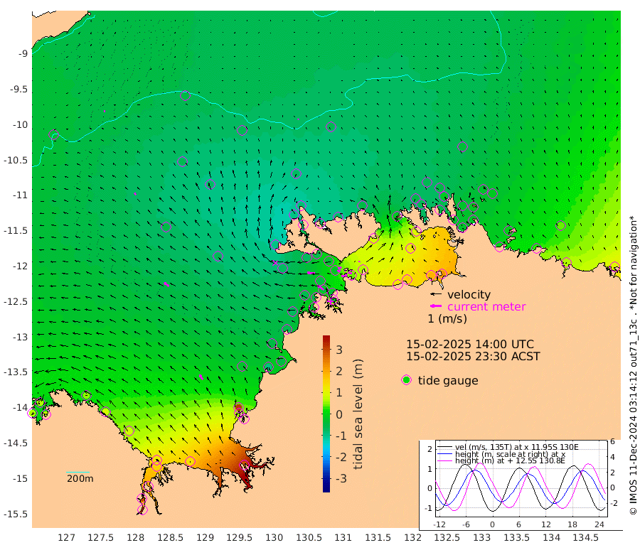 51cm/s -103T +4cm/s rms + 6cm/s 51T. Darwin_C1 52m 28cm/s -87T +4cm/s rms + 7cm/s -161T. Darwin_CW1 22m 27cm/s -113T +4cm/s rms + 8cm/s 61T. Darwin_CW2 34m 9cm/s -14T +3cm/s rms + 9cm/s 98T. Darwin_CW3 22m 4cm/s 178T +5cm/s rms + 7cm/s 88T. Darwin_C3 56m 36cm/s -117T +2cm/s rms + 9cm/s -126T. Darwin_CTbW 22m 9cm/s -31T +9cm/s rms + 2cm/s -110T. NWSLYN 196m 70cm/s -85T +1cm/s rms + 1cm/s -47T. DARBGF 30m 9cm/s -94T +7cm/s rms + 2cm/s -137T. ITFTIS 464m 20cm/s -31T +9cm/s rms + 1cm/s 74T. ITFMHB 146m 51cm/s -34T +4cm/s rms + 1cm/s -134T. ITFJBG 61m 53cm/s -52T +6cm/s rms + 4cm/s 121T. ITFFTB 108m 73cm/s -54T +4cm/s rms + 3cm/s 80T. NRSDAR 19m 62cm Carronade Island 65cm Guy Point 73cm Napier Broome Bay 54cm Lesueur Island 82cm Reveley Island 80cm Rocky Island 150cm Cape Domett 123cm Lacrosse Island 211cm Adolphus Island 299cm Pender Point 334cm Wyndham -48cm The Boxers -67cm Unnamed Shoal -50cm Loxton Shoal 124cm Pelican Island -70cm Calder Shoal -62cm Evans Shoal 282cm Quoin Island 43cm Port Keats 55cm Jones Point 307cm Catfish Island -33cm Cape Scott Offshore -91cm Cape Ford -50cm Anson Bay -75cm Goodrich Bank -49cm Peron Island North -67cm Point Jenny -69cm Native Point -58cm Fish Reef -59cm Tapa Bay -95cm Point Fawcett (Offshore) -41cm Burge Point -71cm Munkunuwa -78cm Beagle A -37cm Parsons Bank -46cm Fenton Patches -57cm Lynedoch Bank -23cm Hancox Shoal Area -44cm Nightcliff -20cm Darwin -44cm Charles Point Patches 45cm Glyde Point 129cm Chambers Bay 156cm Point Stuart 67cm Cape Hotham 113cm Christine Reef 182cm West Alligator Head 223cm East Field Island 94cm Two Hills Bay -62cm Newby Shoal 85cm Camp Point -56cm Medina Inlet South -99cm South Barlow Point -98cm St. Asaph Bay -83cm Cape Van Dieman -82cm Snake Bay -72cm Cache Point -39cm Echo Shoal -55cm Point Jahleel (Off) -14cm Cape Don -51cm Port Essington -58cm Smith Point - West -52cm NW Peacock Island -63cm North Of Jones Shoal -22cm Peacock Island -31cm Point David -55cm D'urville Point -44cm Money Shoal -27cm Copeland Island -32cm Cape Cockburn -31cm One Tree Point -15cm Hogmany Shoal -27cm New Year Island - West -22cm Grant Island -8cm Aurari Bay 24cm Cuthbert Point -7cm North Goulburn Island 40cm Paxie Shoal 63cm Entrance Island 95cm Yabooma Island