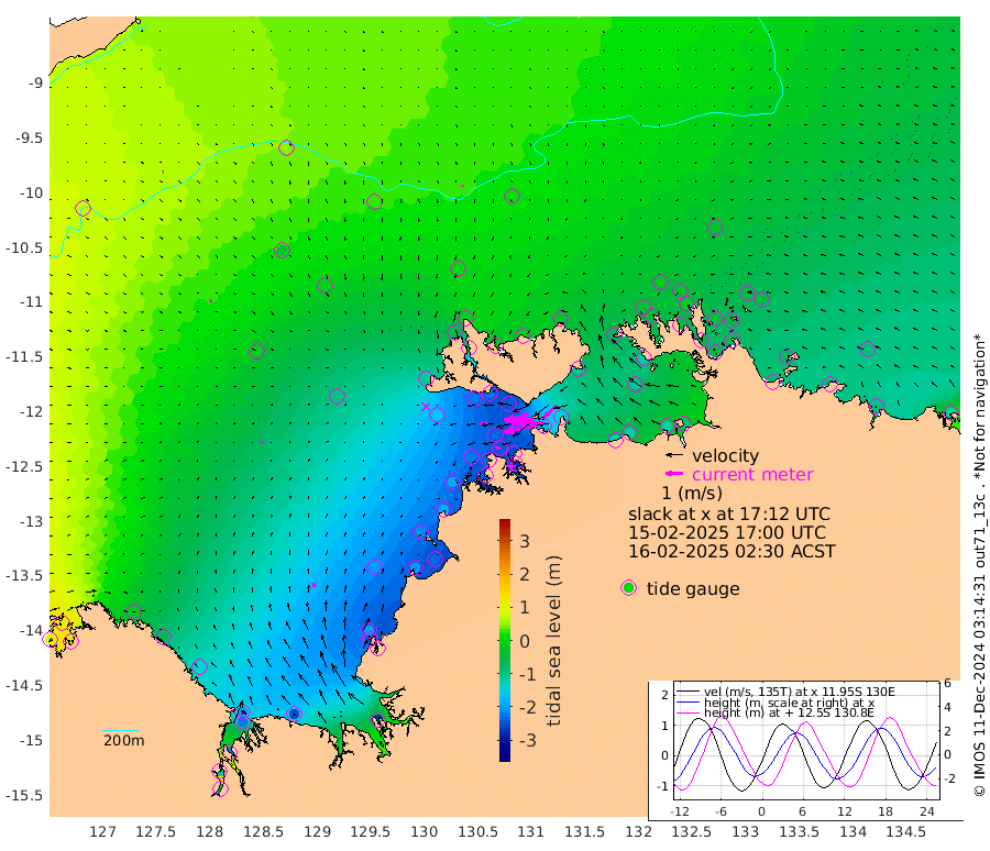 197cm/s -101T +4cm/s rms + 6cm/s 51T. Darwin_C1 52m 164cm/s -91T +4cm/s rms + 7cm/s -161T. Darwin_CW1 22m 113cm/s -106T +4cm/s rms + 8cm/s 61T. Darwin_CW2 34m 91cm/s -135T +3cm/s rms + 9cm/s 98T. Darwin_CW3 22m 176cm/s -91T +5cm/s rms + 7cm/s 88T. Darwin_C3 56m 108cm/s -115T +2cm/s rms + 9cm/s -126T. Darwin_CTbW 22m 8cm/s 173T +9cm/s rms + 2cm/s -110T. NWSLYN 196m 43cm/s -97T +1cm/s rms + 1cm/s -47T. DARBGF 30m 6cm/s 70T +7cm/s rms + 2cm/s -137T. ITFTIS 464m 10cm/s 49T +9cm/s rms + 1cm/s 74T. ITFMHB 146m 24cm/s 5T +4cm/s rms + 1cm/s -134T. ITFJBG 61m 11cm/s 38T +6cm/s rms + 4cm/s 121T. ITFFTB 108m 34cm/s -74T +4cm/s rms + 3cm/s 80T. NRSDAR 19m 109cm Carronade Island 112cm Guy Point 117cm Napier Broome Bay -20cm Lesueur Island -135cm Reveley Island -60cm Rocky Island -216cm Cape Domett -195cm Lacrosse Island -218cm Adolphus Island -109cm Pender Point -78cm Wyndham -11cm The Boxers -29cm Unnamed Shoal 52cm Loxton Shoal -251cm Pelican Island -4cm Calder Shoal 25cm Evans Shoal -262cm Quoin Island -260cm Port Keats -249cm Jones Point -193cm Catfish Island -199cm Cape Scott Offshore -199cm Cape Ford -228cm Anson Bay 5cm Goodrich Bank -207cm Peron Island North -191cm Point Jenny -188cm Native Point -216cm Fish Reef -220cm Tapa Bay -102cm Point Fawcett (Offshore) -238cm Burge Point -216cm Munkunuwa -167cm Beagle A -240cm Parsons Bank -228cm Fenton Patches 16cm Lynedoch Bank -232cm Hancox Shoal Area -249cm Nightcliff -265cm Darwin -238cm Charles Point Patches -179cm Glyde Point -128cm Chambers Bay -117cm Point Stuart -151cm Cape Hotham -111cm Christine Reef -123cm West Alligator Head -99cm East Field Island -116cm Two Hills Bay -94cm Newby Shoal -107cm Camp Point -225cm Medina Inlet South -87cm South Barlow Point -51cm St. Asaph Bay -1cm Cape Van Dieman -11cm Snake Bay -6cm Cache Point 77cm Echo Shoal -26cm Point Jahleel (Off) -75cm Cape Don -37cm Port Essington -40cm Smith Point - West -33cm NW Peacock Island -21cm North Of Jones Shoal -10cm Peacock Island -50cm Point David -42cm D'urville Point -24cm Money Shoal -54cm Copeland Island -77cm Cape Cockburn -52cm One Tree Point -55cm Hogmany Shoal -48cm New Year Island - West -53cm Grant Island -76cm Aurari Bay -84cm Cuthbert Point -75cm North Goulburn Island -85cm Paxie Shoal -100cm Entrance Island -118cm Yabooma Island