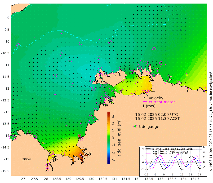 34cm/s -106T +4cm/s rms + 6cm/s 51T. Darwin_C1 52m 14cm/s -79T +4cm/s rms + 7cm/s -161T. Darwin_CW1 22m 26cm/s -110T +4cm/s rms + 8cm/s 61T. Darwin_CW2 34m 9cm/s -9T +3cm/s rms + 9cm/s 98T. Darwin_CW3 22m 6cm/s -113T +5cm/s rms + 7cm/s 88T. Darwin_C3 56m 27cm/s -118T +2cm/s rms + 9cm/s -126T. Darwin_CTbW 22m 9cm/s -28T +9cm/s rms + 2cm/s -110T. NWSLYN 196m 64cm/s -86T +1cm/s rms + 1cm/s -47T. DARBGF 30m 13cm/s -121T +7cm/s rms + 2cm/s -137T. ITFTIS 464m 16cm/s -54T +9cm/s rms + 1cm/s 74T. ITFMHB 146m 42cm/s -37T +4cm/s rms + 1cm/s -134T. ITFJBG 61m 47cm/s -57T +6cm/s rms + 4cm/s 121T. ITFFTB 108m 72cm/s -55T +4cm/s rms + 3cm/s 80T. NRSDAR 19m 16cm Carronade Island 21cm Guy Point 12cm Napier Broome Bay 17cm Lesueur Island 50cm Reveley Island -1cm Rocky Island 110cm Cape Domett 95cm Lacrosse Island 169cm Adolphus Island 228cm Pender Point 266cm Wyndham -87cm The Boxers -99cm Unnamed Shoal -84cm Loxton Shoal 100cm Pelican Island -98cm Calder Shoal -80cm Evans Shoal 251cm Quoin Island 20cm Port Keats 31cm Jones Point 298cm Catfish Island -40cm Cape Scott Offshore -123cm Cape Ford -53cm Anson Bay -95cm Goodrich Bank -50cm Peron Island North -81cm Point Jenny -87cm Native Point -68cm Fish Reef -72cm Tapa Bay -103cm Point Fawcett (Offshore) -59cm Burge Point -81cm Munkunuwa -97cm Beagle A -45cm Parsons Bank -66cm Fenton Patches -79cm Lynedoch Bank -28cm Hancox Shoal Area -47cm Nightcliff -34cm Darwin -60cm Charles Point Patches 31cm Glyde Point 120cm Chambers Bay 150cm Point Stuart 66cm Cape Hotham 100cm Christine Reef 175cm West Alligator Head 210cm East Field Island 90cm Two Hills Bay -100cm Newby Shoal 69cm Camp Point -70cm Medina Inlet South -113cm South Barlow Point -110cm St. Asaph Bay -101cm Cape Van Dieman -100cm Snake Bay -86cm Cache Point -68cm Echo Shoal -65cm Point Jahleel (Off) -21cm Cape Don -57cm Port Essington -60cm Smith Point - West -53cm NW Peacock Island -61cm North Of Jones Shoal -20cm Peacock Island -21cm Point David -55cm D'urville Point -45cm Money Shoal -14cm Copeland Island -14cm Cape Cockburn -23cm One Tree Point -4cm Hogmany Shoal -23cm New Year Island - West -18cm Grant Island 11cm Aurari Bay 38cm Cuthbert Point 8cm North Goulburn Island 57cm Paxie Shoal 81cm Entrance Island 137cm Yabooma Island