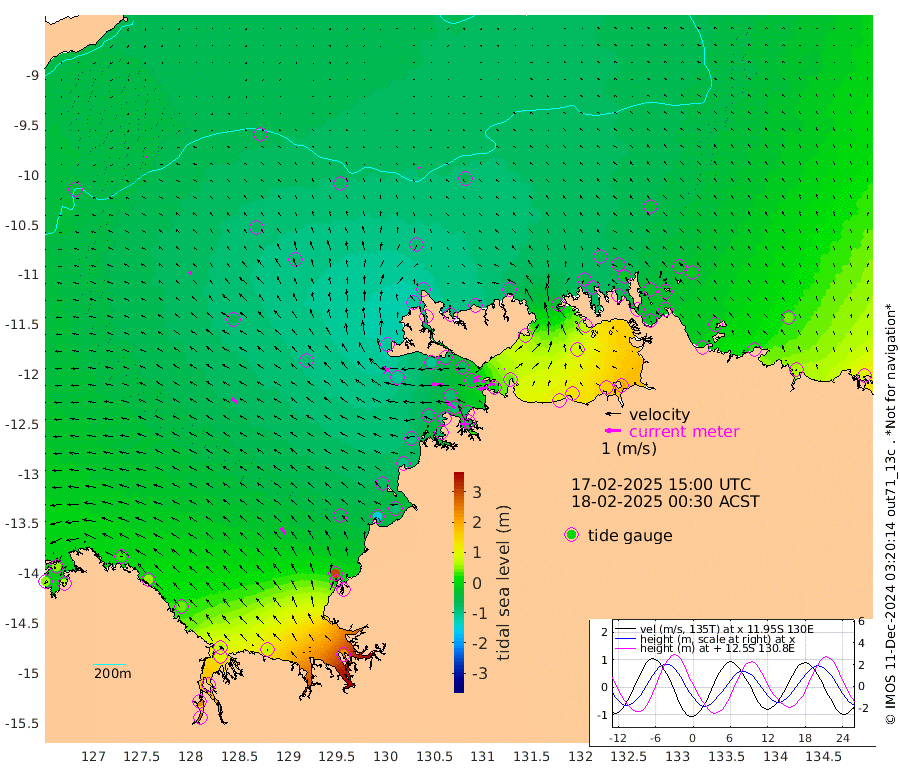 62cm/s -103T +4cm/s rms + 6cm/s 51T. Darwin_C1 52m 32cm/s -86T +4cm/s rms + 7cm/s -161T. Darwin_CW1 22m 37cm/s -110T +4cm/s rms + 8cm/s 61T. Darwin_CW2 34m 8cm/s -85T +3cm/s rms + 9cm/s 98T. Darwin_CW3 22m 18cm/s -102T +5cm/s rms + 7cm/s 88T. Darwin_C3 56m 40cm/s -117T +2cm/s rms + 9cm/s -126T. Darwin_CTbW 22m 9cm/s -39T +9cm/s rms + 2cm/s -110T. NWSLYN 196m 69cm/s -87T +1cm/s rms + 1cm/s -47T. DARBGF 30m 9cm/s -102T +7cm/s rms + 2cm/s -137T. ITFTIS 464m 20cm/s -30T +9cm/s rms + 1cm/s 74T. ITFMHB 146m 46cm/s -32T +4cm/s rms + 1cm/s -134T. ITFJBG 61m 48cm/s -52T +6cm/s rms + 4cm/s 121T. ITFFTB 108m 73cm/s -55T +4cm/s rms + 3cm/s 80T. NRSDAR 19m 48cm Carronade Island 46cm Guy Point 59cm Napier Broome Bay 25cm Lesueur Island 36cm Reveley Island 56cm Rocky Island 91cm Cape Domett 71cm Lacrosse Island 151cm Adolphus Island 235cm Pender Point 276cm Wyndham -63cm The Boxers -78cm Unnamed Shoal -60cm Loxton Shoal 69cm Pelican Island -85cm Calder Shoal -69cm Evans Shoal 221cm Quoin Island -7cm Port Keats 7cm Jones Point 301cm Catfish Island -64cm Cape Scott Offshore -156cm Cape Ford -80cm Anson Bay -83cm Goodrich Bank -78cm Peron Island North -97cm Point Jenny -101cm Native Point -86cm Fish Reef -96cm Tapa Bay -111cm Point Fawcett (Offshore) -80cm Burge Point -106cm Munkunuwa -104cm Beagle A -73cm Parsons Bank -83cm Fenton Patches -63cm Lynedoch Bank -60cm Hancox Shoal Area -79cm Nightcliff -60cm Darwin -81cm Charles Point Patches 15cm Glyde Point 104cm Chambers Bay 134cm Point Stuart 42cm Cape Hotham 88cm Christine Reef 157cm West Alligator Head 198cm East Field Island 75cm Two Hills Bay -84cm Newby Shoal 61cm Camp Point -90cm Medina Inlet South -113cm South Barlow Point -110cm St. Asaph Bay -90cm Cape Van Dieman -90cm Snake Bay -78cm Cache Point -45cm Echo Shoal -63cm Point Jahleel (Off) -23cm Cape Don -54cm Port Essington -61cm Smith Point - West -54cm NW Peacock Island -63cm North Of Jones Shoal -21cm Peacock Island -32cm Point David -57cm D'urville Point -44cm Money Shoal -28cm Copeland Island -31cm Cape Cockburn -31cm One Tree Point -21cm Hogmany Shoal -28cm New Year Island - West -26cm Grant Island -4cm Aurari Bay 25cm Cuthbert Point -8cm North Goulburn Island 37cm Paxie Shoal 58cm Entrance Island 95cm Yabooma Island