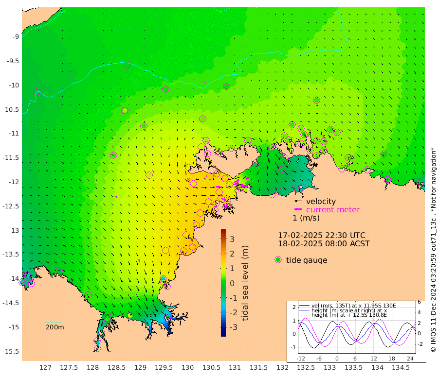 125cm/s 78T +4cm/s rms + 6cm/s 51T. Darwin_C1 52m 85cm/s 87T +4cm/s rms + 7cm/s -161T. Darwin_CW1 22m 78cm/s 74T +4cm/s rms + 8cm/s 61T. Darwin_CW2 34m 44cm/s 56T +3cm/s rms + 9cm/s 98T. Darwin_CW3 22m 93cm/s 87T +5cm/s rms + 7cm/s 88T. Darwin_C3 56m 75cm/s 64T +2cm/s rms + 9cm/s -126T. Darwin_CTbW 22m 7cm/s 144T +9cm/s rms + 2cm/s -110T. NWSLYN 196m 60cm/s 90T +1cm/s rms + 1cm/s -47T. DARBGF 30m 2cm/s 53T +7cm/s rms + 2cm/s -137T. ITFTIS 464m 12cm/s 174T +9cm/s rms + 1cm/s 74T. ITFMHB 146m 38cm/s 162T +4cm/s rms + 1cm/s -134T. ITFJBG 61m 29cm/s 141T +6cm/s rms + 4cm/s 121T. ITFFTB 108m 60cm/s 117T +4cm/s rms + 3cm/s 80T. NRSDAR 19m -122cm Carronade Island -118cm Guy Point -130cm Napier Broome Bay -44cm Lesueur Island 25cm Reveley Island -17cm Rocky Island 24cm Cape Domett 19cm Lacrosse Island -18cm Adolphus Island -112cm Pender Point -163cm Wyndham 26cm The Boxers 51cm Unnamed Shoal -4cm Loxton Shoal 65cm Pelican Island 32cm Calder Shoal 15cm Evans Shoal -37cm Quoin Island 110cm Port Keats 101cm Jones Point -139cm Catfish Island 121cm Cape Scott Offshore 167cm Cape Ford 148cm Anson Bay 38cm Goodrich Bank 125cm Peron Island North 136cm Point Jenny 140cm Native Point 133cm Fish Reef 155cm Tapa Bay 98cm Point Fawcett (Offshore) 142cm Burge Point 161cm Munkunuwa 116cm Beagle A 150cm Parsons Bank 136cm Fenton Patches 20cm Lynedoch Bank 140cm Hancox Shoal Area 150cm Nightcliff 151cm Darwin 152cm Charles Point Patches 58cm Glyde Point -25cm Chambers Bay -54cm Point Stuart 21cm Cape Hotham -24cm Christine Reef -68cm West Alligator Head -110cm East Field Island -15cm Two Hills Bay 61cm Newby Shoal -5cm Camp Point 149cm Medina Inlet South 98cm South Barlow Point 77cm St. Asaph Bay 46cm Cape Van Dieman 51cm Snake Bay 35cm Cache Point -32cm Echo Shoal 37cm Point Jahleel (Off) 36cm Cape Don 41cm Port Essington 45cm Smith Point - West 39cm NW Peacock Island 33cm North Of Jones Shoal 12cm Peacock Island 42cm Point David 46cm D'urville Point 30cm Money Shoal 40cm Copeland Island 41cm Cape Cockburn 36cm One Tree Point 41cm Hogmany Shoal 33cm New Year Island - West 37cm Grant Island 32cm Aurari Bay 22cm Cuthbert Point 34cm North Goulburn Island 20cm Paxie Shoal 13cm Entrance Island -2cm Yabooma Island