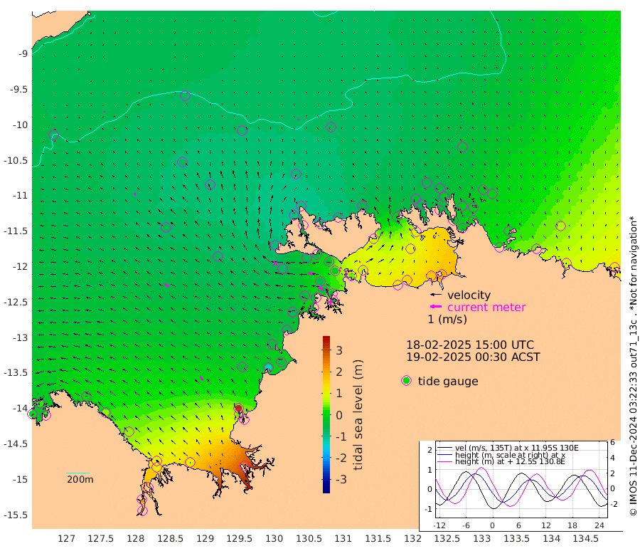 18cm/s -105T +4cm/s rms + 6cm/s 51T. Darwin_C1 52m 2cm/s -30T +4cm/s rms + 7cm/s -161T. Darwin_CW1 22m 10cm/s -103T +4cm/s rms + 8cm/s 61T. Darwin_CW2 34m 13cm/s 35T +3cm/s rms + 9cm/s 98T. Darwin_CW3 22m 15cm/s 100T +5cm/s rms + 7cm/s 88T. Darwin_C3 56m 13cm/s -117T +2cm/s rms + 9cm/s -126T. Darwin_CTbW 22m 10cm/s -35T +9cm/s rms + 2cm/s -110T. NWSLYN 196m 59cm/s -85T +1cm/s rms + 1cm/s -47T. DARBGF 30m 9cm/s -101T +7cm/s rms + 2cm/s -137T. ITFTIS 464m 19cm/s -33T +9cm/s rms + 1cm/s 74T. ITFMHB 146m 39cm/s -35T +4cm/s rms + 1cm/s -134T. ITFJBG 61m 45cm/s -54T +6cm/s rms + 4cm/s 121T. ITFFTB 108m 69cm/s -54T +4cm/s rms + 3cm/s 80T. NRSDAR 19m 23cm Carronade Island 20cm Guy Point 33cm Napier Broome Bay 21cm Lesueur Island 48cm Reveley Island 54cm Rocky Island 111cm Cape Domett 91cm Lacrosse Island 168cm Adolphus Island 227cm Pender Point 263cm Wyndham -59cm The Boxers -66cm Unnamed Shoal -68cm Loxton Shoal 97cm Pelican Island -82cm Calder Shoal -71cm Evans Shoal 245cm Quoin Island 29cm Port Keats 38cm Jones Point 322cm Catfish Island -30cm Cape Scott Offshore -145cm Cape Ford -37cm Anson Bay -80cm Goodrich Bank -43cm Peron Island North -65cm Point Jenny -69cm Native Point -51cm Fish Reef -59cm Tapa Bay -90cm Point Fawcett (Offshore) -43cm Burge Point -70cm Munkunuwa -76cm Beagle A -33cm Parsons Bank -46cm Fenton Patches -61cm Lynedoch Bank -21cm Hancox Shoal Area -34cm Nightcliff -17cm Darwin -42cm Charles Point Patches 40cm Glyde Point 117cm Chambers Bay 142cm Point Stuart 63cm Cape Hotham 99cm Christine Reef 164cm West Alligator Head 199cm East Field Island 89cm Two Hills Bay -66cm Newby Shoal 74cm Camp Point -52cm Medina Inlet South -93cm South Barlow Point -97cm St. Asaph Bay -86cm Cape Van Dieman -82cm Snake Bay -74cm Cache Point -57cm Echo Shoal -55cm Point Jahleel (Off) -9cm Cape Don -44cm Port Essington -49cm Smith Point - West -43cm NW Peacock Island -52cm North Of Jones Shoal -16cm Peacock Island -17cm Point David -44cm D'urville Point -33cm Money Shoal -11cm Copeland Island -9cm Cape Cockburn -15cm One Tree Point -7cm Hogmany Shoal -12cm New Year Island - West -10cm Grant Island 17cm Aurari Bay 45cm Cuthbert Point 12cm North Goulburn Island 58cm Paxie Shoal 78cm Entrance Island 119cm Yabooma Island