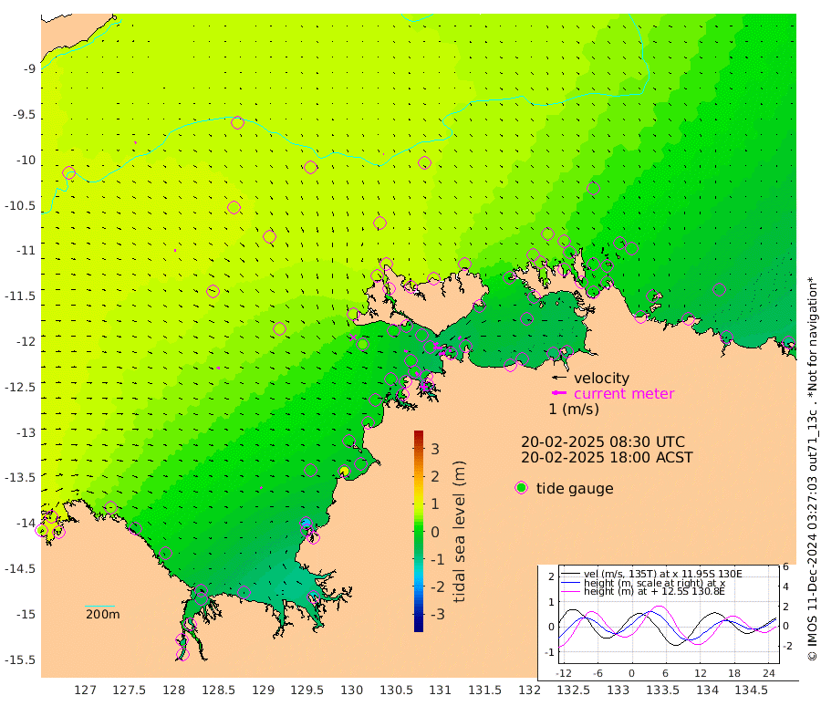 45cm/s -101T +4cm/s rms + 6cm/s 51T. Darwin_C1 52m 16cm/s -92T +4cm/s rms + 7cm/s -161T. Darwin_CW1 22m 21cm/s -107T +4cm/s rms + 8cm/s 61T. Darwin_CW2 34m 25cm/s -134T +3cm/s rms + 9cm/s 98T. Darwin_CW3 22m 37cm/s -91T +5cm/s rms + 7cm/s 88T. Darwin_C3 56m 32cm/s -115T +2cm/s rms + 9cm/s -126T. Darwin_CTbW 22m 5cm/s 119T +9cm/s rms + 2cm/s -110T. NWSLYN 196m 20cm/s 98T +1cm/s rms + 1cm/s -47T. DARBGF 30m 9cm/s 53T +7cm/s rms + 2cm/s -137T. ITFTIS 464m 10cm/s 96T +9cm/s rms + 1cm/s 74T. ITFMHB 146m 14cm/s 117T +4cm/s rms + 1cm/s -134T. ITFJBG 61m 22cm/s 105T +6cm/s rms + 4cm/s 121T. ITFFTB 108m 23cm/s 136T +4cm/s rms + 3cm/s 80T. NRSDAR 19m 68cm Carronade Island 66cm Guy Point 67cm Napier Broome Bay 47cm Lesueur Island -16cm Reveley Island -15cm Rocky Island -56cm Cape Domett -38cm Lacrosse Island -86cm Adolphus Island -86cm Pender Point -93cm Wyndham 70cm The Boxers 67cm Unnamed Shoal 83cm Loxton Shoal -70cm Pelican Island 83cm Calder Shoal 73cm Evans Shoal -138cm Quoin Island -33cm Port Keats -32cm Jones Point -160cm Catfish Island 0cm Cape Scott Offshore 107cm Cape Ford -6cm Anson Bay 71cm Goodrich Bank 13cm Peron Island North 20cm Point Jenny 22cm Native Point 18cm Fish Reef 9cm Tapa Bay 59cm Point Fawcett (Offshore) 10cm Burge Point 12cm Munkunuwa 43cm Beagle A -11cm Parsons Bank 12cm Fenton Patches 63cm Lynedoch Bank -19cm Hancox Shoal Area -13cm Nightcliff -15cm Darwin 5cm Charles Point Patches -26cm Glyde Point -59cm Chambers Bay -63cm Point Stuart -31cm Cape Hotham -51cm Christine Reef -75cm West Alligator Head -81cm East Field Island -40cm Two Hills Bay 65cm Newby Shoal -29cm Camp Point 10cm Medina Inlet South 57cm South Barlow Point 69cm St. Asaph Bay 71cm Cape Van Dieman 68cm Snake Bay 68cm Cache Point 86cm Echo Shoal 50cm Point Jahleel (Off) 13cm Cape Don 38cm Port Essington 36cm Smith Point - West 34cm NW Peacock Island 46cm North Of Jones Shoal 14cm Peacock Island 10cm Point David 30cm D'urville Point 32cm Money Shoal 5cm Copeland Island 10cm Cape Cockburn 13cm One Tree Point 7cm Hogmany Shoal 14cm New Year Island - West 9cm Grant Island -15cm Aurari Bay -35cm Cuthbert Point -10cm North Goulburn Island -42cm Paxie Shoal -59cm Entrance Island -91cm Yabooma Island