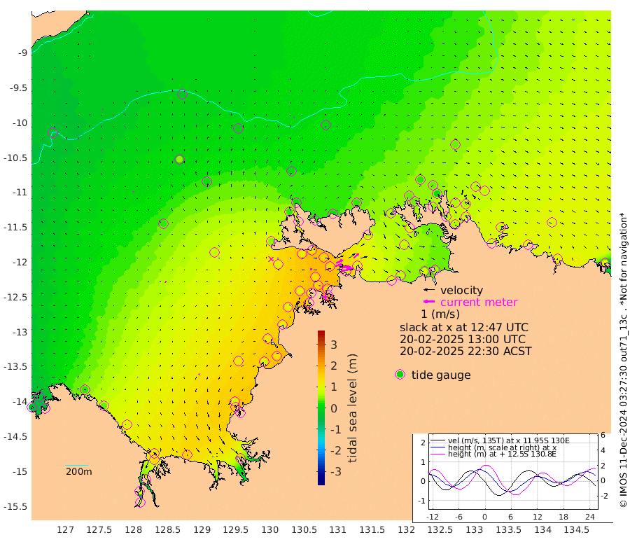 109cm/s 78T +4cm/s rms + 6cm/s 51T. Darwin_C1 52m 54cm/s 89T +4cm/s rms + 7cm/s -161T. Darwin_CW1 22m 62cm/s 74T +4cm/s rms + 8cm/s 61T. Darwin_CW2 34m 60cm/s 45T +3cm/s rms + 9cm/s 98T. Darwin_CW3 22m 96cm/s 89T +5cm/s rms + 7cm/s 88T. Darwin_C3 56m 63cm/s 64T +2cm/s rms + 9cm/s -126T. Darwin_CTbW 22m 4cm/s 14T +9cm/s rms + 2cm/s -110T. NWSLYN 196m 15cm/s 73T +1cm/s rms + 1cm/s -47T. DARBGF 30m 5cm/s -48T +7cm/s rms + 2cm/s -137T. ITFTIS 464m 8cm/s -31T +9cm/s rms + 1cm/s 74T. ITFMHB 146m 8cm/s -116T +4cm/s rms + 1cm/s -134T. ITFJBG 61m 10cm/s -72T +6cm/s rms + 4cm/s 121T. ITFFTB 108m 12cm/s 84T +4cm/s rms + 3cm/s 80T. NRSDAR 19m -40cm Carronade Island -41cm Guy Point -36cm Napier Broome Bay 33cm Lesueur Island 93cm Reveley Island 43cm Rocky Island 139cm Cape Domett 121cm Lacrosse Island 146cm Adolphus Island 97cm Pender Point 84cm Wyndham 23cm The Boxers 48cm Unnamed Shoal -11cm Loxton Shoal 148cm Pelican Island 17cm Calder Shoal -4cm Evans Shoal 167cm Quoin Island 153cm Port Keats 140cm Jones Point 87cm Catfish Island 113cm Cape Scott Offshore 82cm Cape Ford 131cm Anson Bay 12cm Goodrich Bank 116cm Peron Island North 107cm Point Jenny 108cm Native Point 112cm Fish Reef 126cm Tapa Bay 55cm Point Fawcett (Offshore) 137cm Burge Point 119cm Munkunuwa 90cm Beagle A 146cm Parsons Bank 128cm Fenton Patches 10cm Lynedoch Bank 141cm Hancox Shoal Area 149cm Nightcliff 158cm Darwin 138cm Charles Point Patches 111cm Glyde Point 84cm Chambers Bay 76cm Point Stuart 95cm Cape Hotham 79cm Christine Reef 79cm West Alligator Head 66cm East Field Island 79cm Two Hills Bay 70cm Newby Shoal 78cm Camp Point 128cm Medina Inlet South 59cm South Barlow Point 33cm St. Asaph Bay 15cm Cape Van Dieman 29cm Snake Bay 16cm Cache Point -33cm Echo Shoal 29cm Point Jahleel (Off) 59cm Cape Don 39cm Port Essington 40cm Smith Point - West 41cm NW Peacock Island 29cm North Of Jones Shoal 12cm Peacock Island 63cm Point David 46cm D'urville Point 39cm Money Shoal 62cm Copeland Island 82cm Cape Cockburn 60cm One Tree Point 71cm Hogmany Shoal 62cm New Year Island - West 67cm Grant Island 75cm Aurari Bay 84cm Cuthbert Point 77cm North Goulburn Island 89cm Paxie Shoal 101cm Entrance Island 109cm Yabooma Island